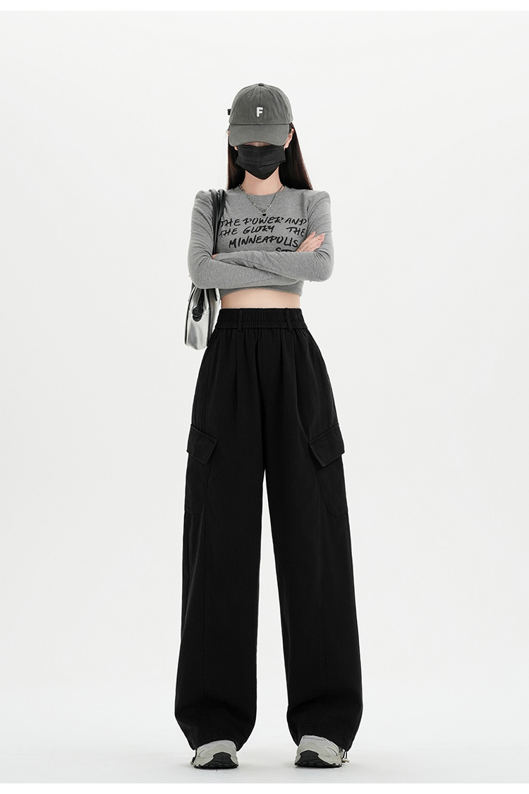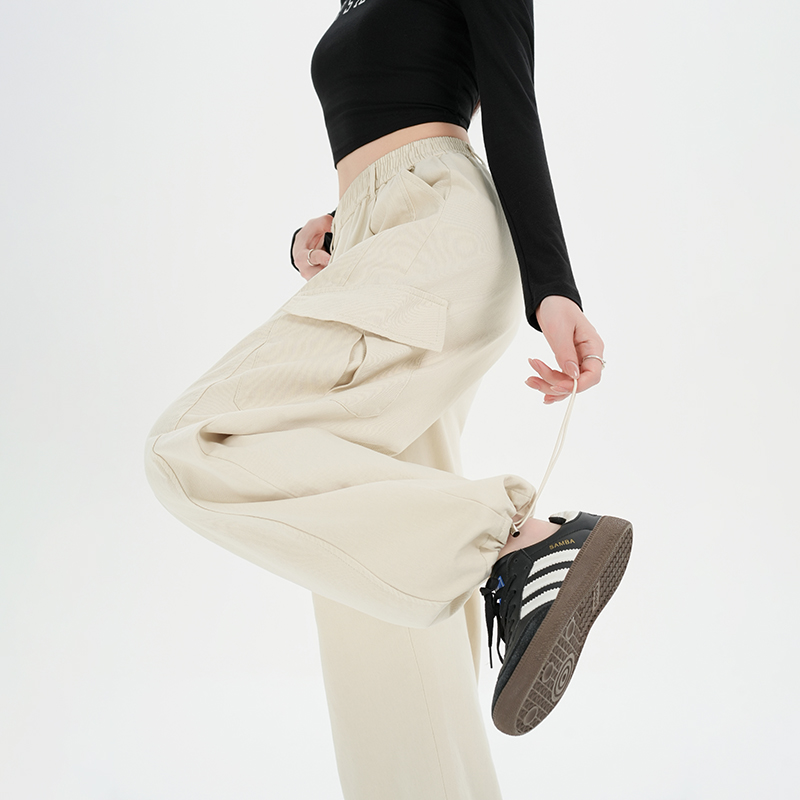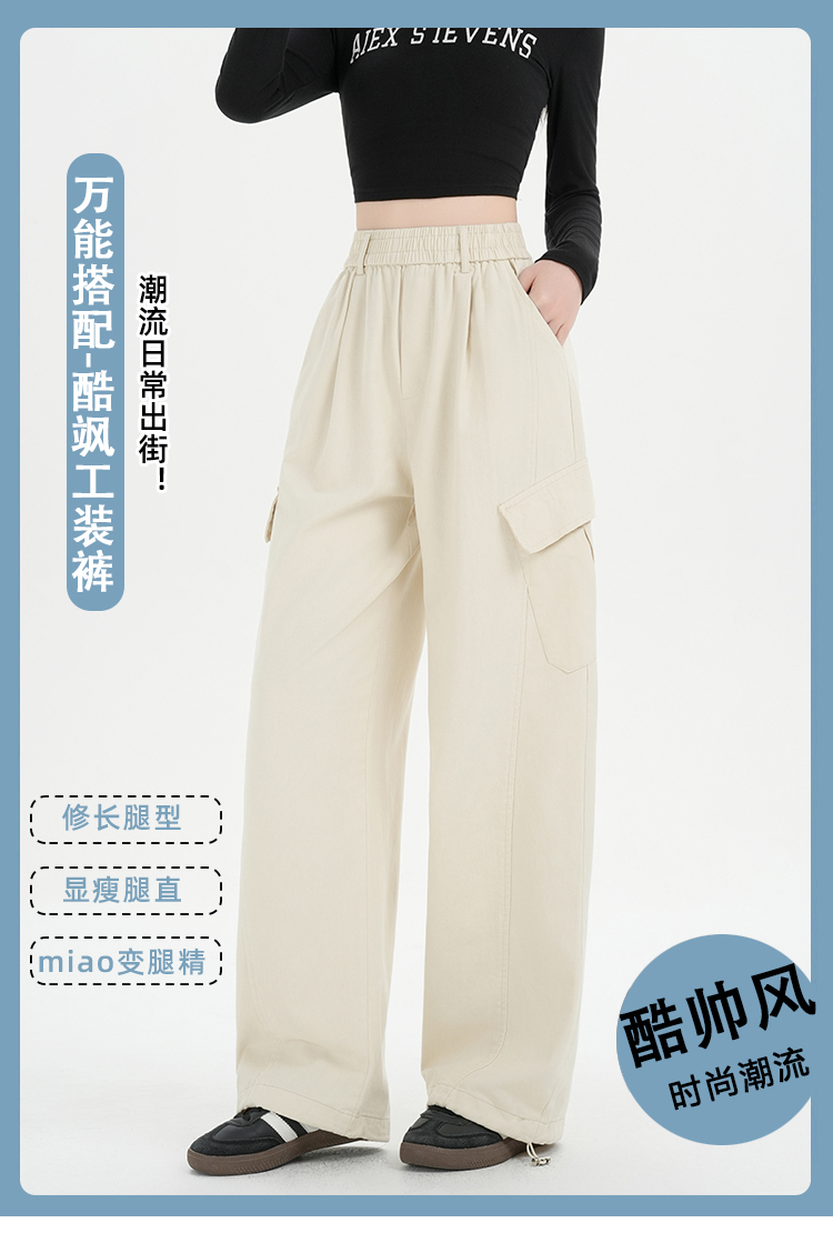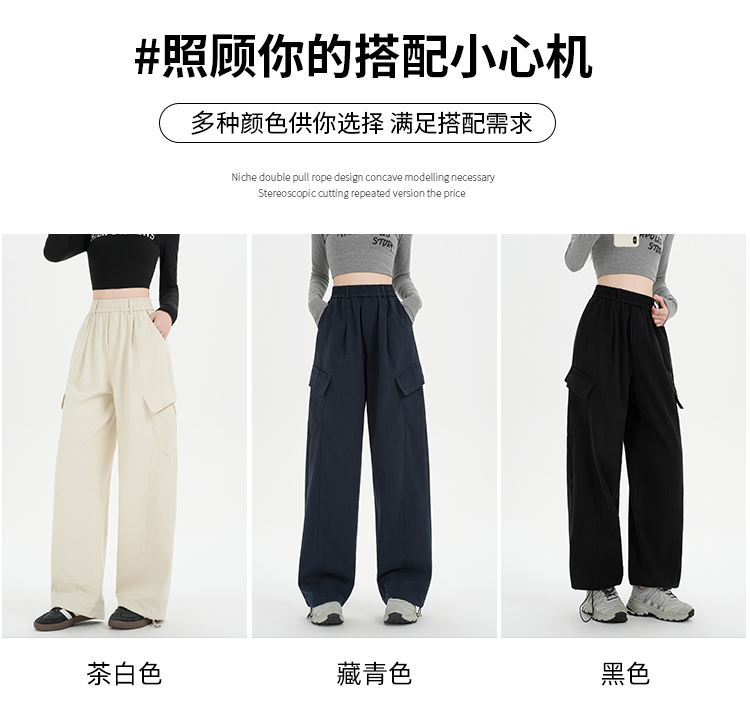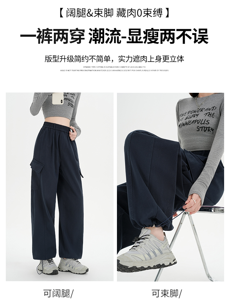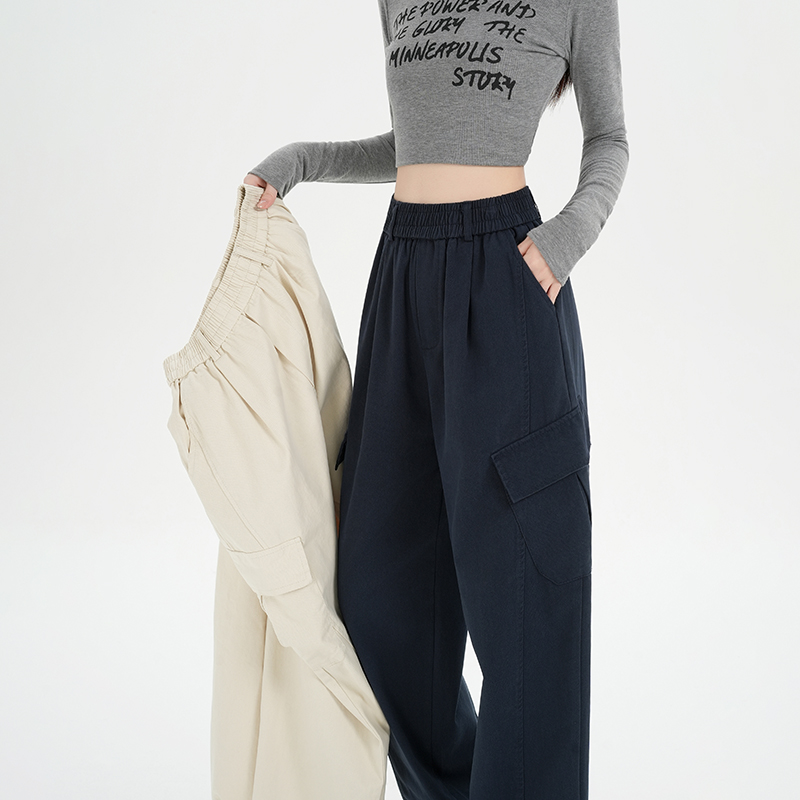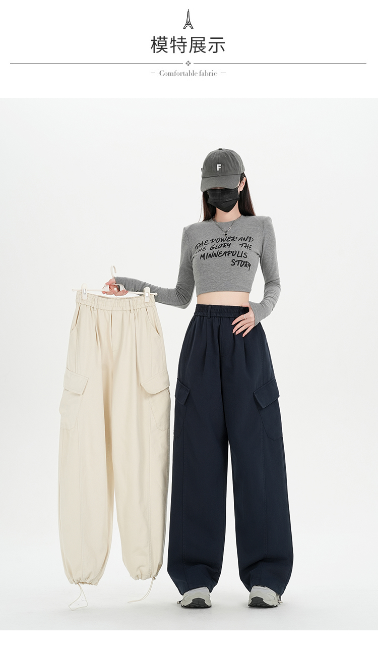 RY501# 实拍水洗棉工装裤女2025春夏百搭时尚高腰显瘦休闲直筒束脚长裤