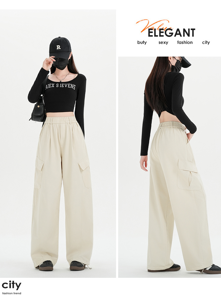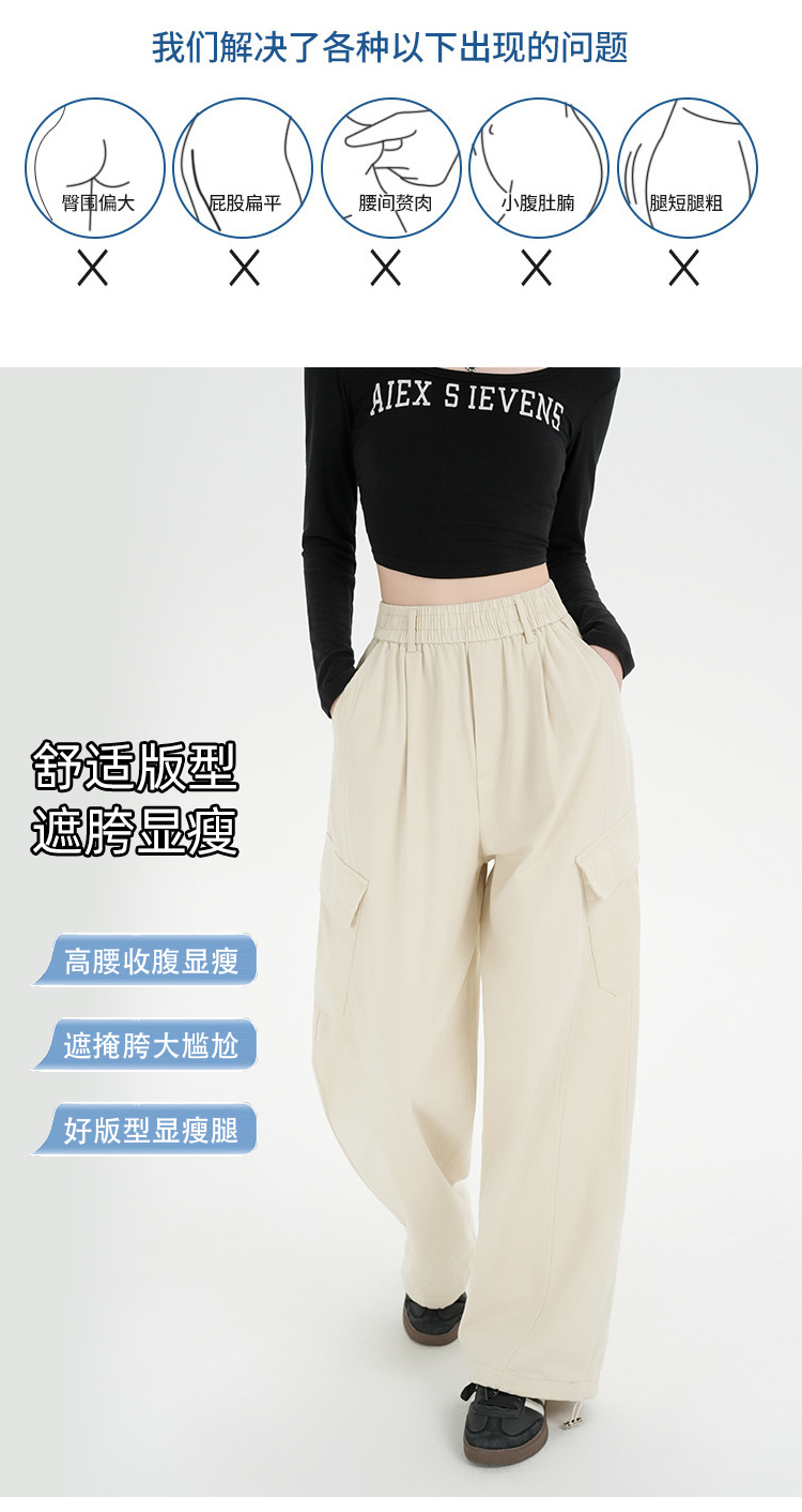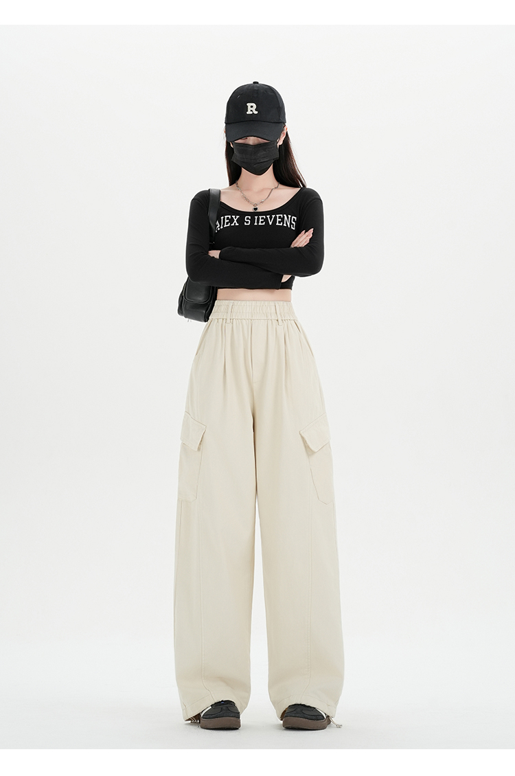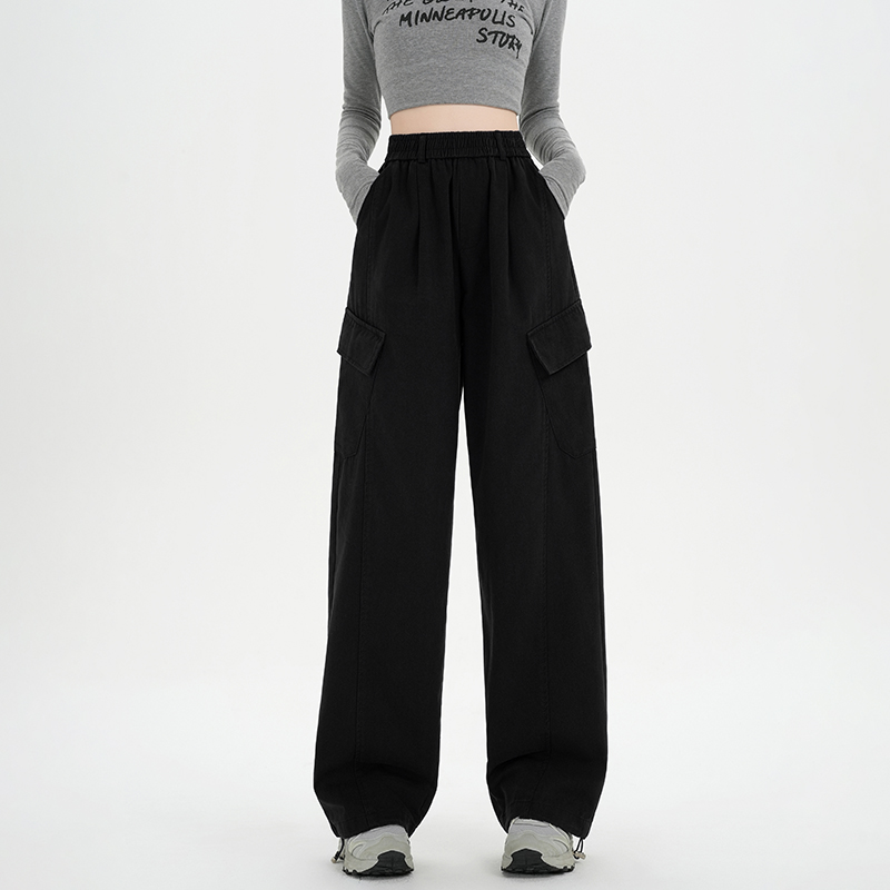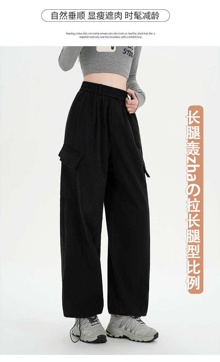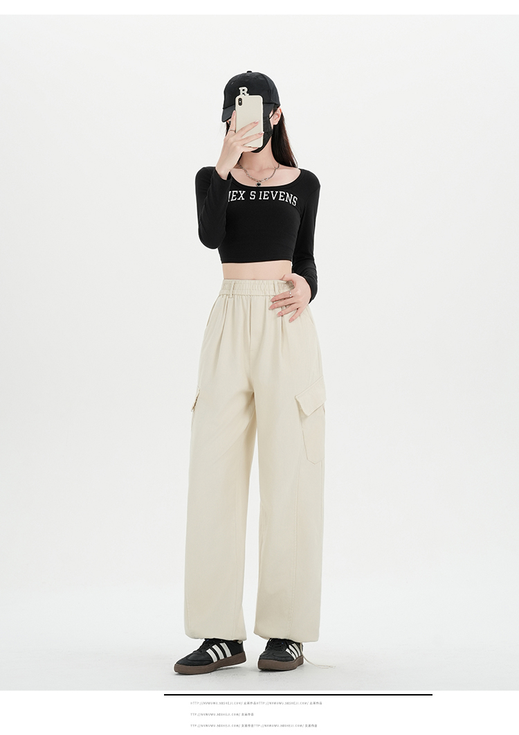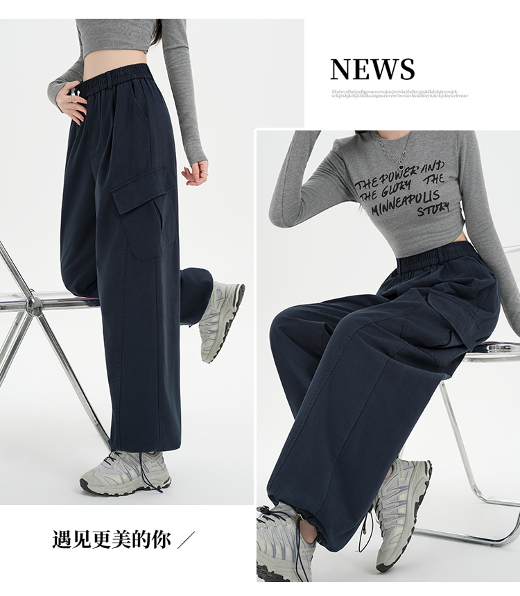 RY501# 实拍水洗棉工装裤女2025春夏百搭时尚高腰显瘦休闲直筒束脚长裤