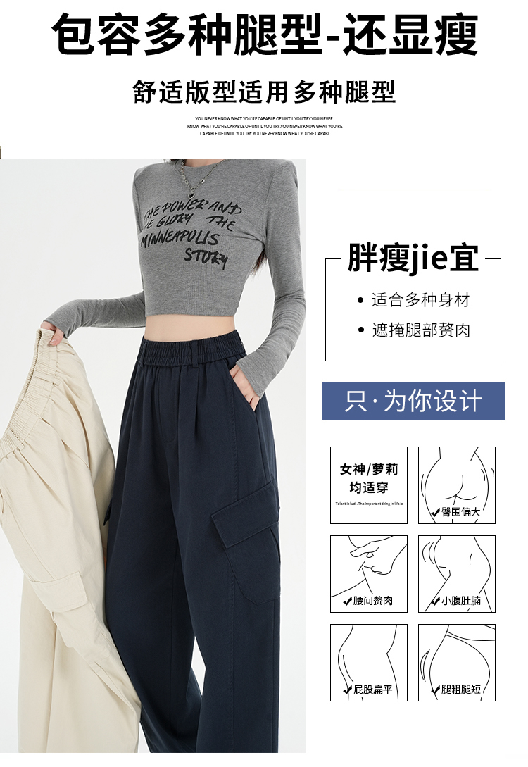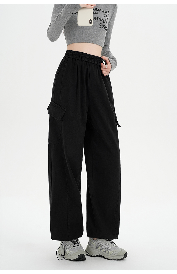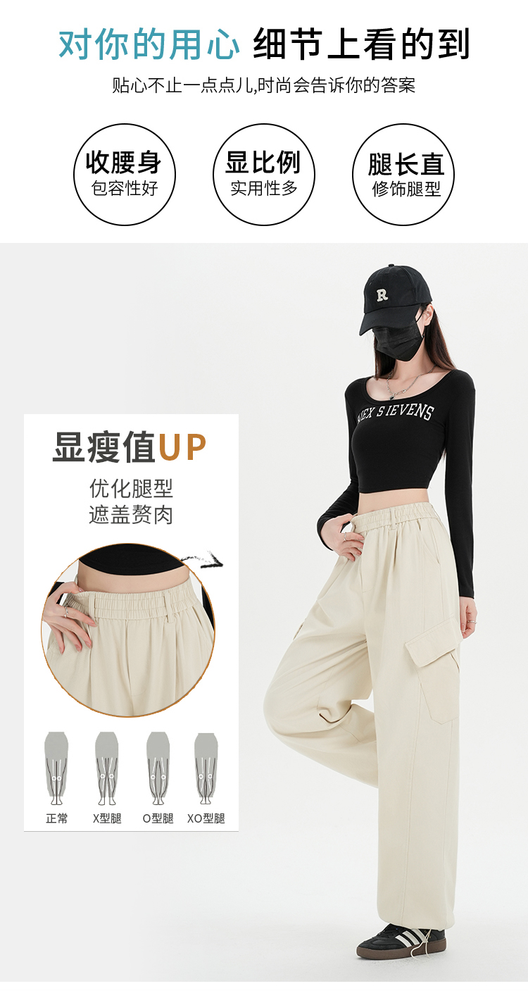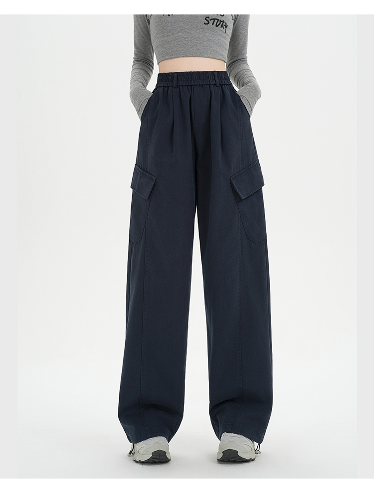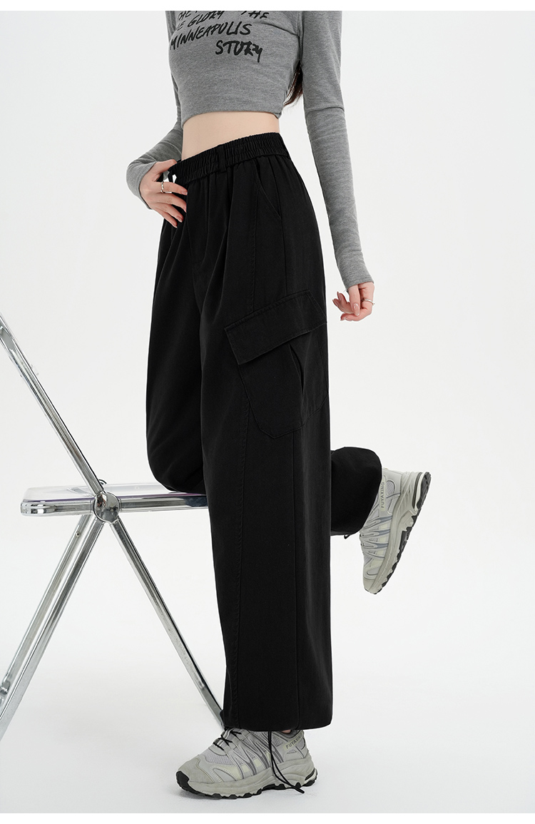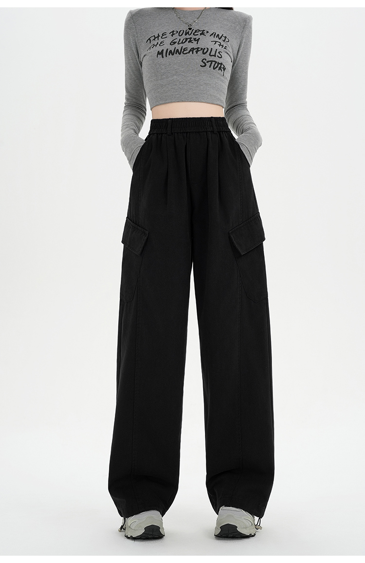 RY501# 实拍水洗棉工装裤女2025春夏百搭时尚高腰显瘦休闲直筒束脚长裤