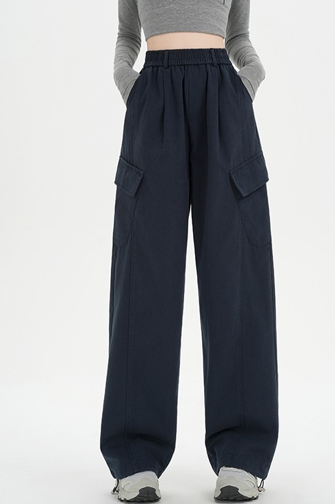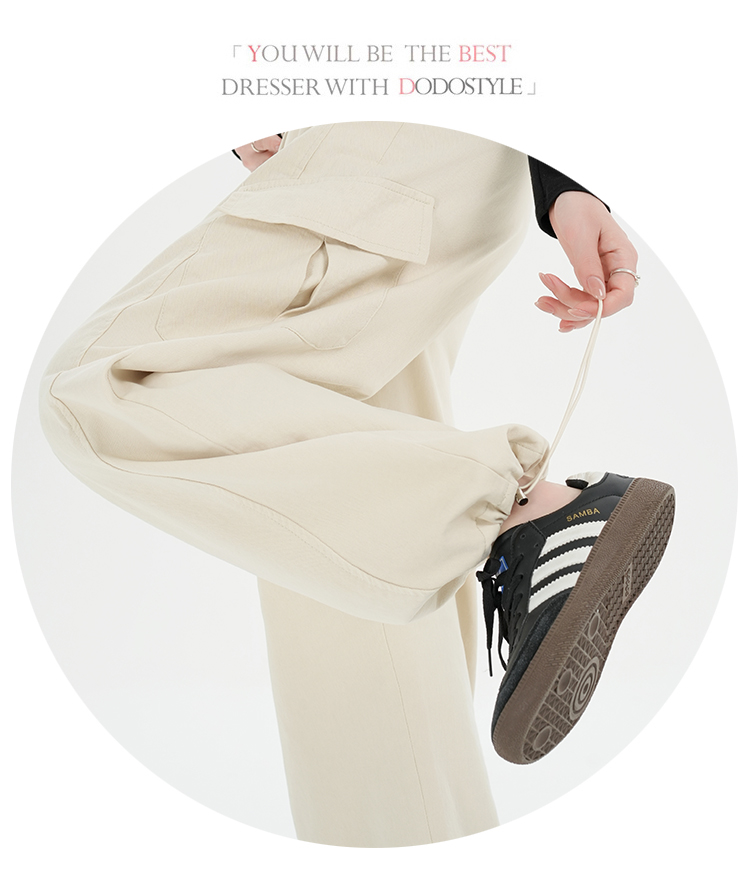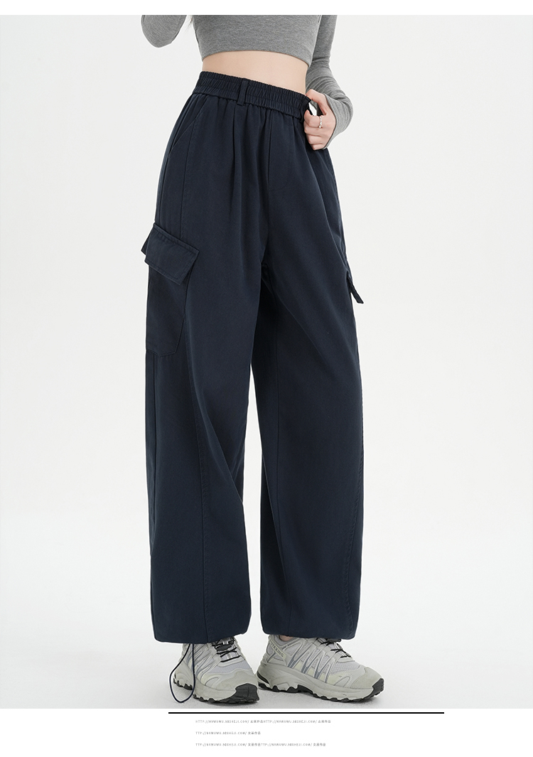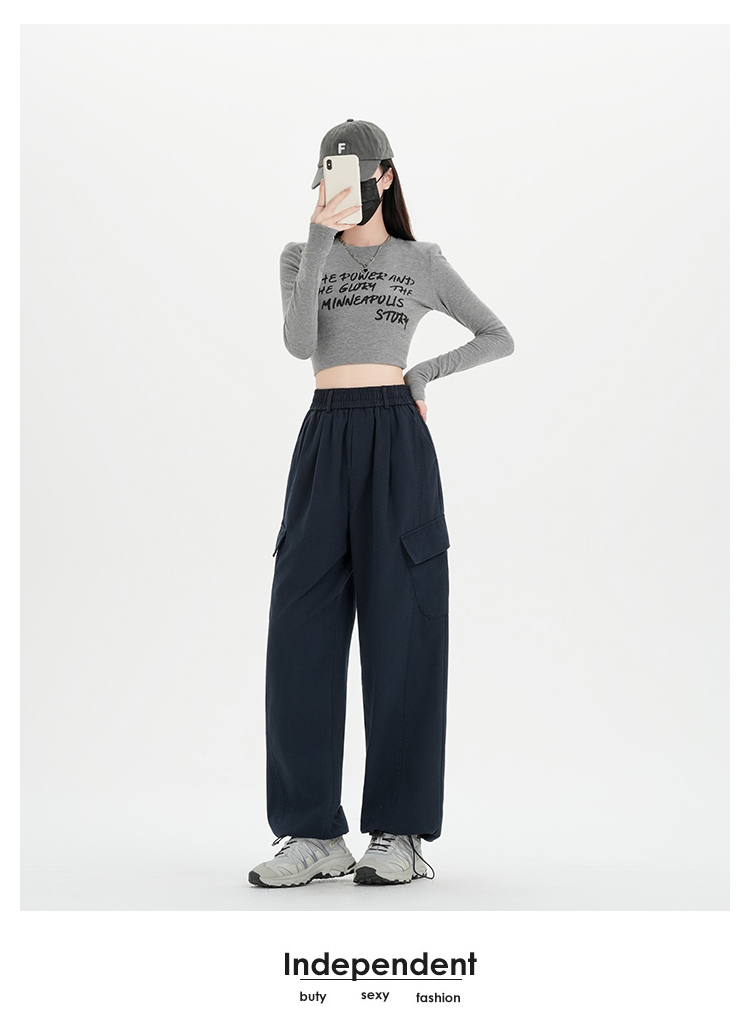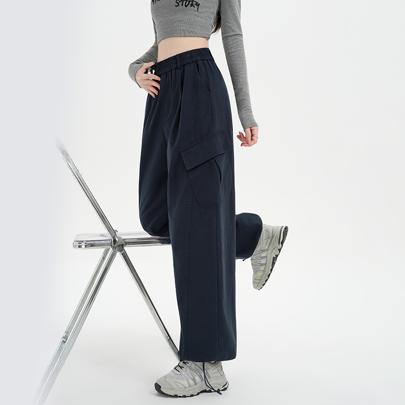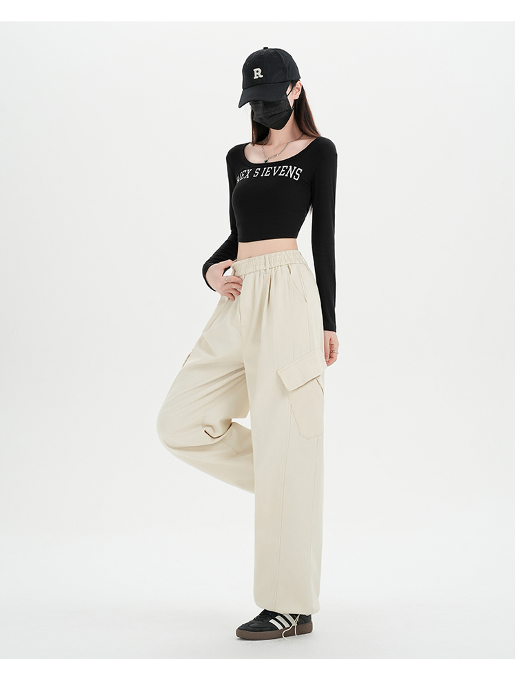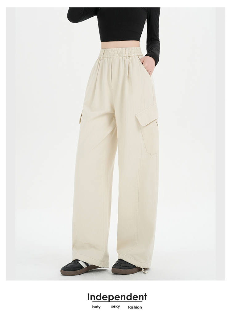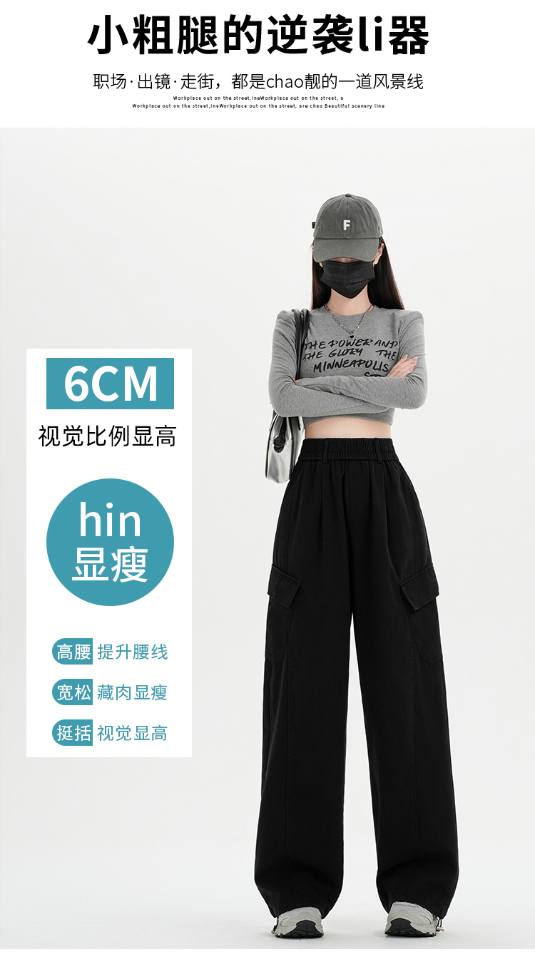 RY501# 实拍水洗棉工装裤女2025春夏百搭时尚高腰显瘦休闲直筒束脚长裤