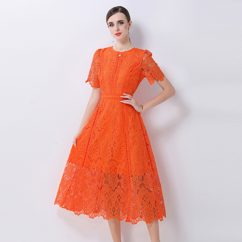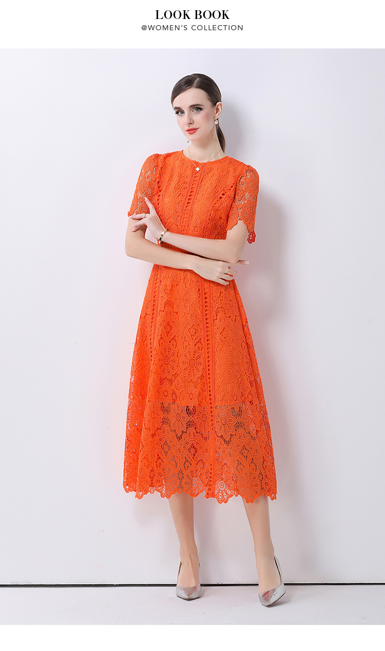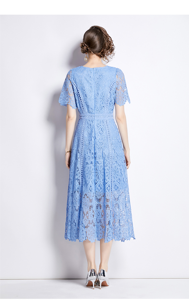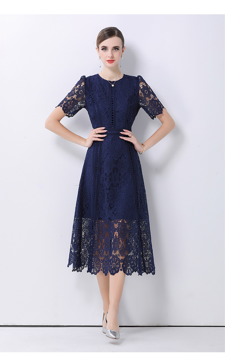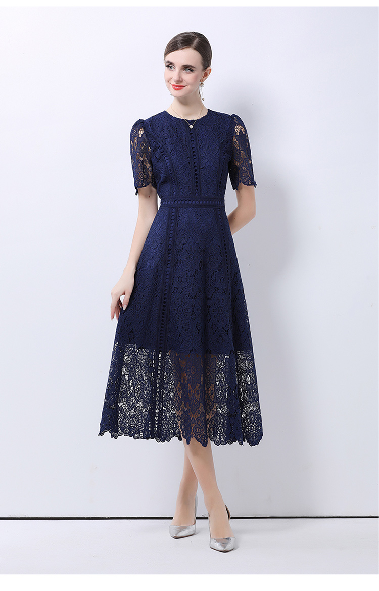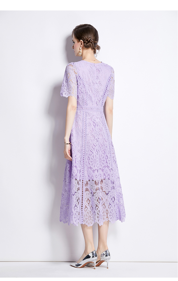 RY531# 小众复古高级感圆领荷叶袖蕾丝连衣裙女夏季新款显瘦气质优雅长裙