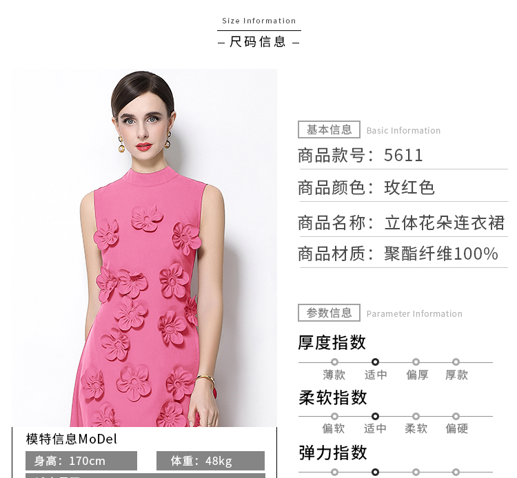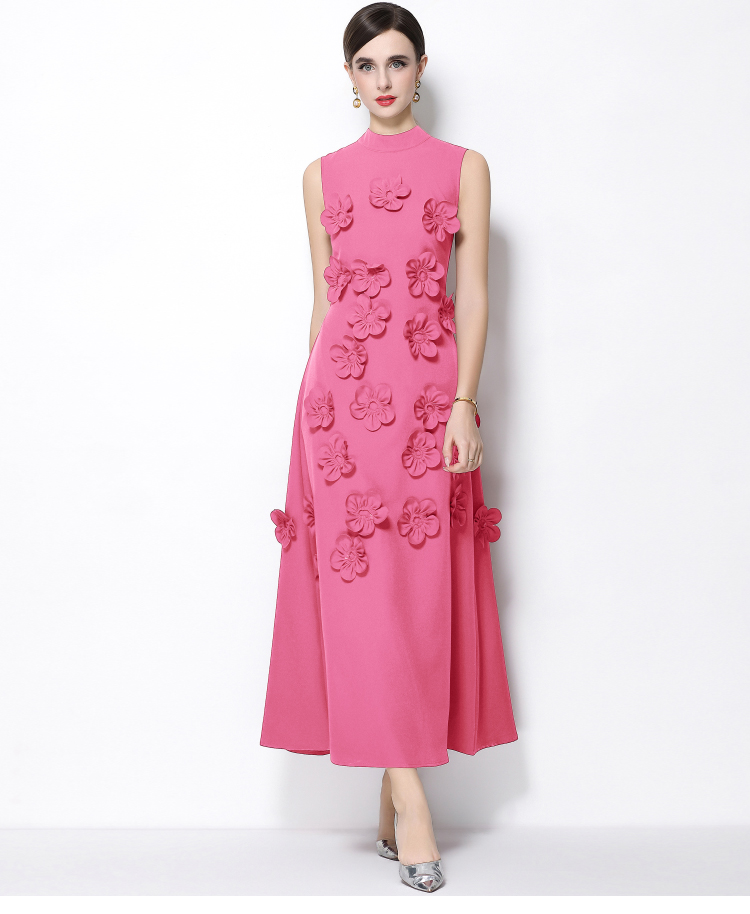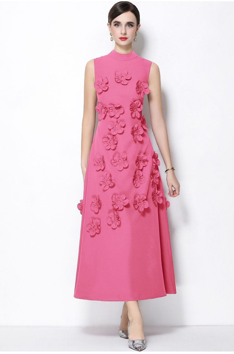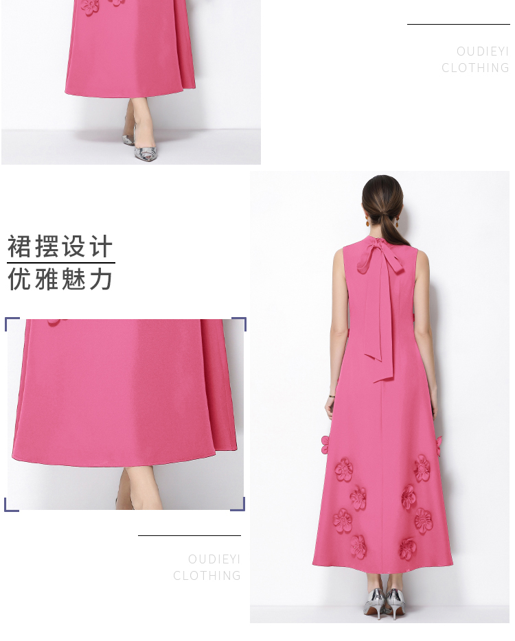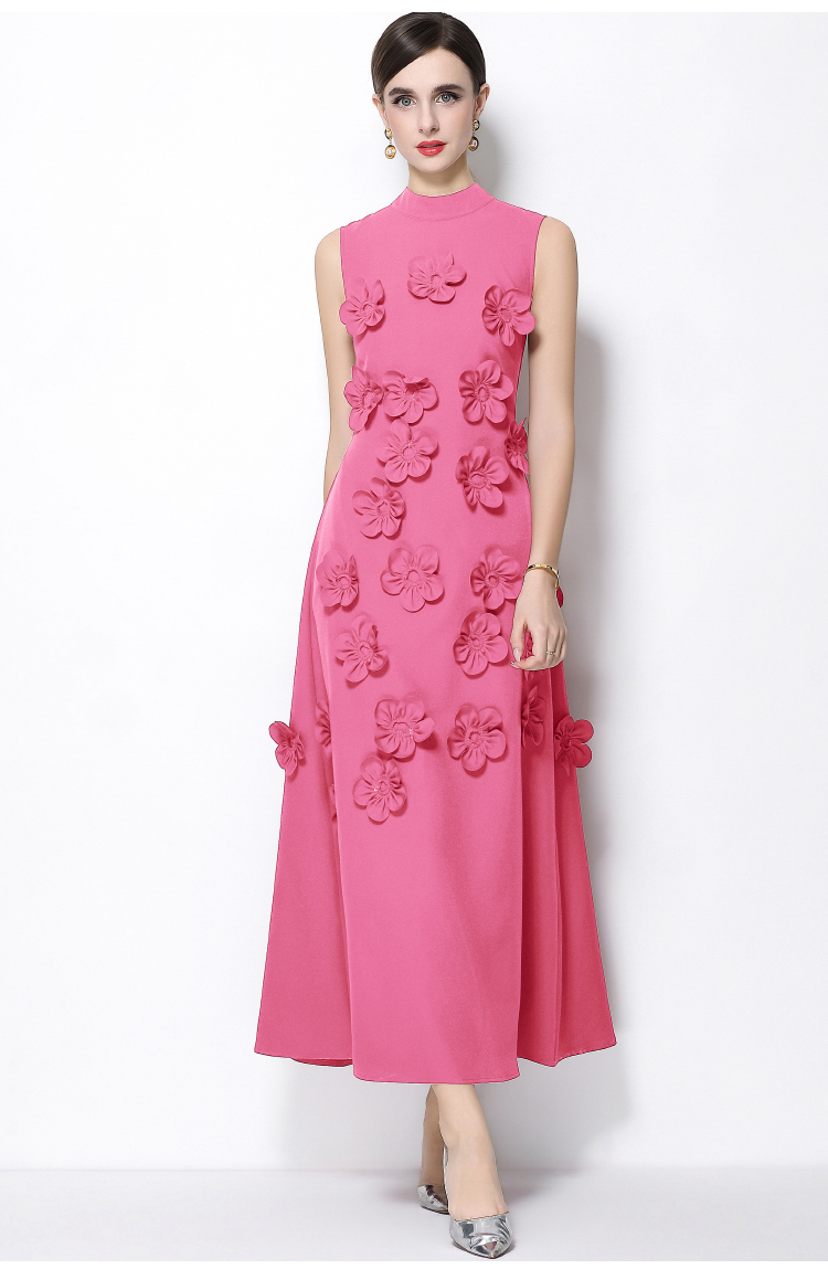 RY547# 实拍气质优雅重工立体花朵立领圆领无袖收腰显瘦A字连衣裙