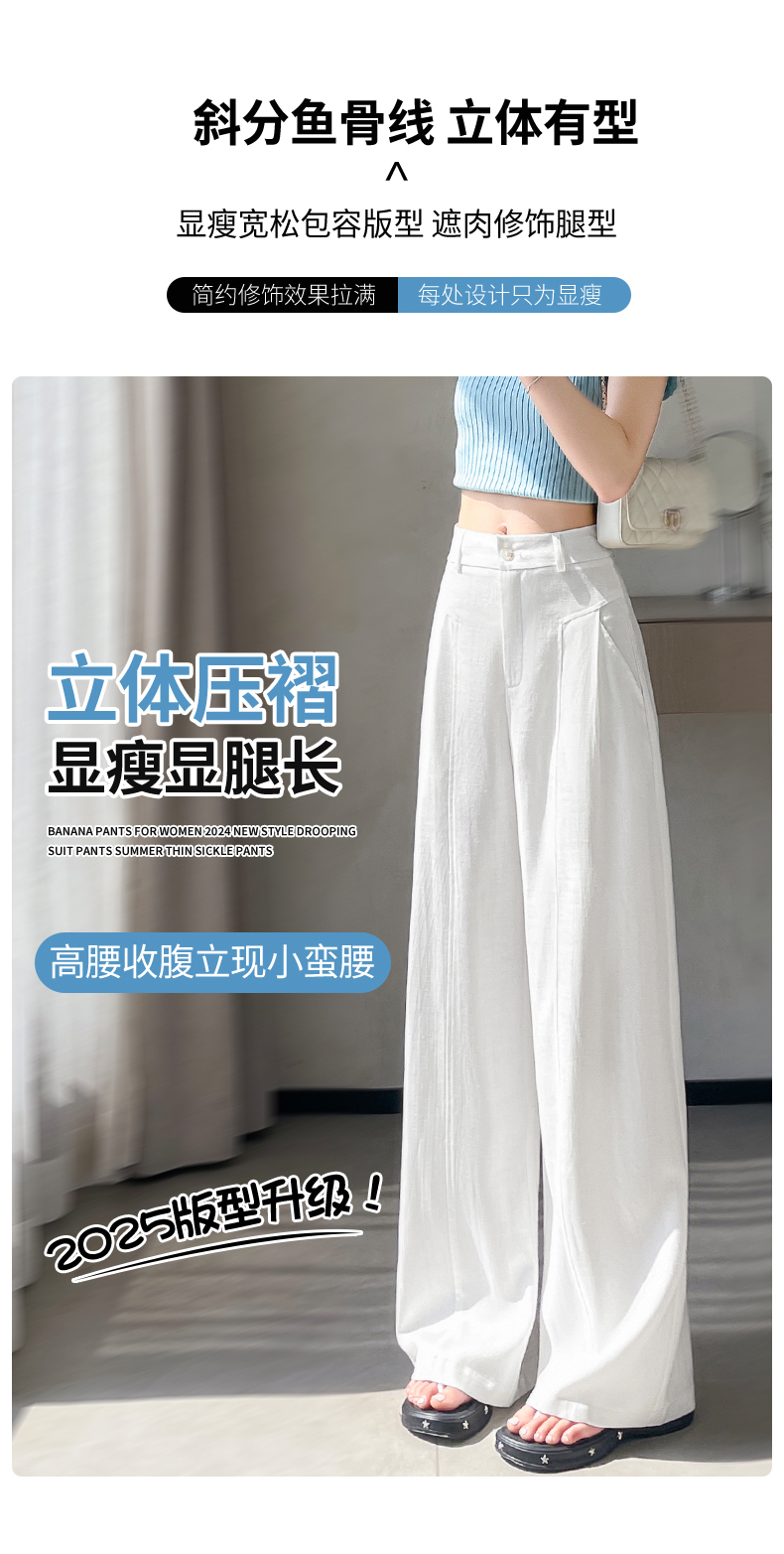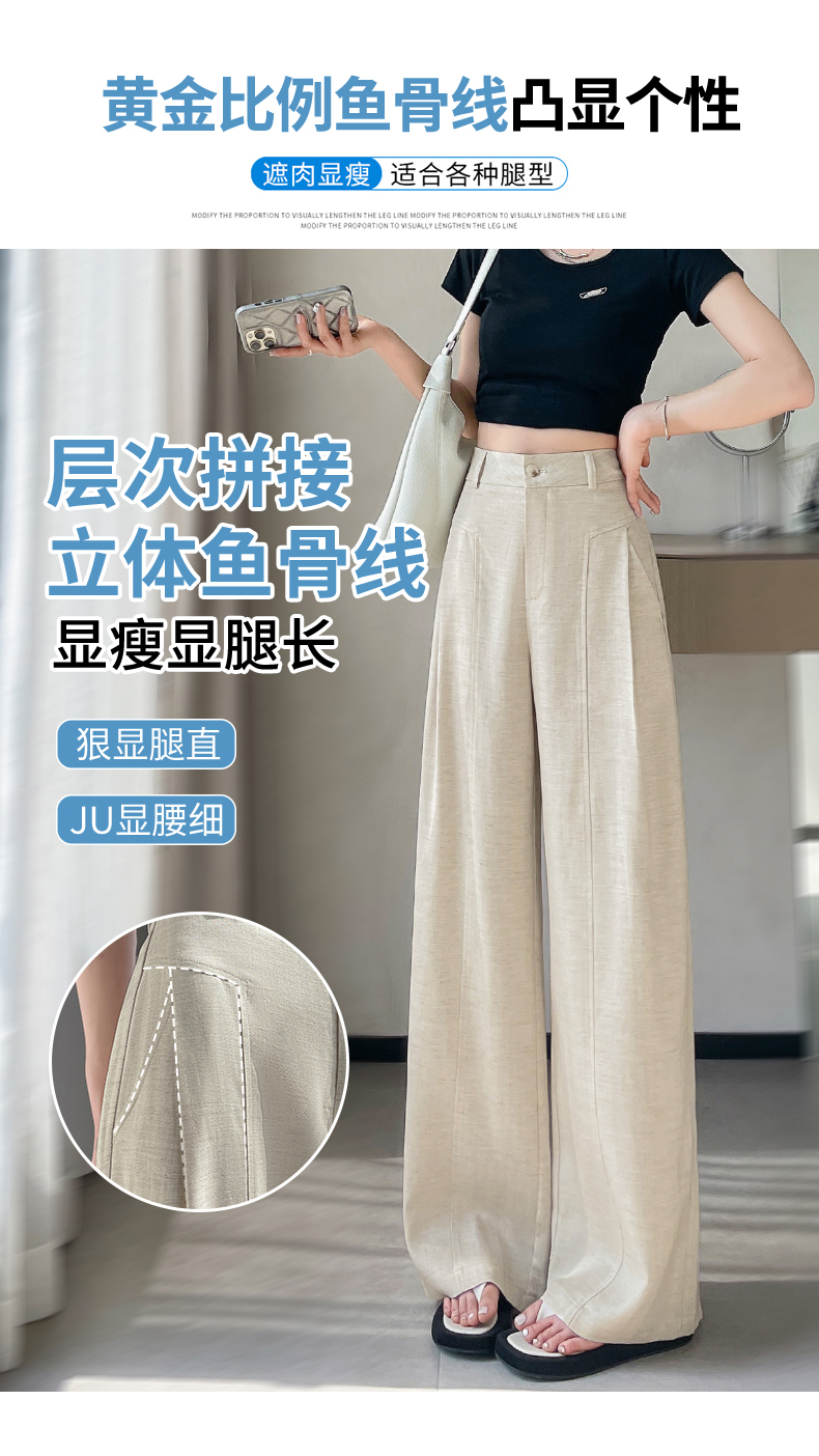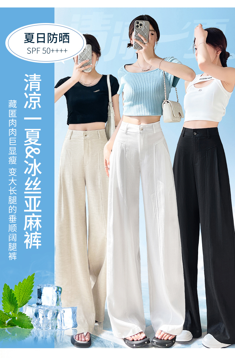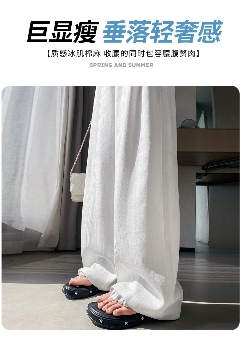 RY588# 亚麻阔腿裤女春夏新款宽松高腰显瘦休闲直筒长裤轻奢垂感棉麻裤子