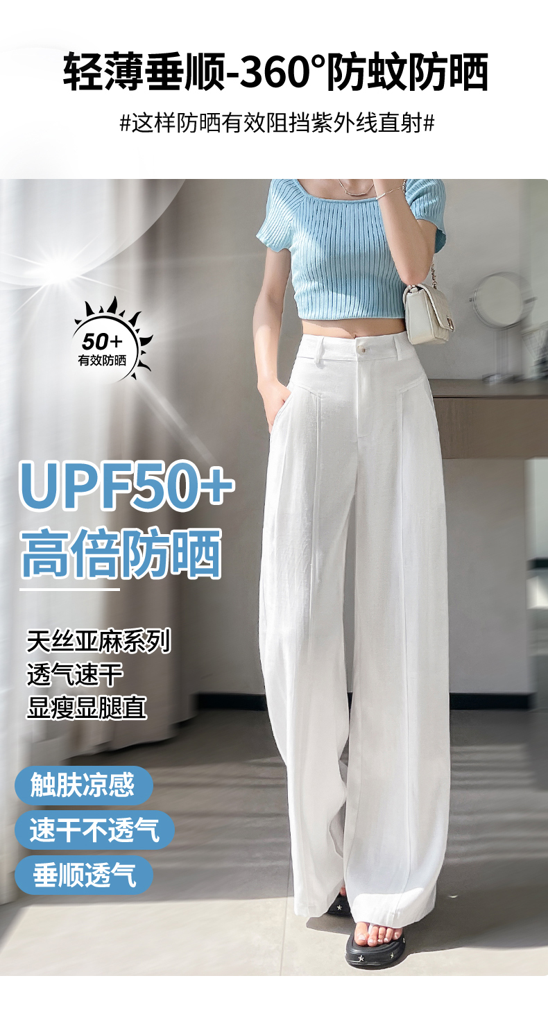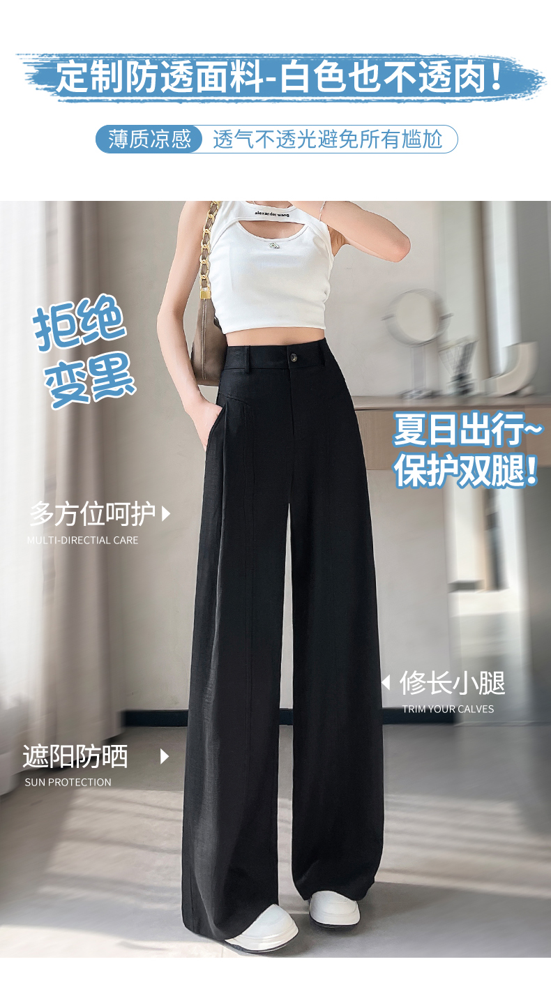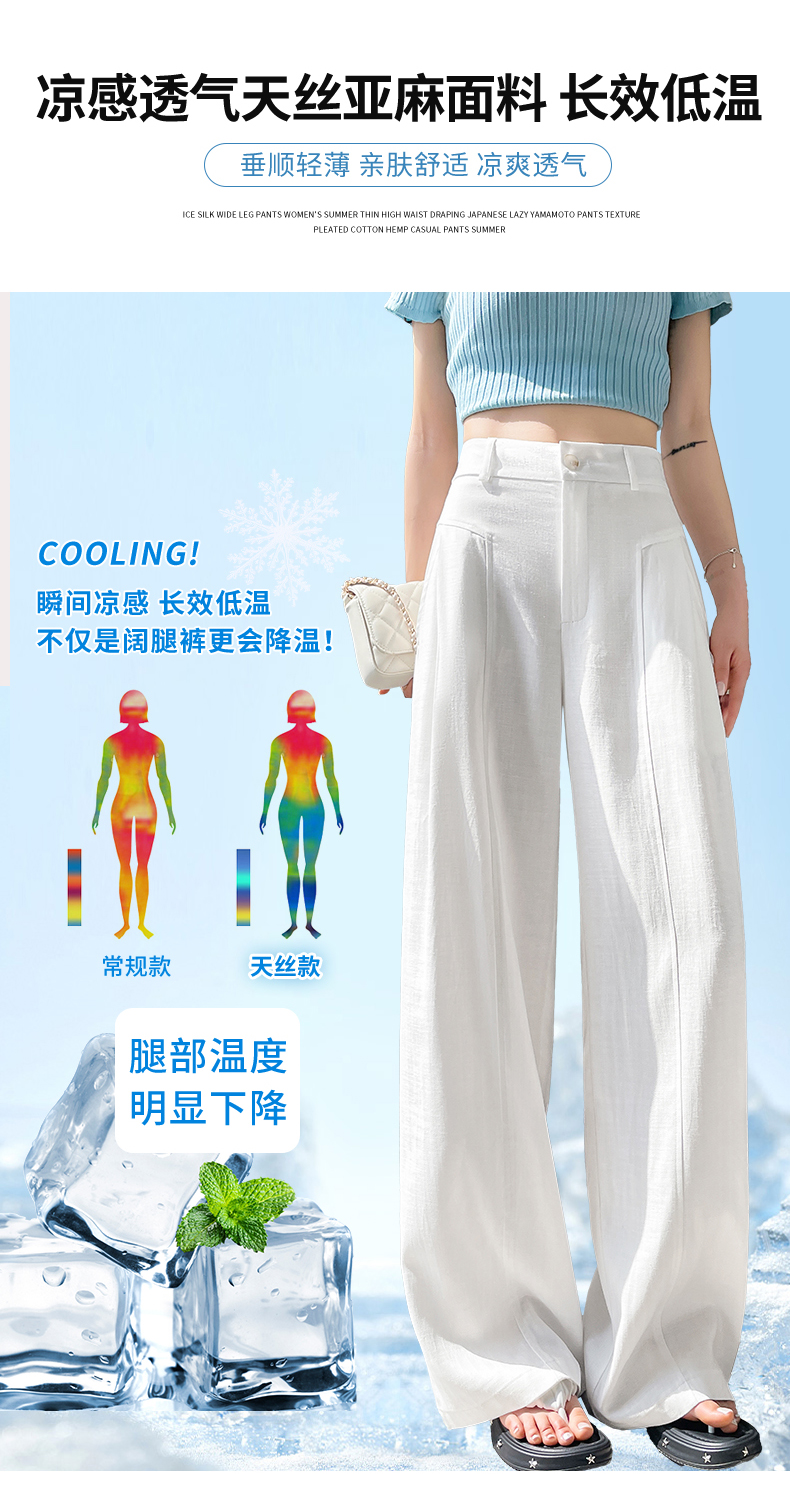 RY588# 亚麻阔腿裤女春夏新款宽松高腰显瘦休闲直筒长裤轻奢垂感棉麻裤子