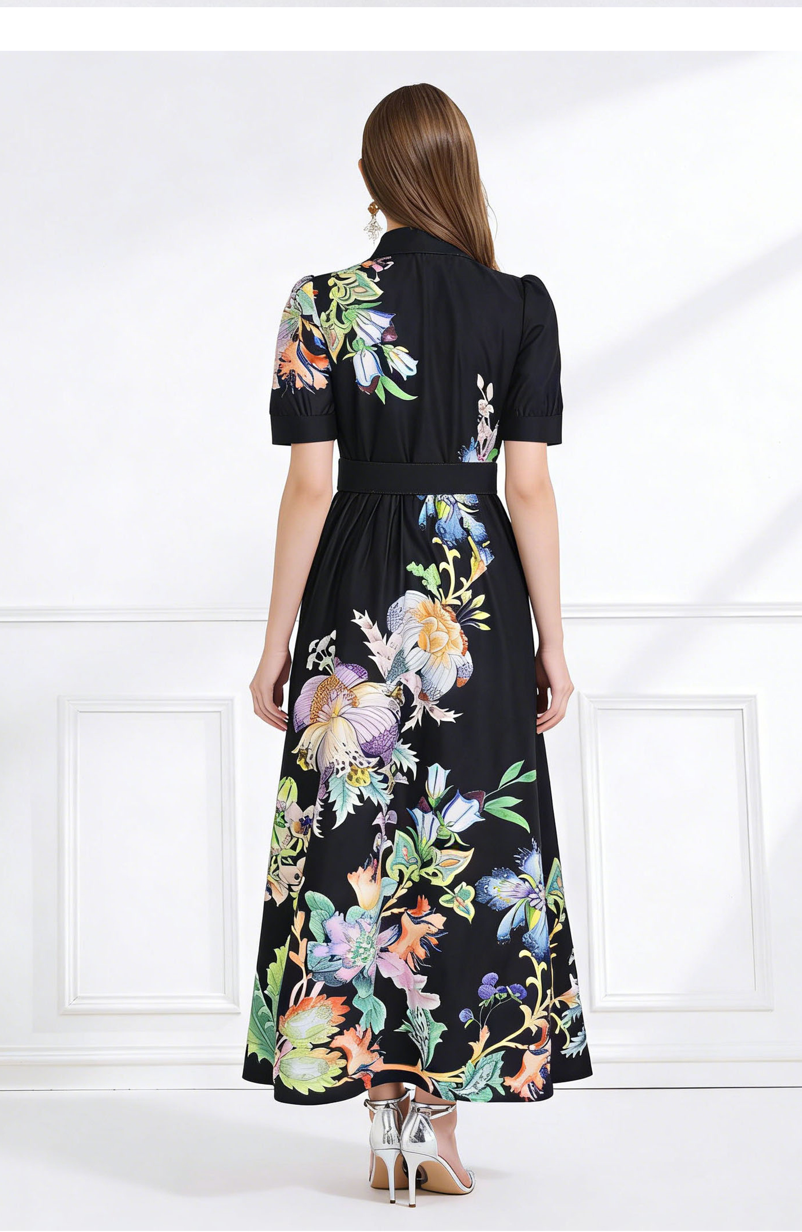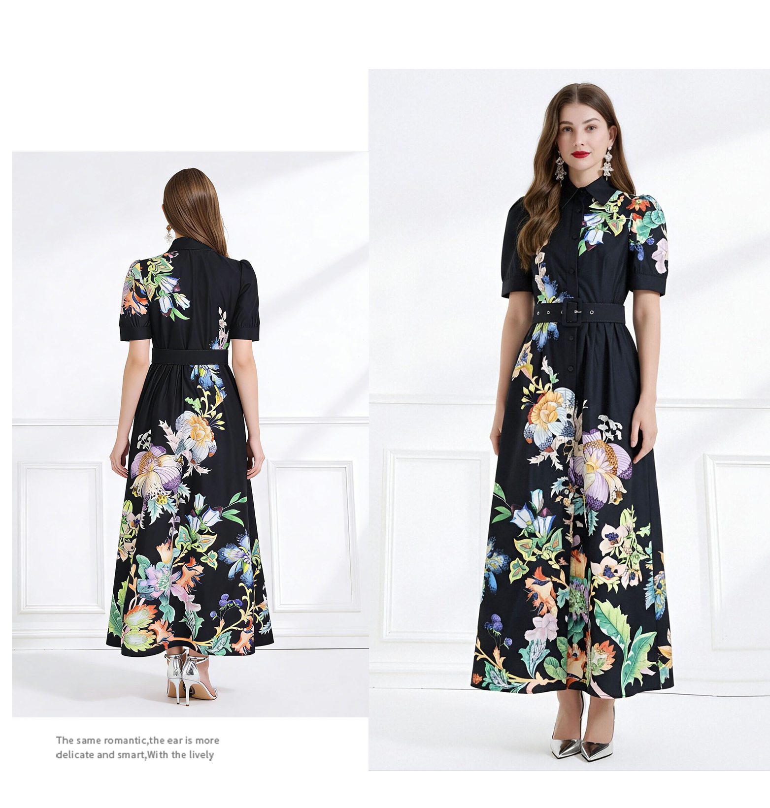 RY612# NATALIYA 2026夏季成衣新款复古印花翻领短袖收腰荷叶边长裙