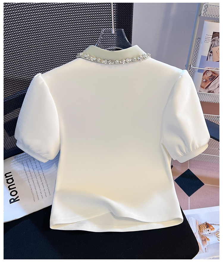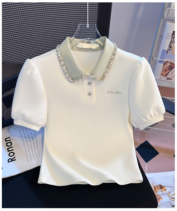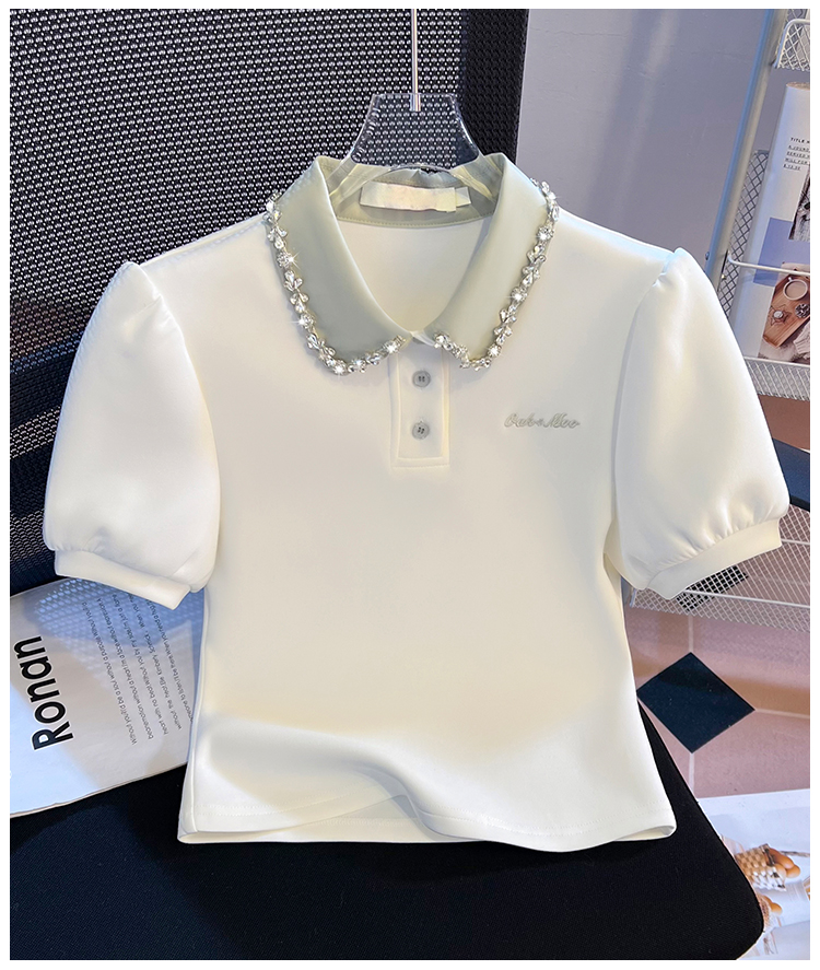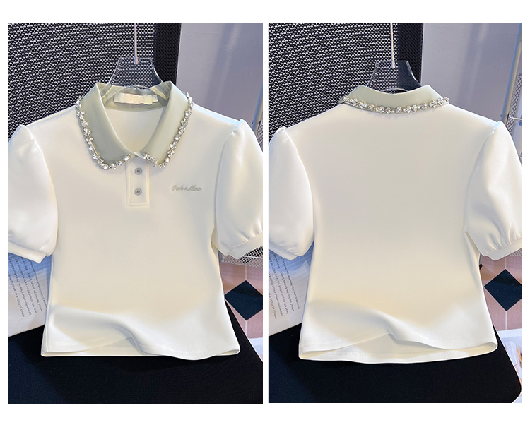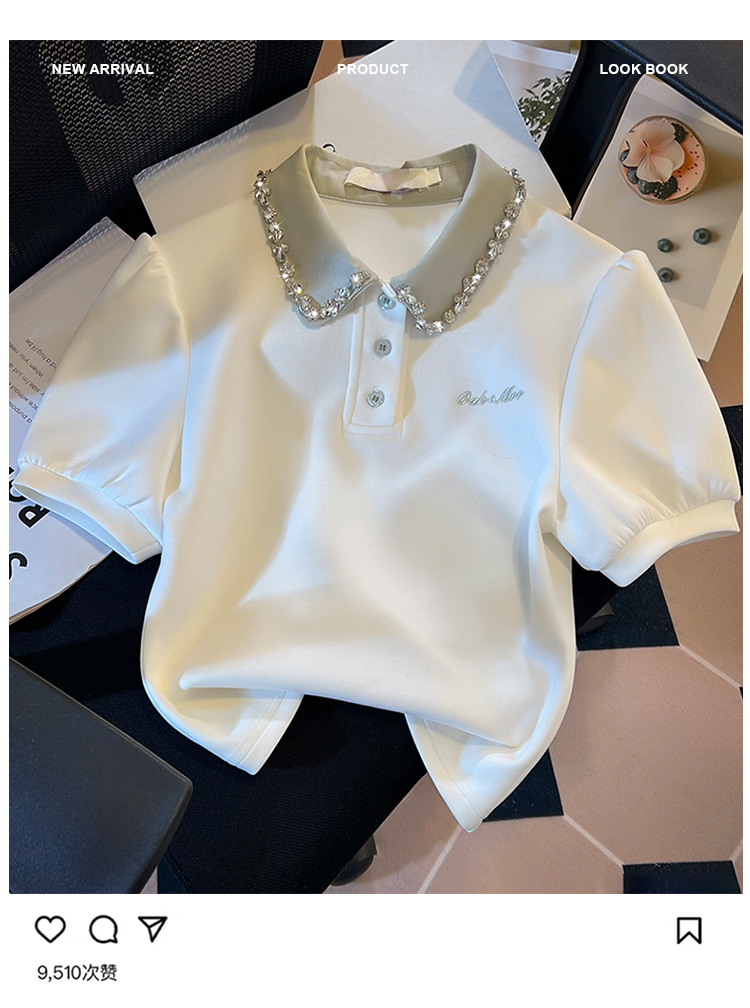 RY709# 实拍重工拼接假两件polo领短袖T恤女2026新款学院风小个子短上衣
