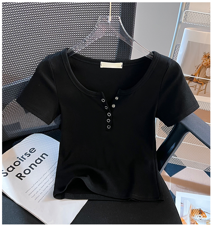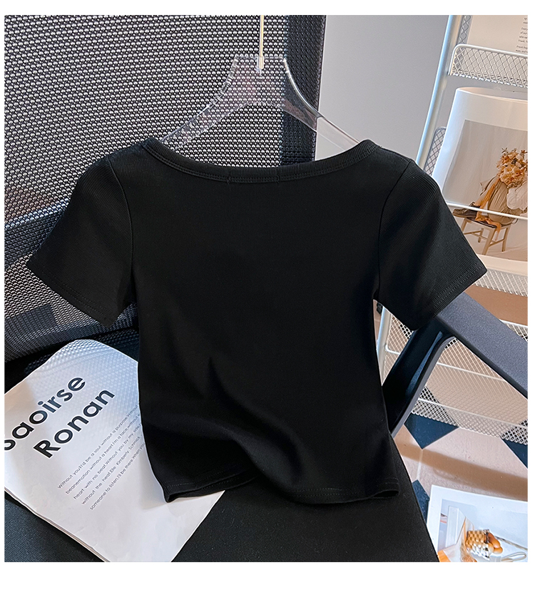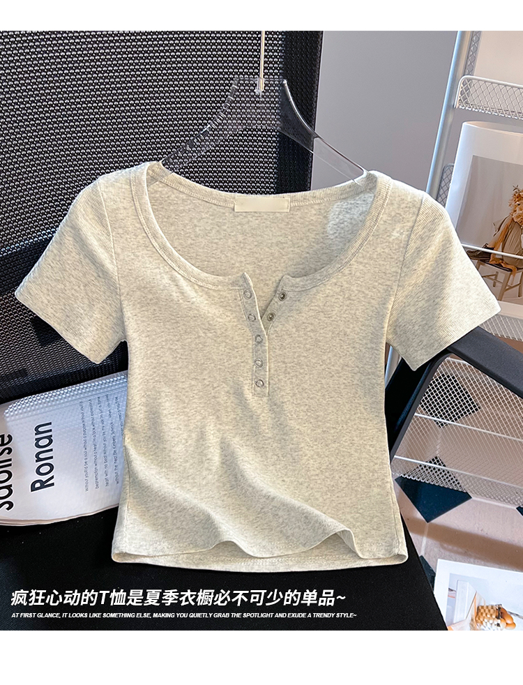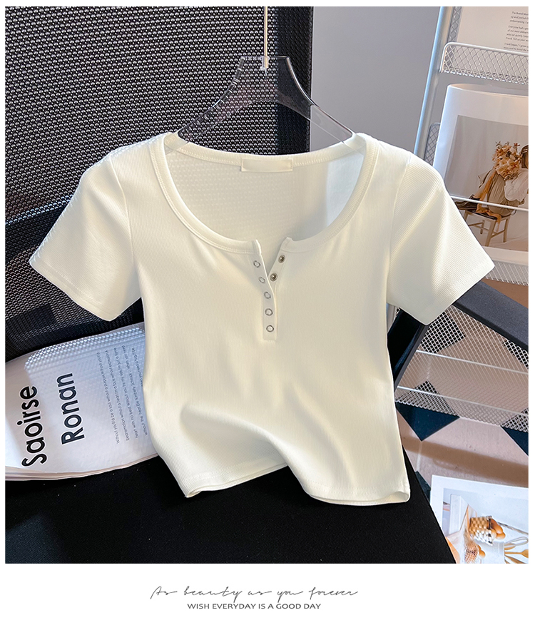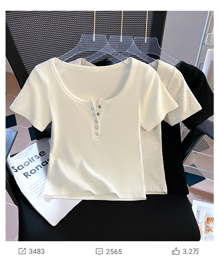 RY710# 实拍正肩T恤女春夏修身短款2026新款圆领打底衫纯色短袖显瘦上衣