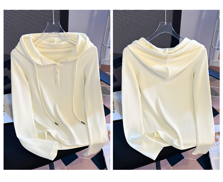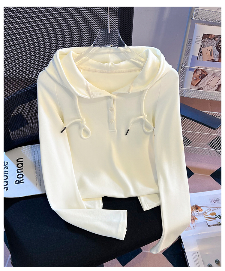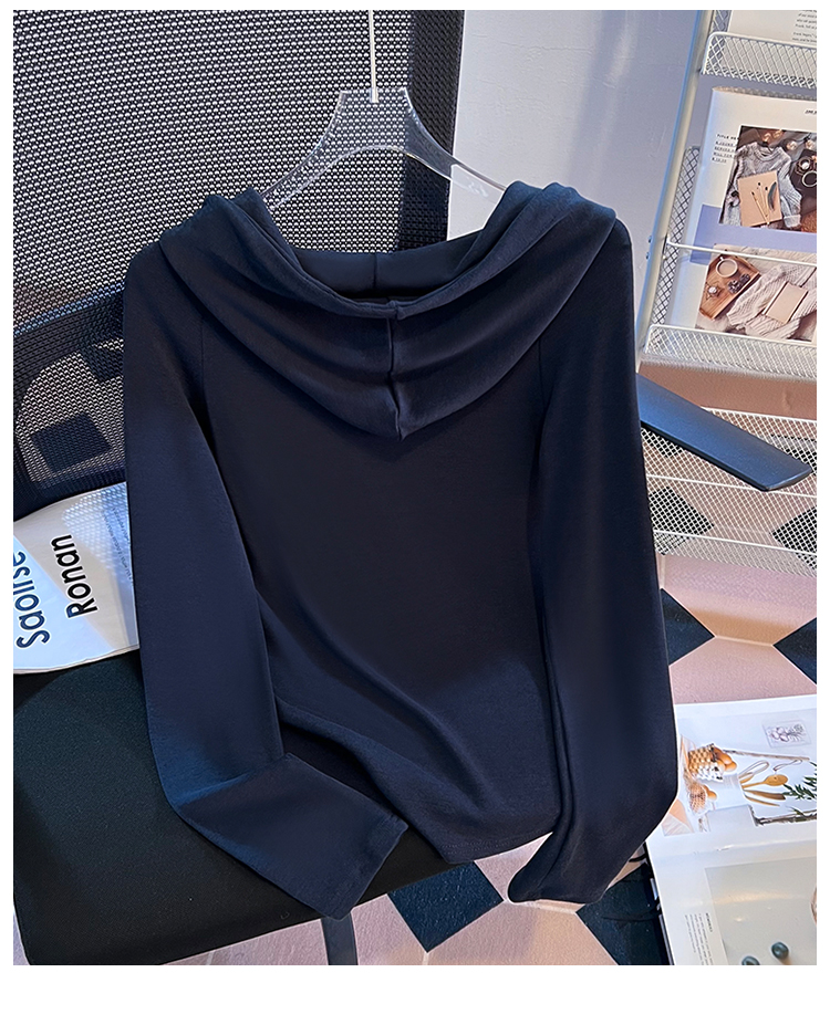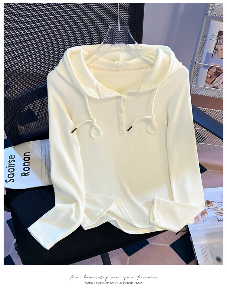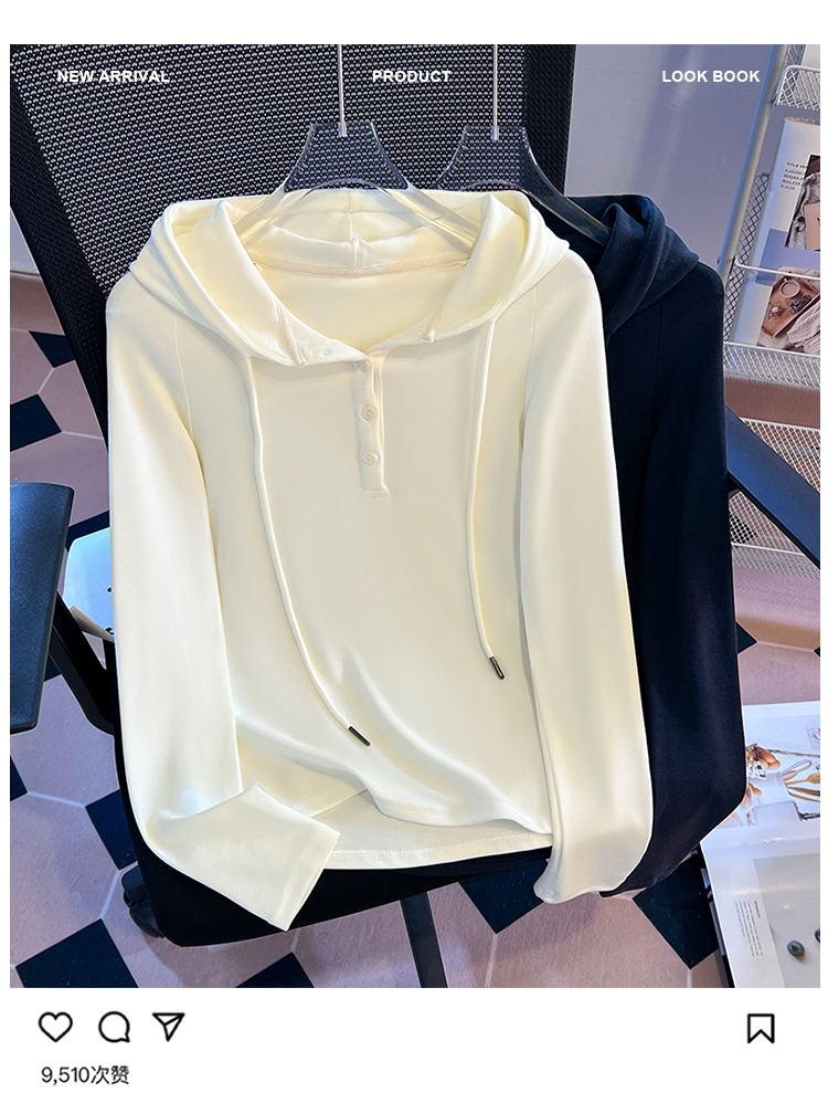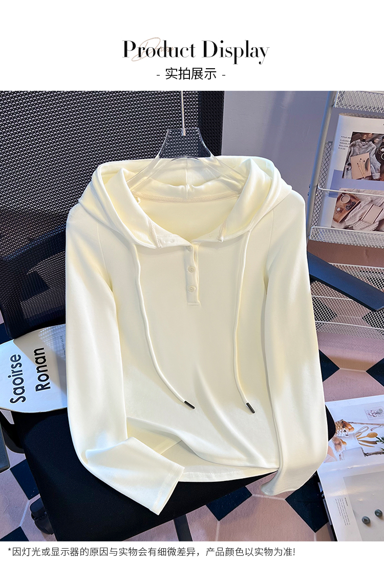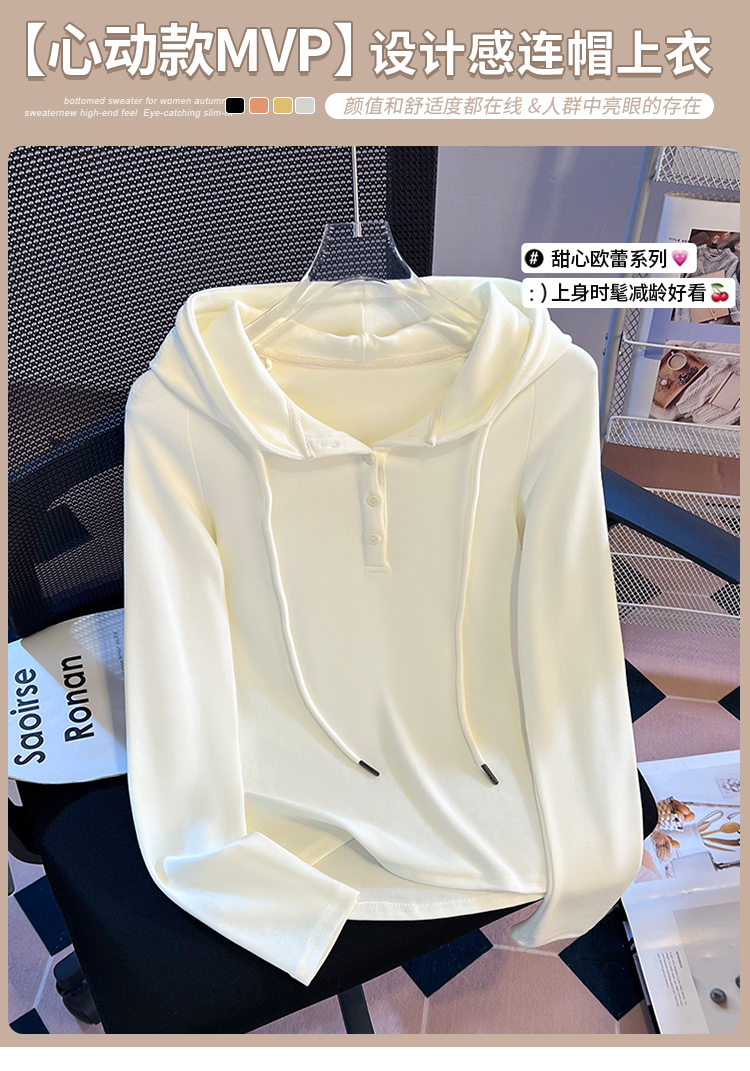 RY715# 实拍小清新连帽衫长袖T恤女早春2026新款韩系修身百搭时尚ins上衣