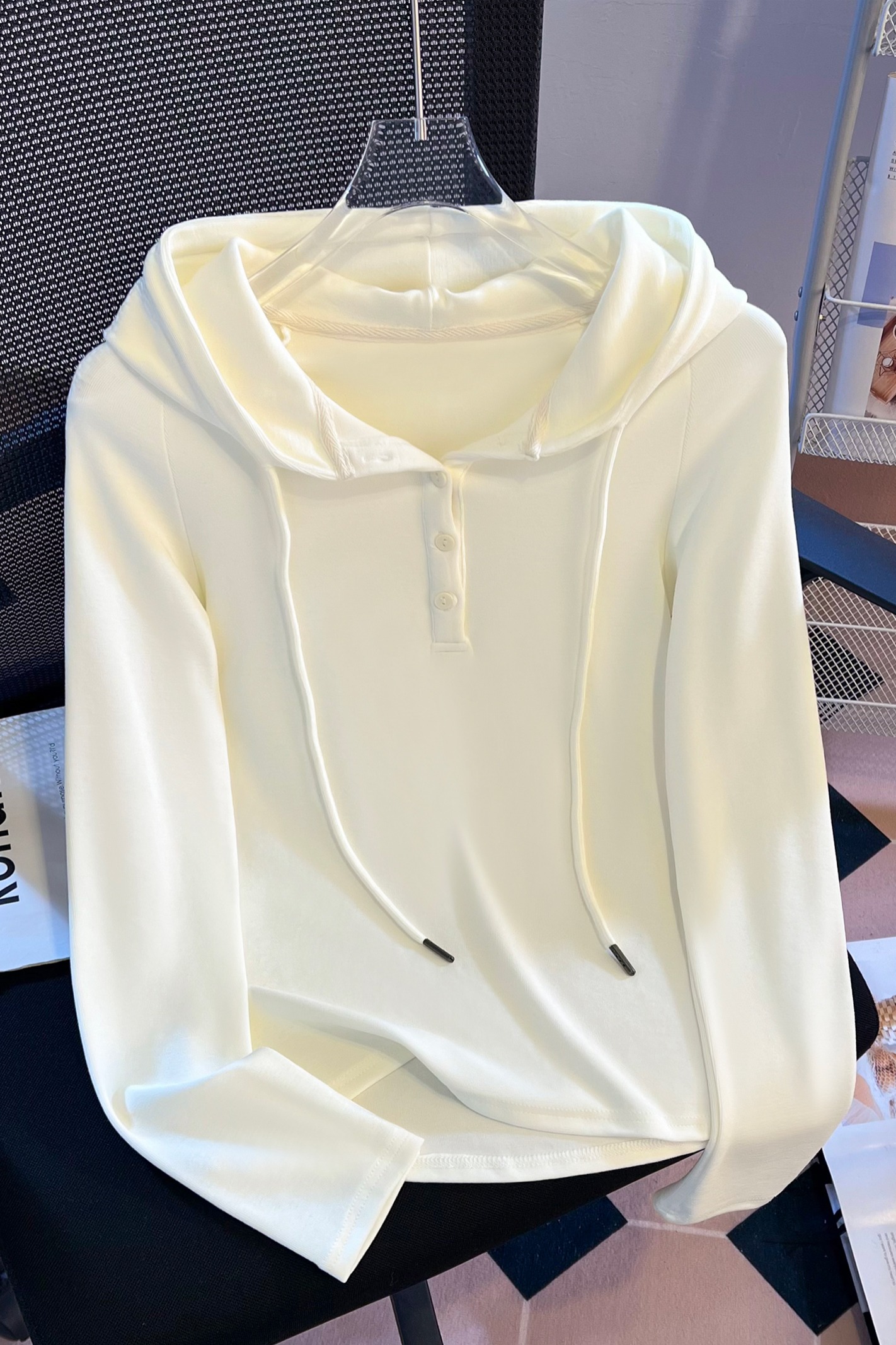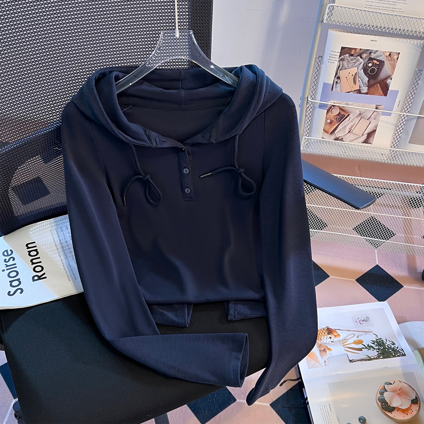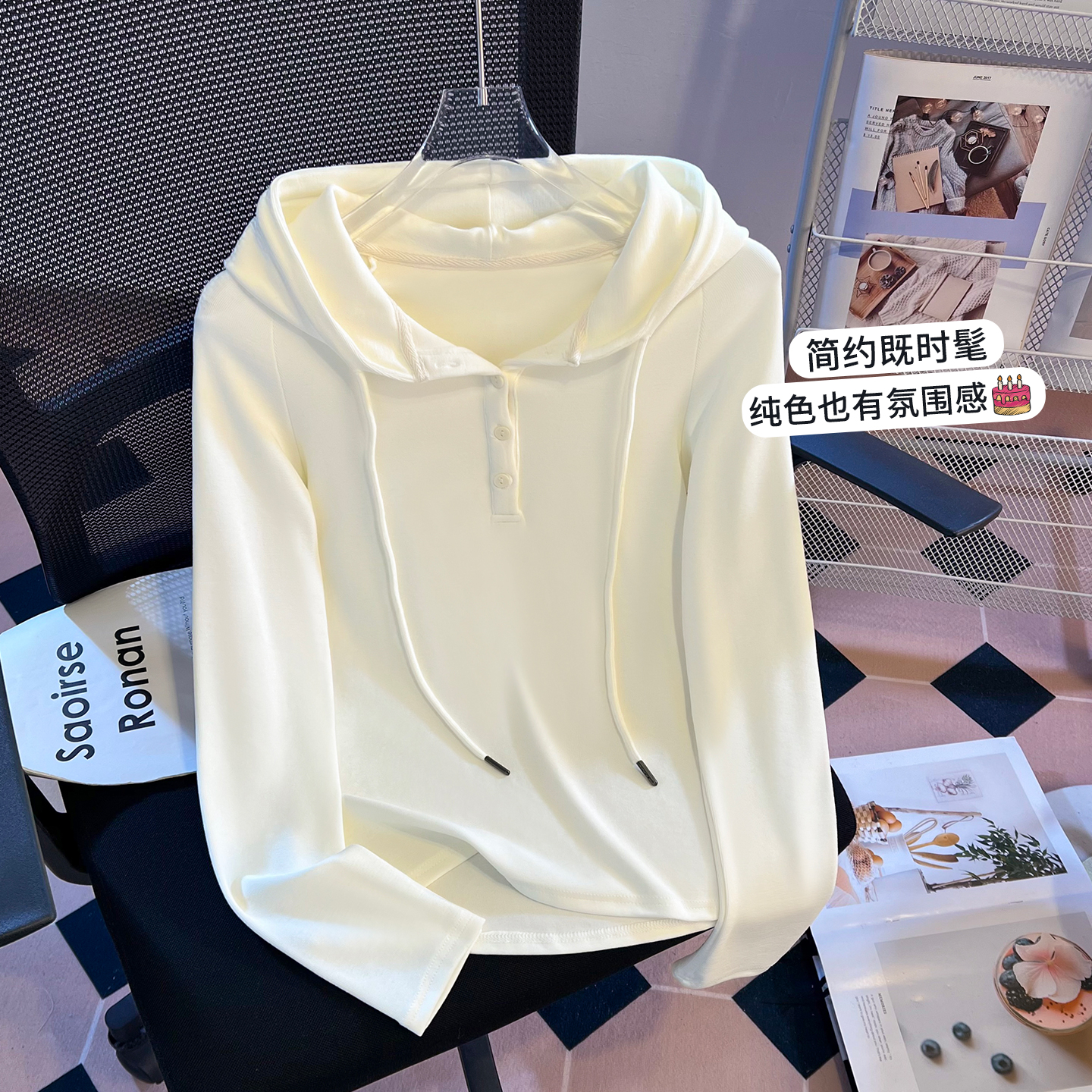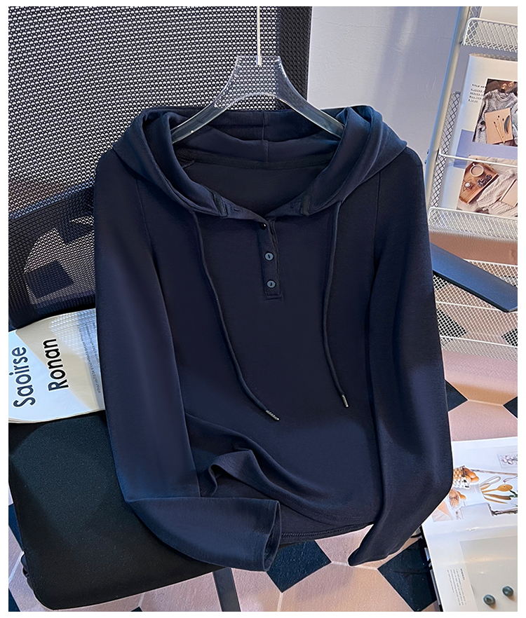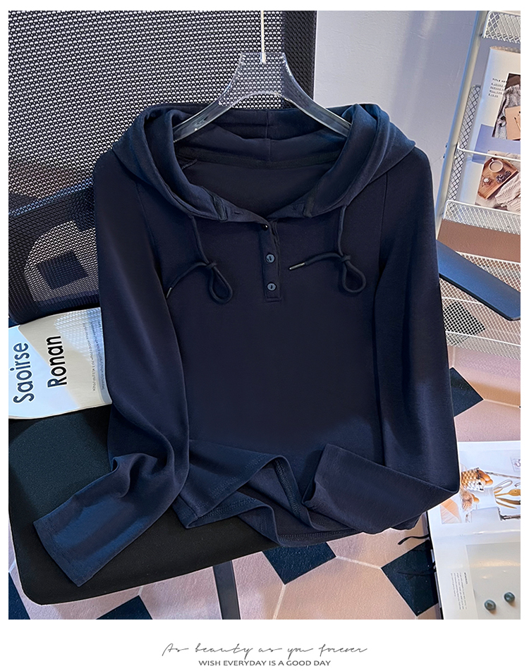 RY715# 实拍小清新连帽衫长袖T恤女早春2026新款韩系修身百搭时尚ins上衣