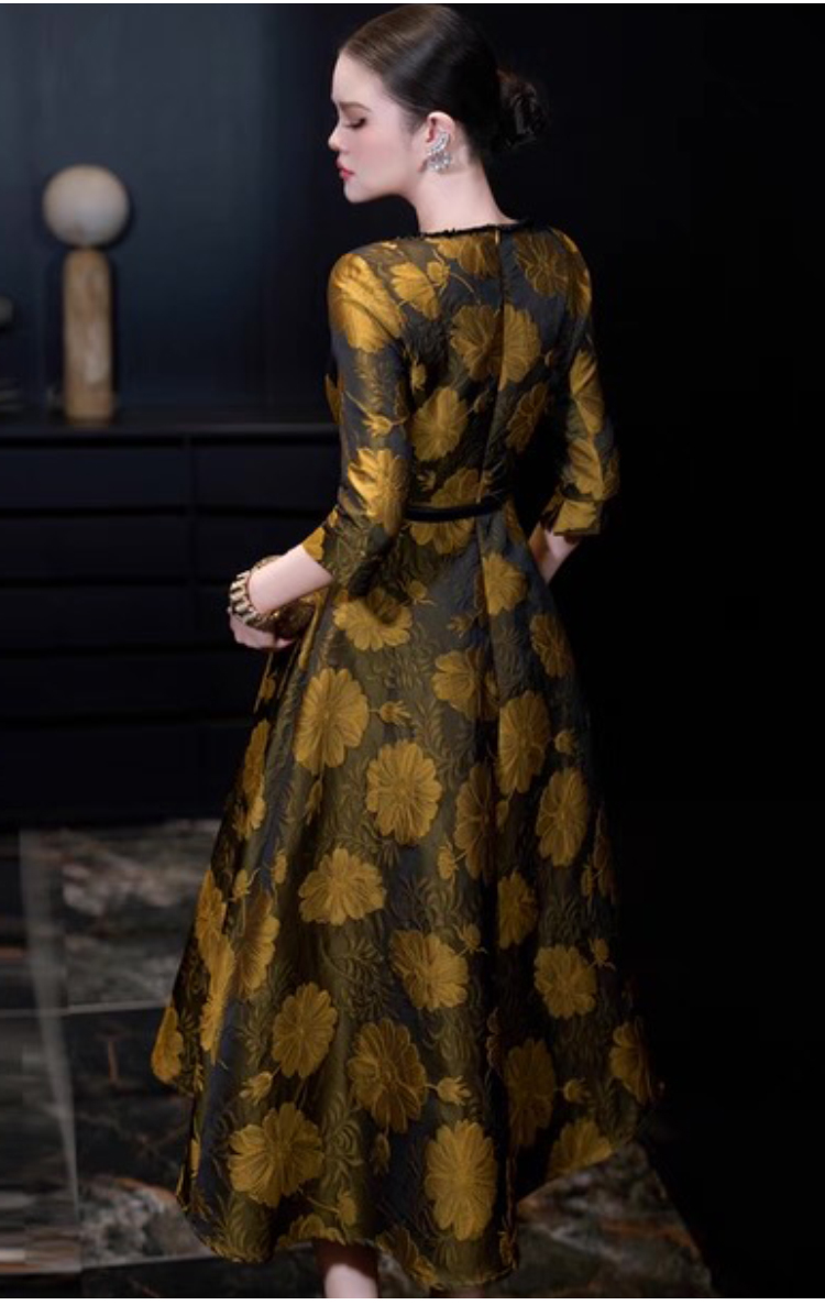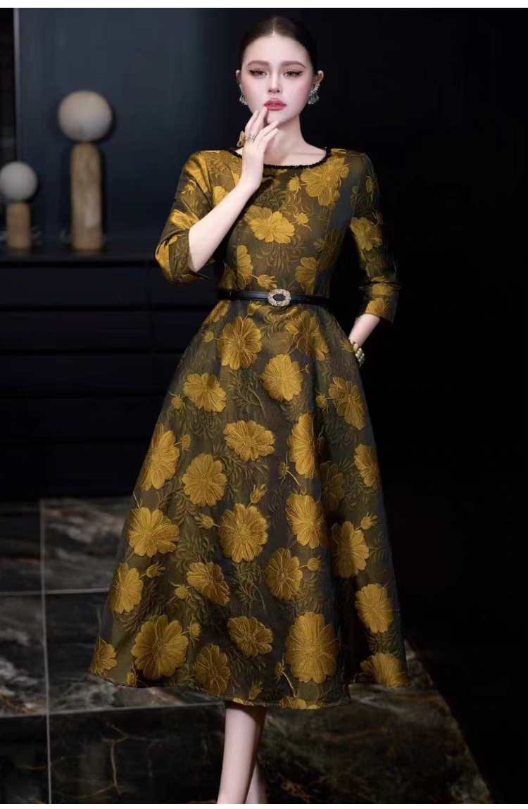 RY745# 实拍法式高级感提花收腰显瘦圆领无袖a字裙大摆连衣裙送腰带