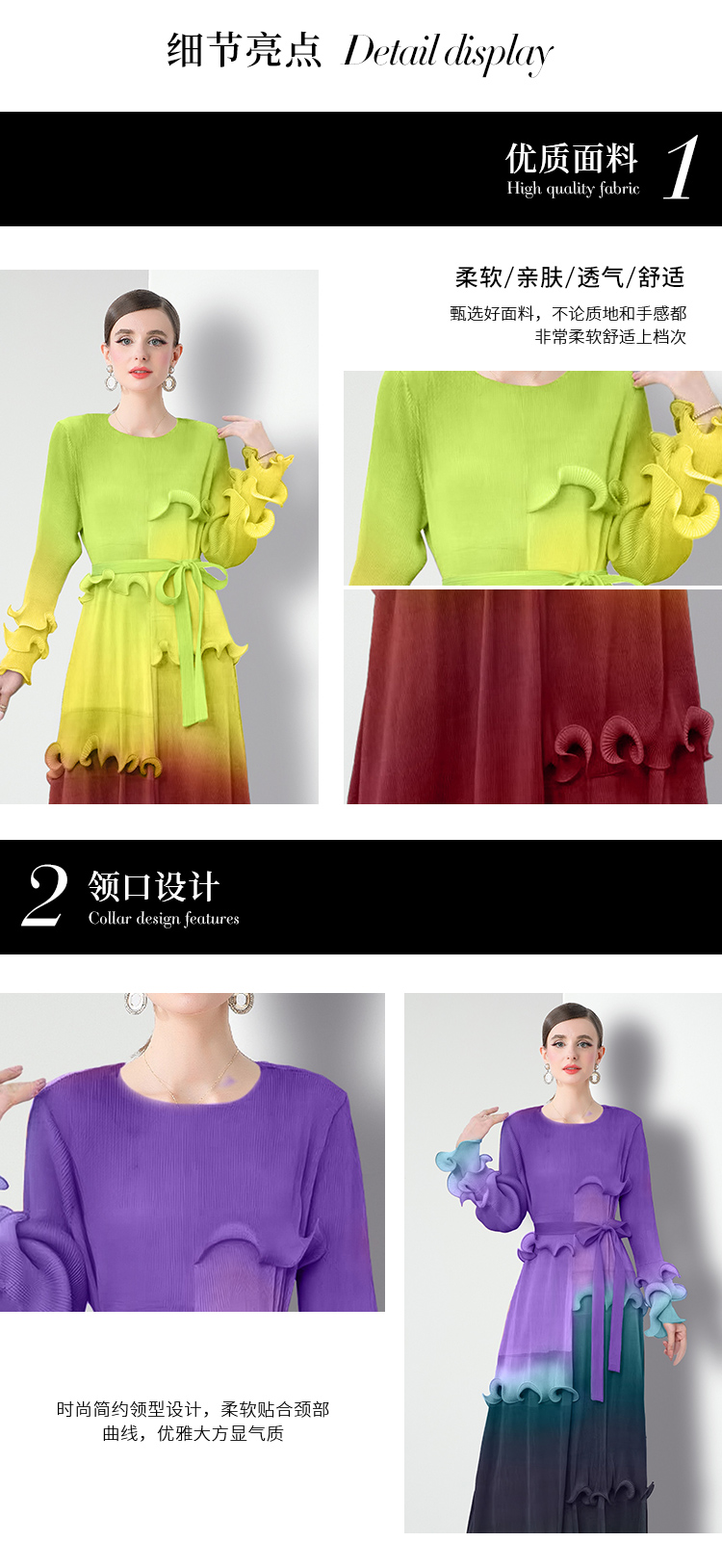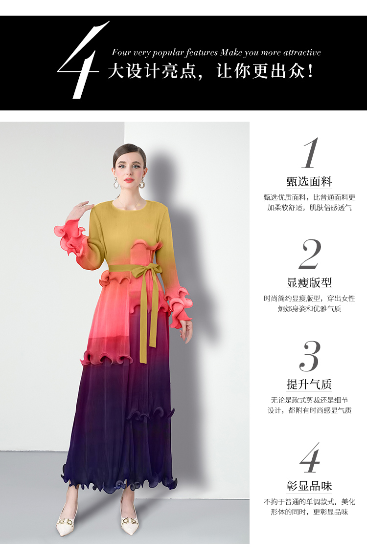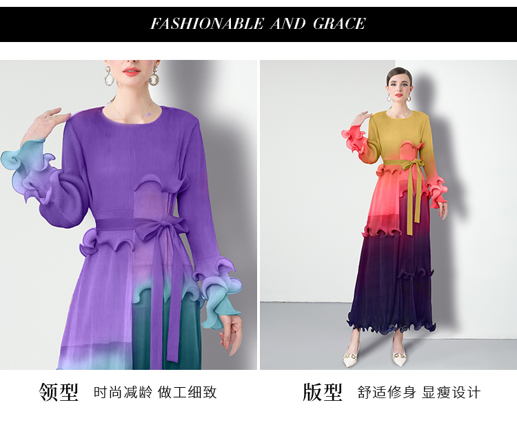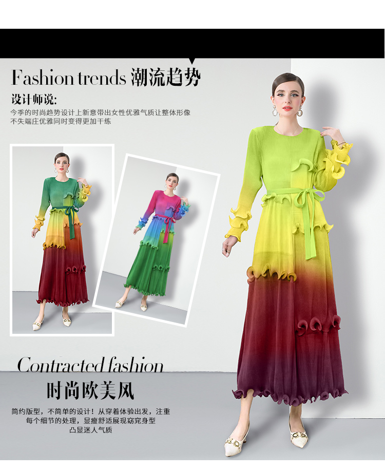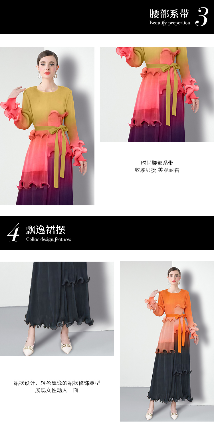 RY1528# 工厂直营 三宅皱褶 晕染拼接连衣裙