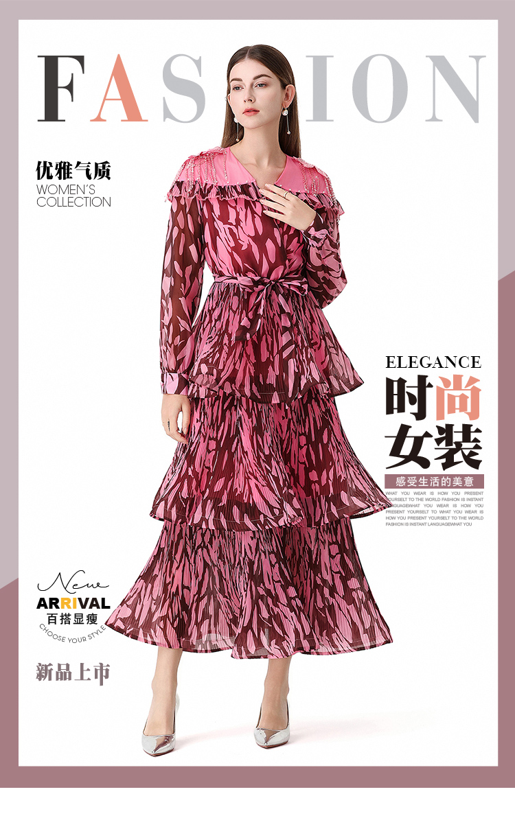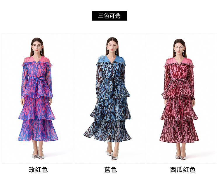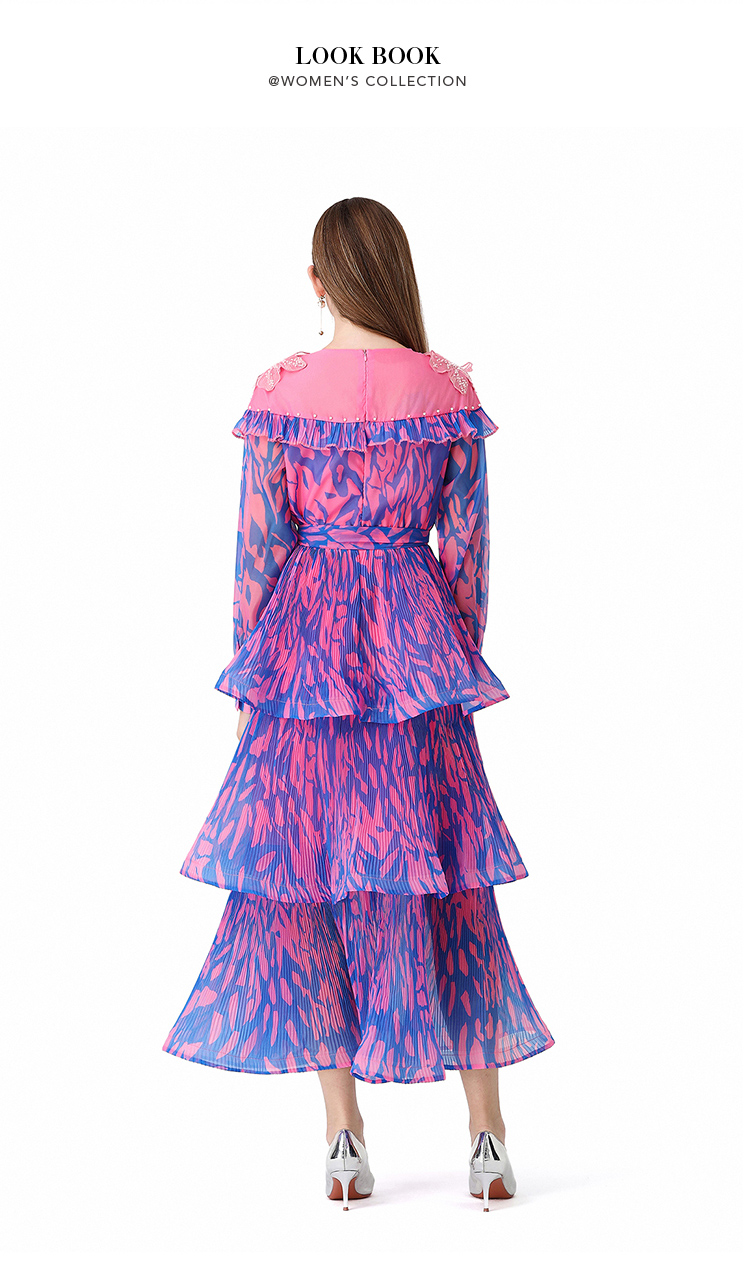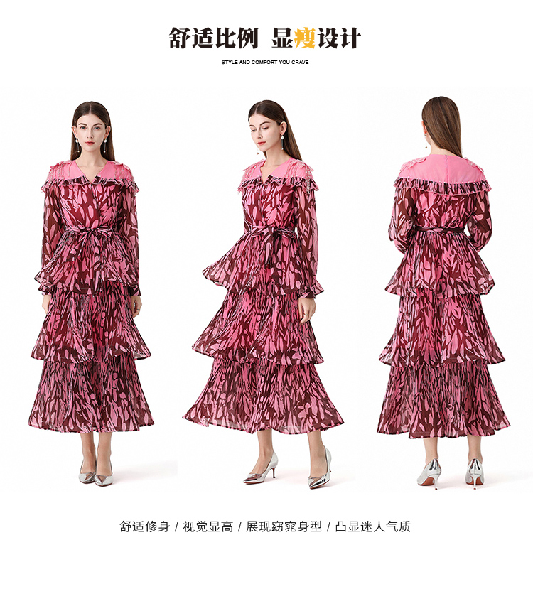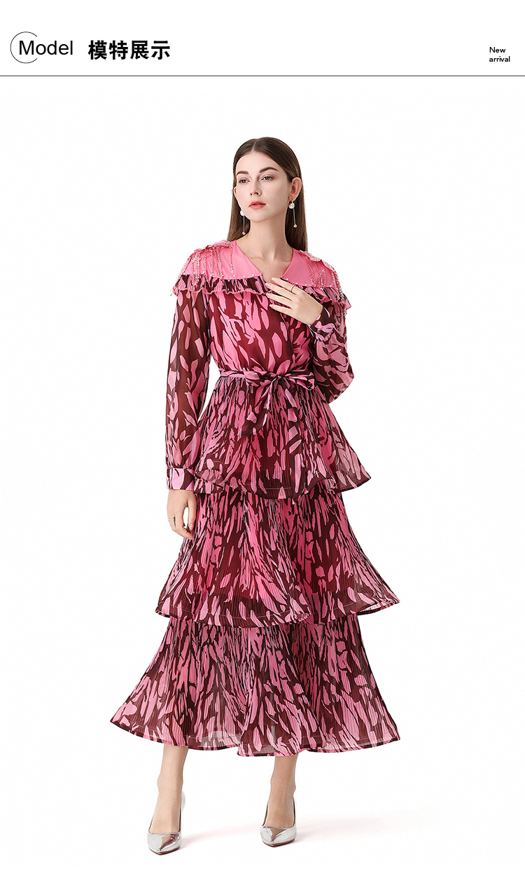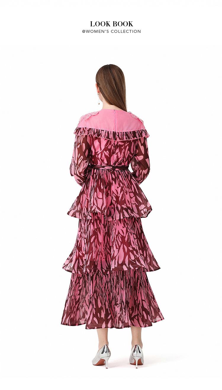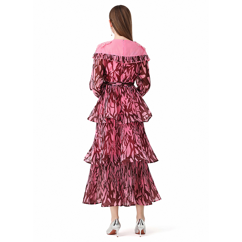 RY1598# 2026欧美优雅亚马逊收腰多层荷叶边澳洲跨境长袖连衣裙