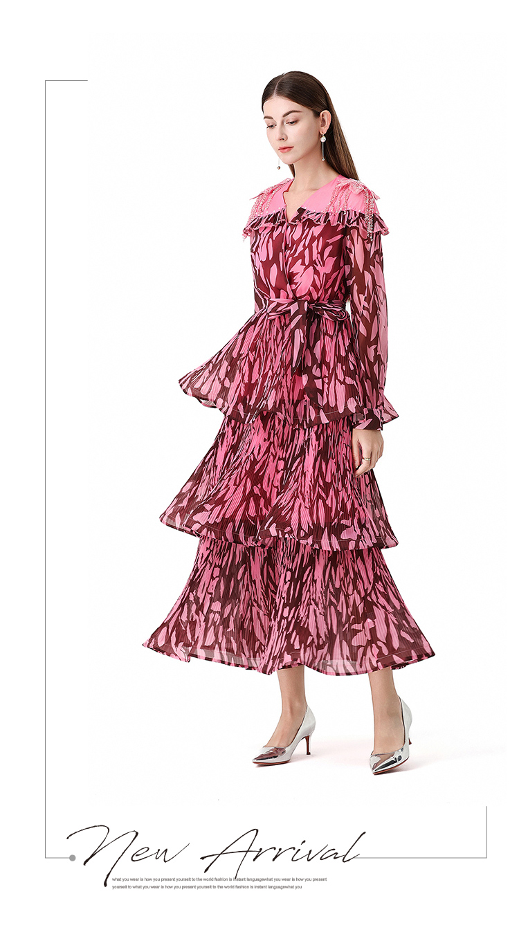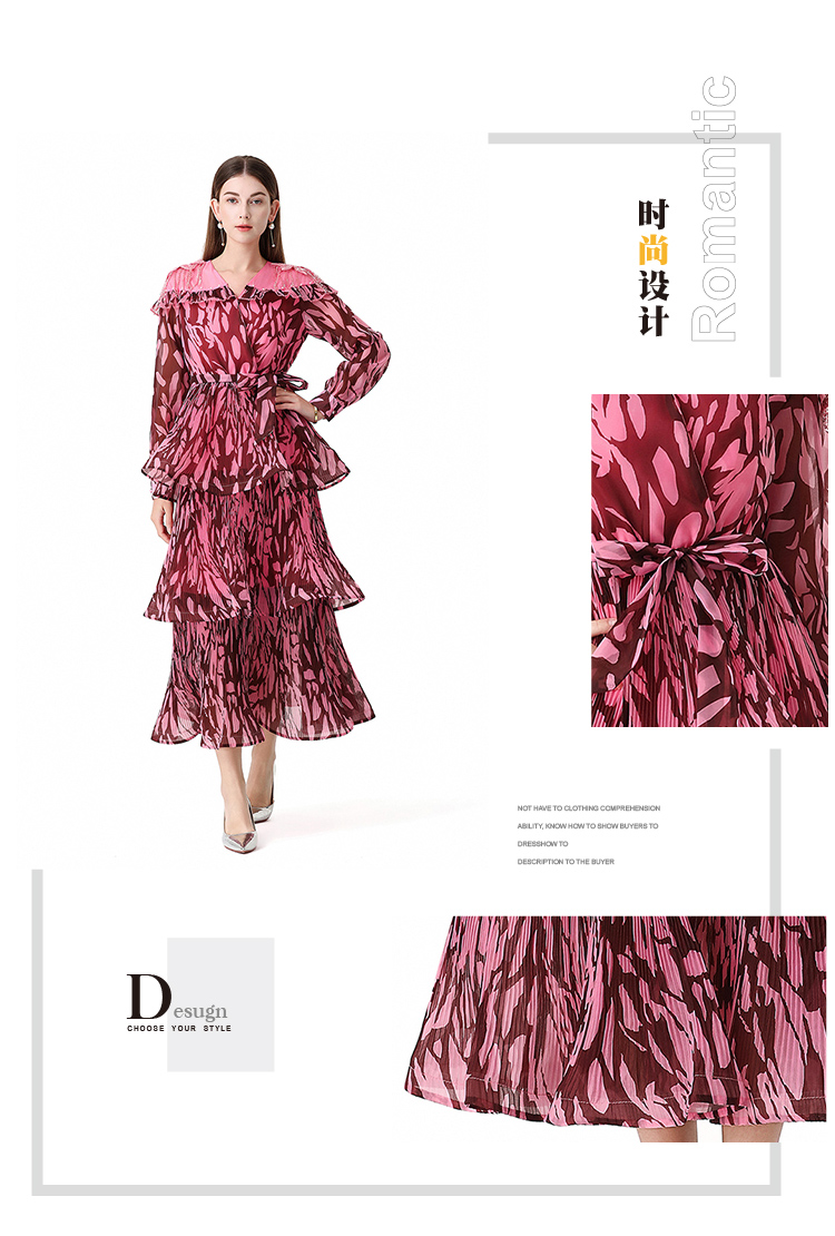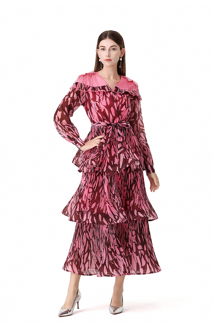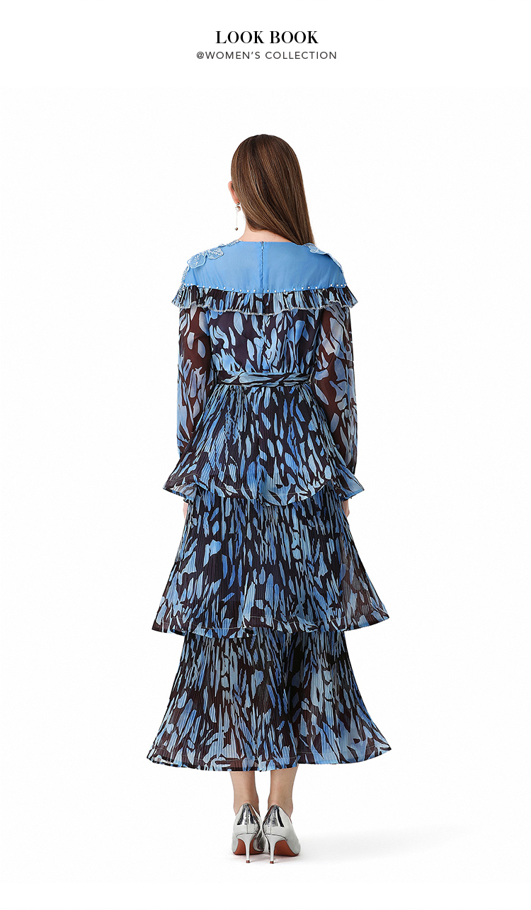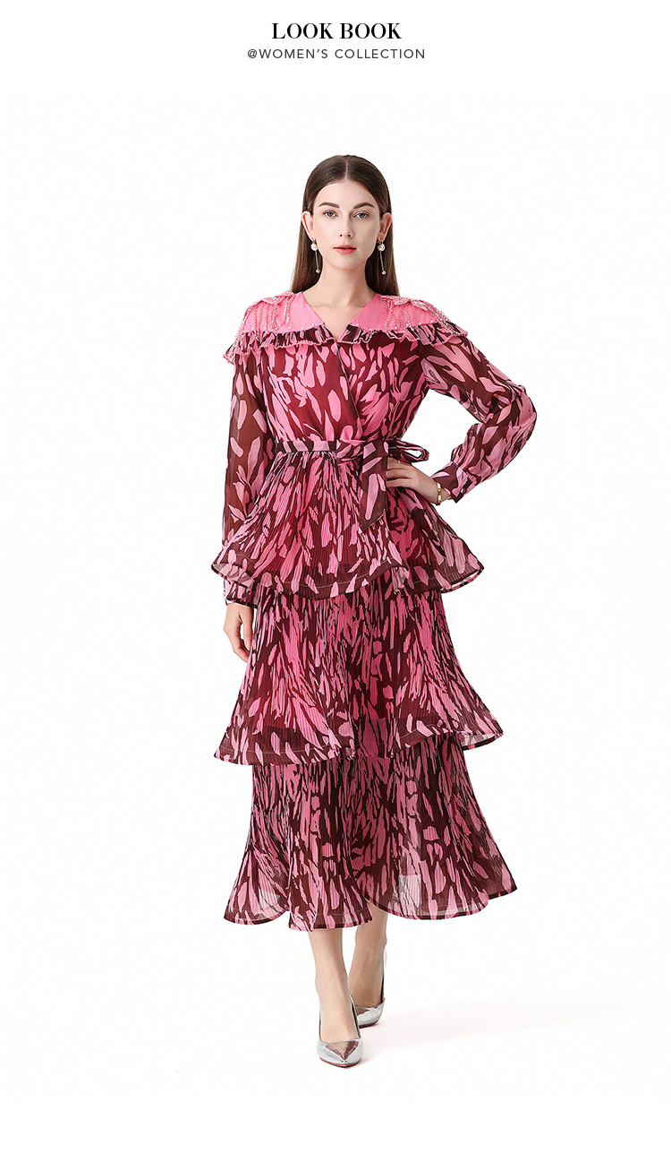 RY1598# 2026欧美优雅亚马逊收腰多层荷叶边澳洲跨境长袖连衣裙