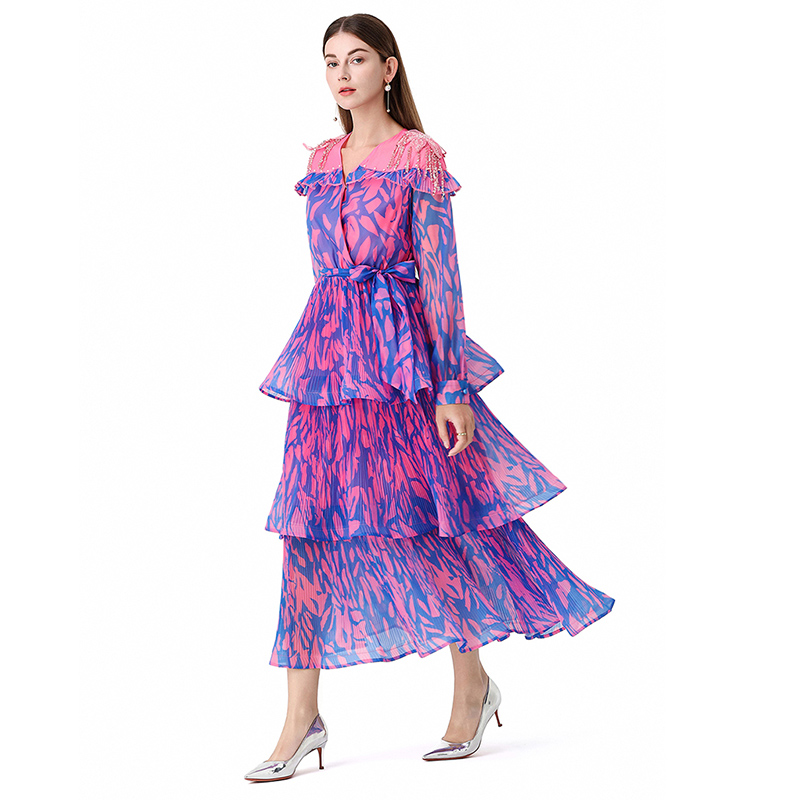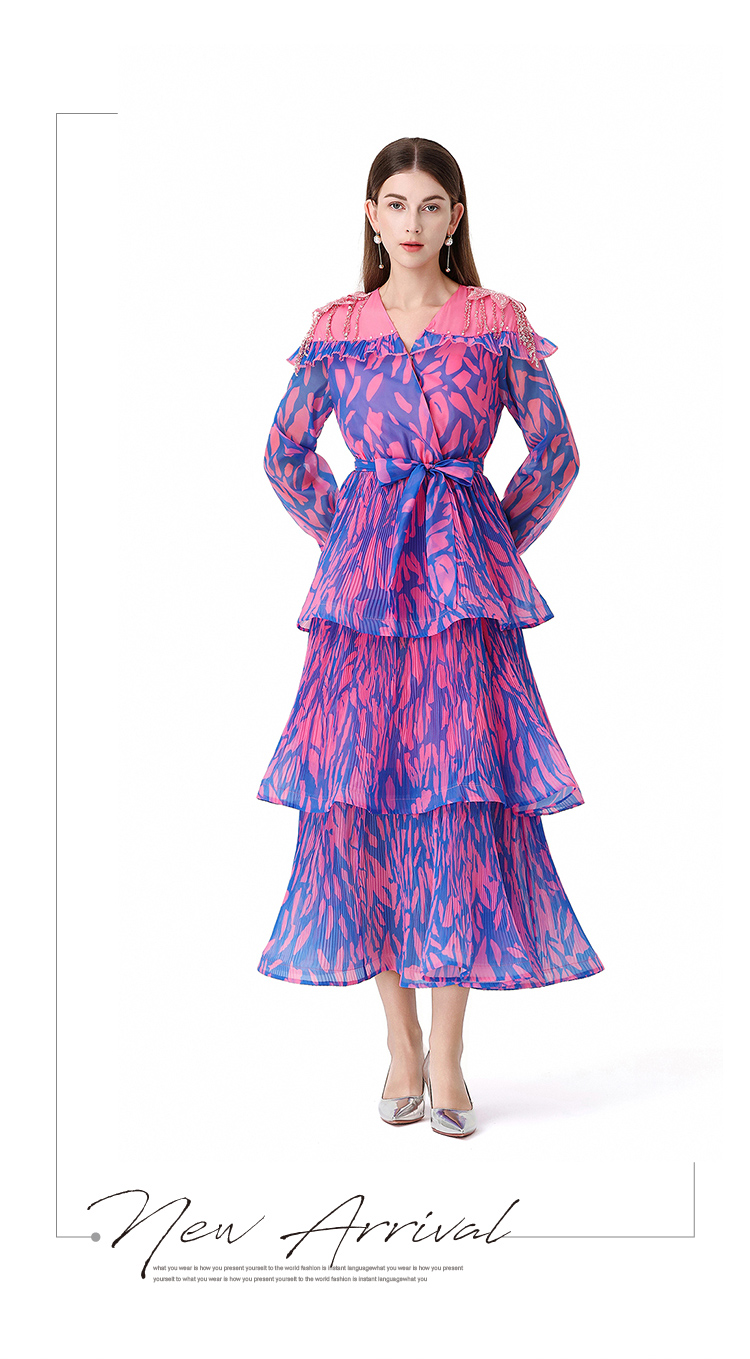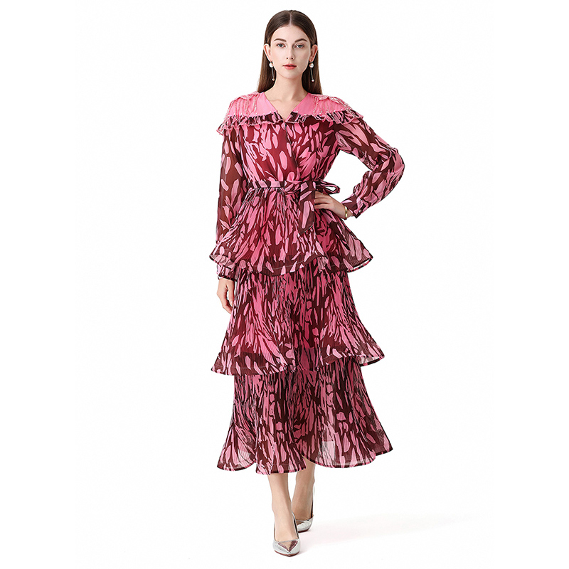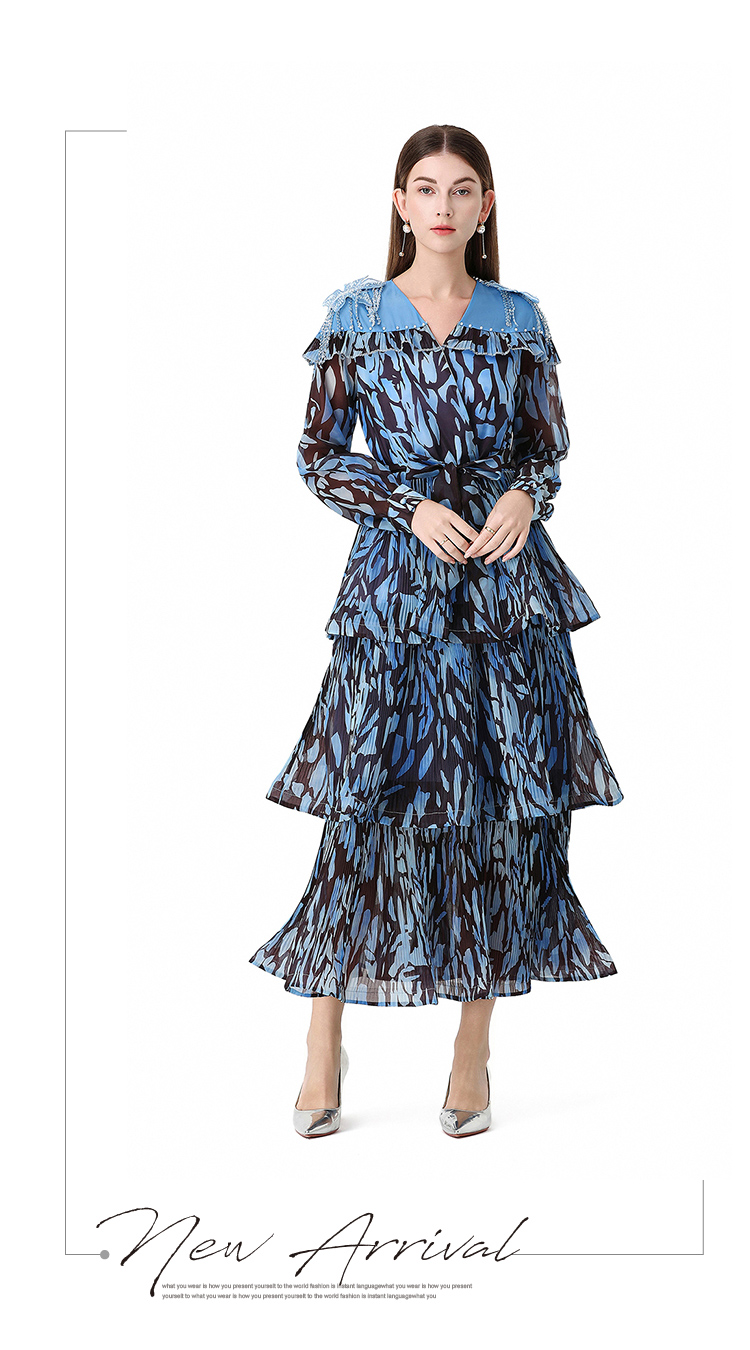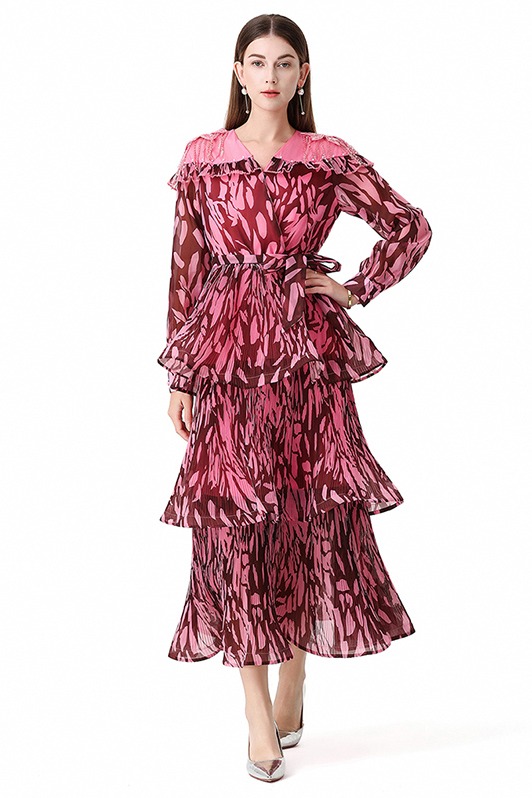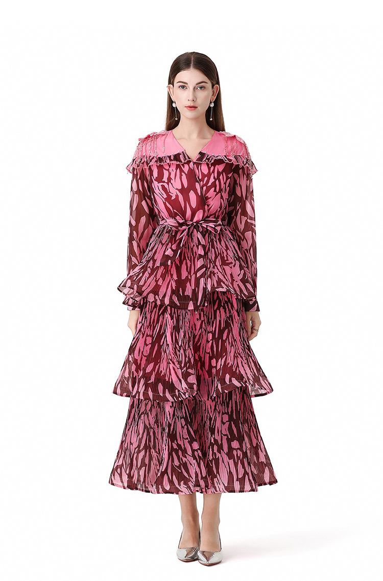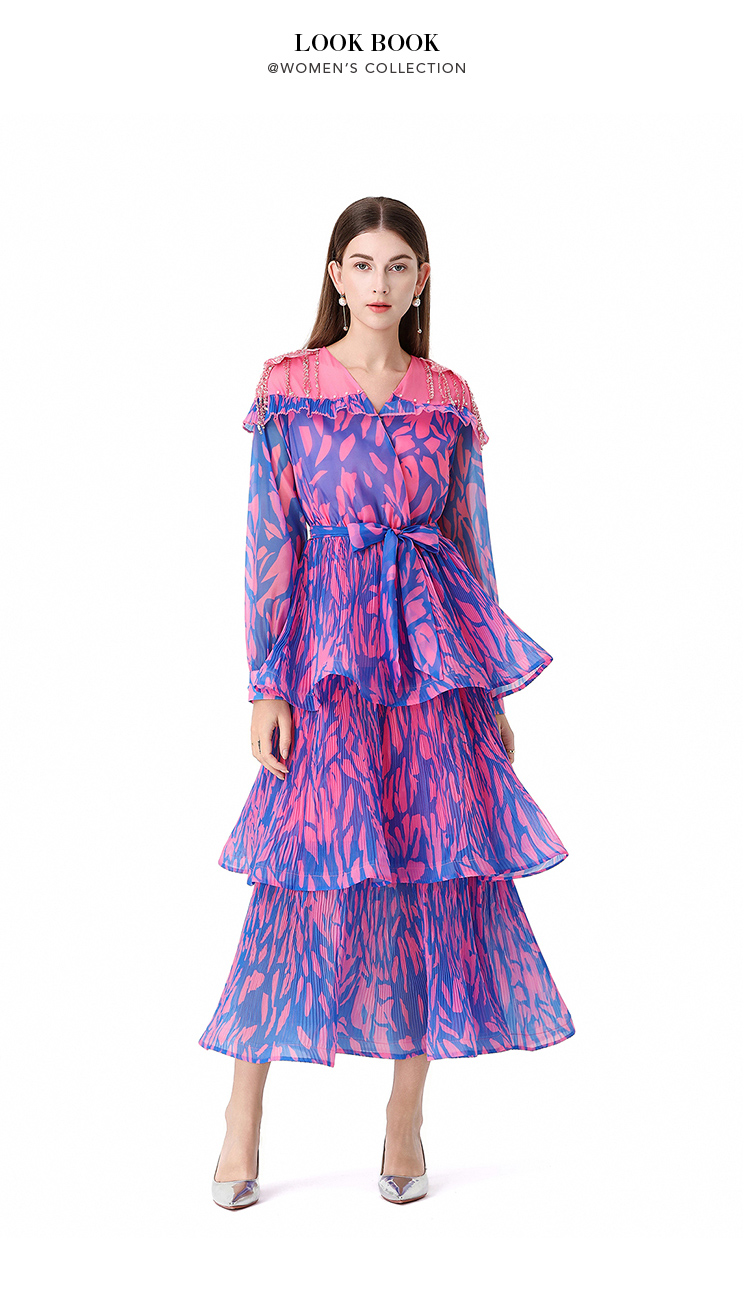 RY1598# 2026欧美优雅亚马逊收腰多层荷叶边澳洲跨境长袖连衣裙