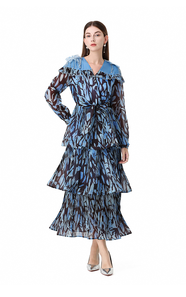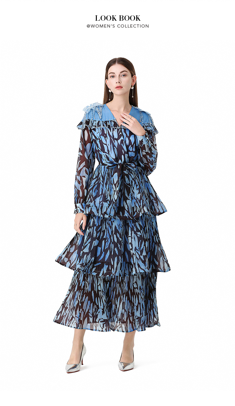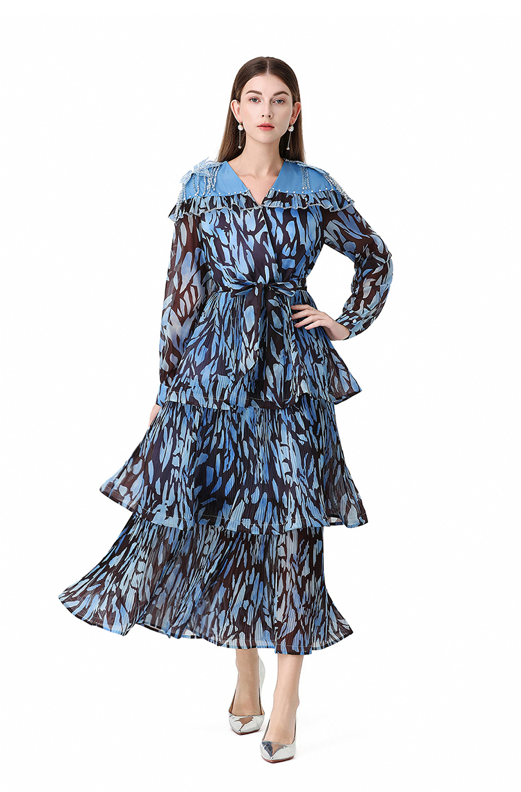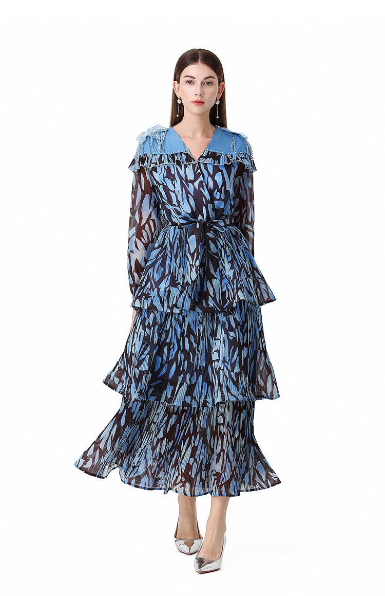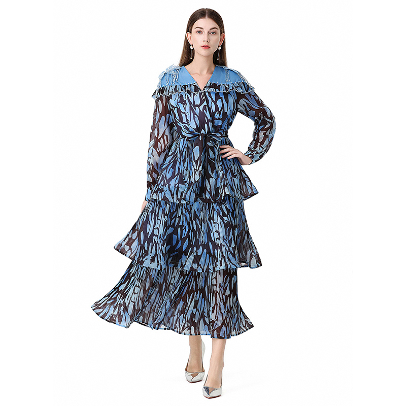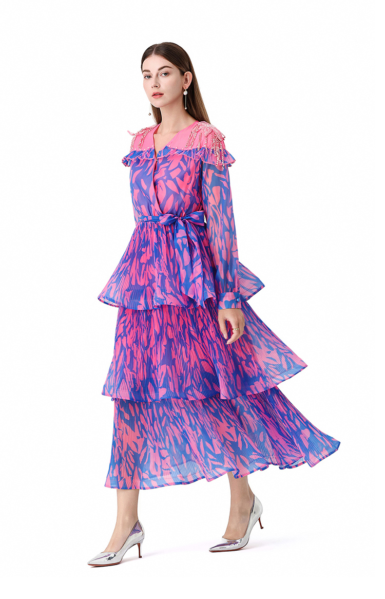 RY1598# 2026欧美优雅亚马逊收腰多层荷叶边澳洲跨境长袖连衣裙