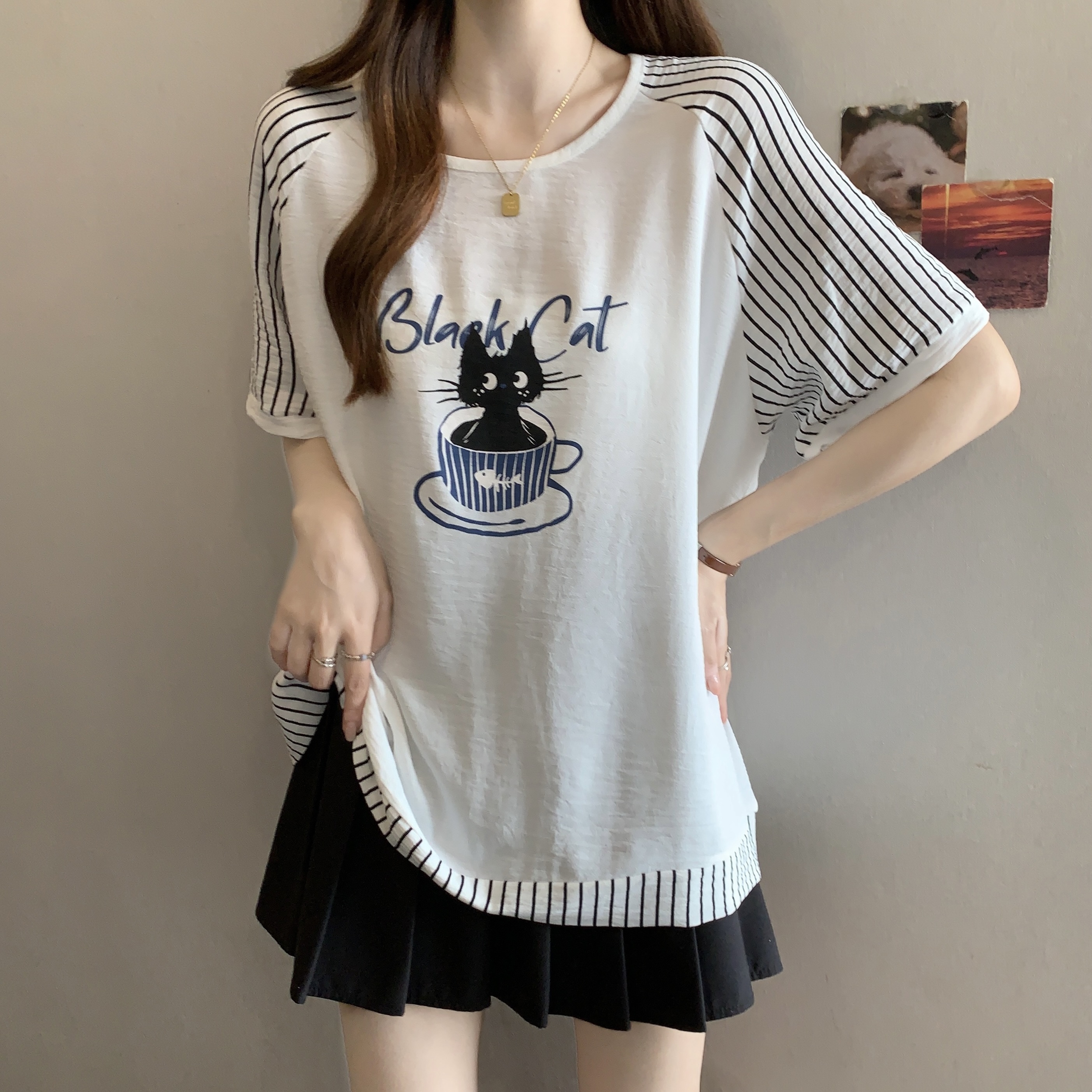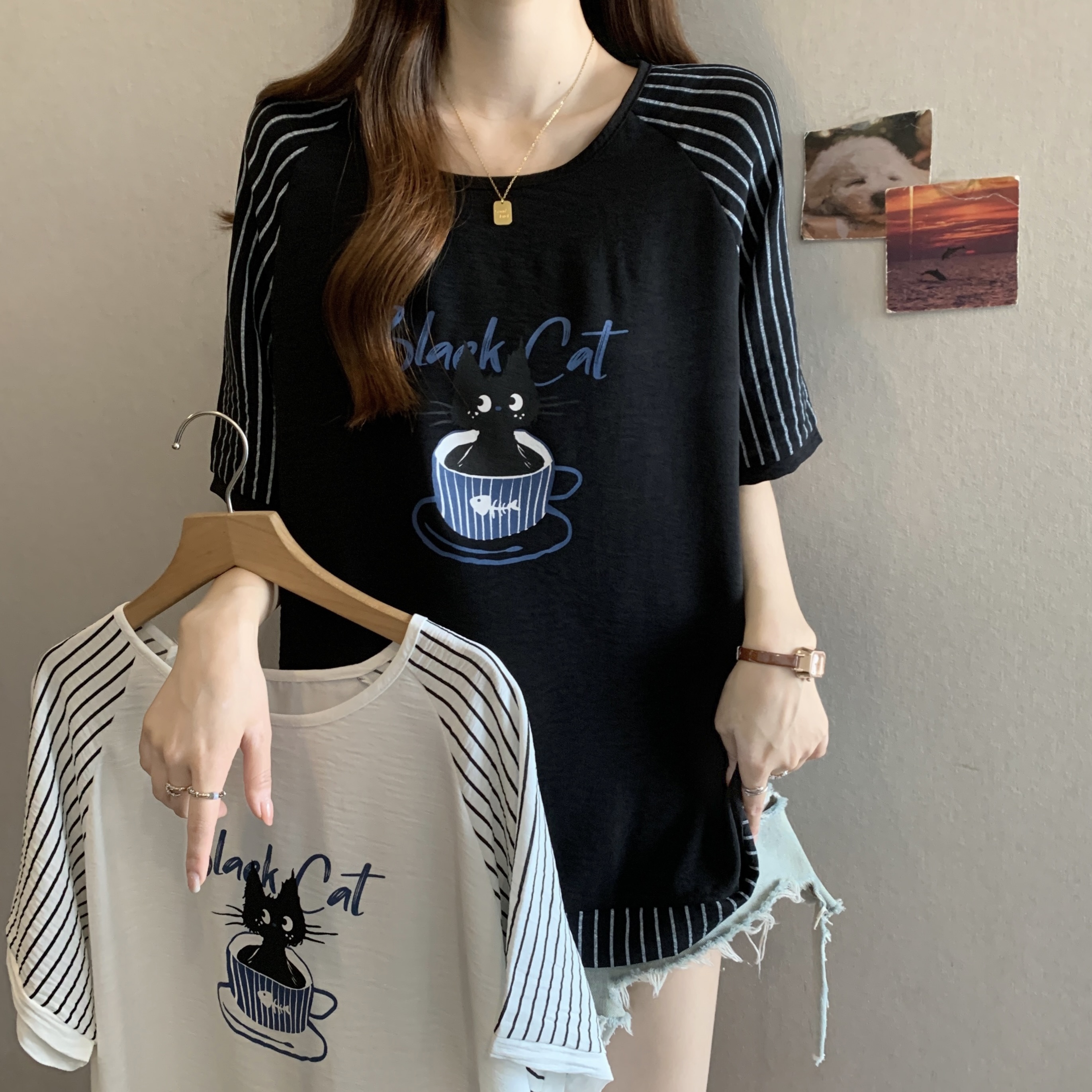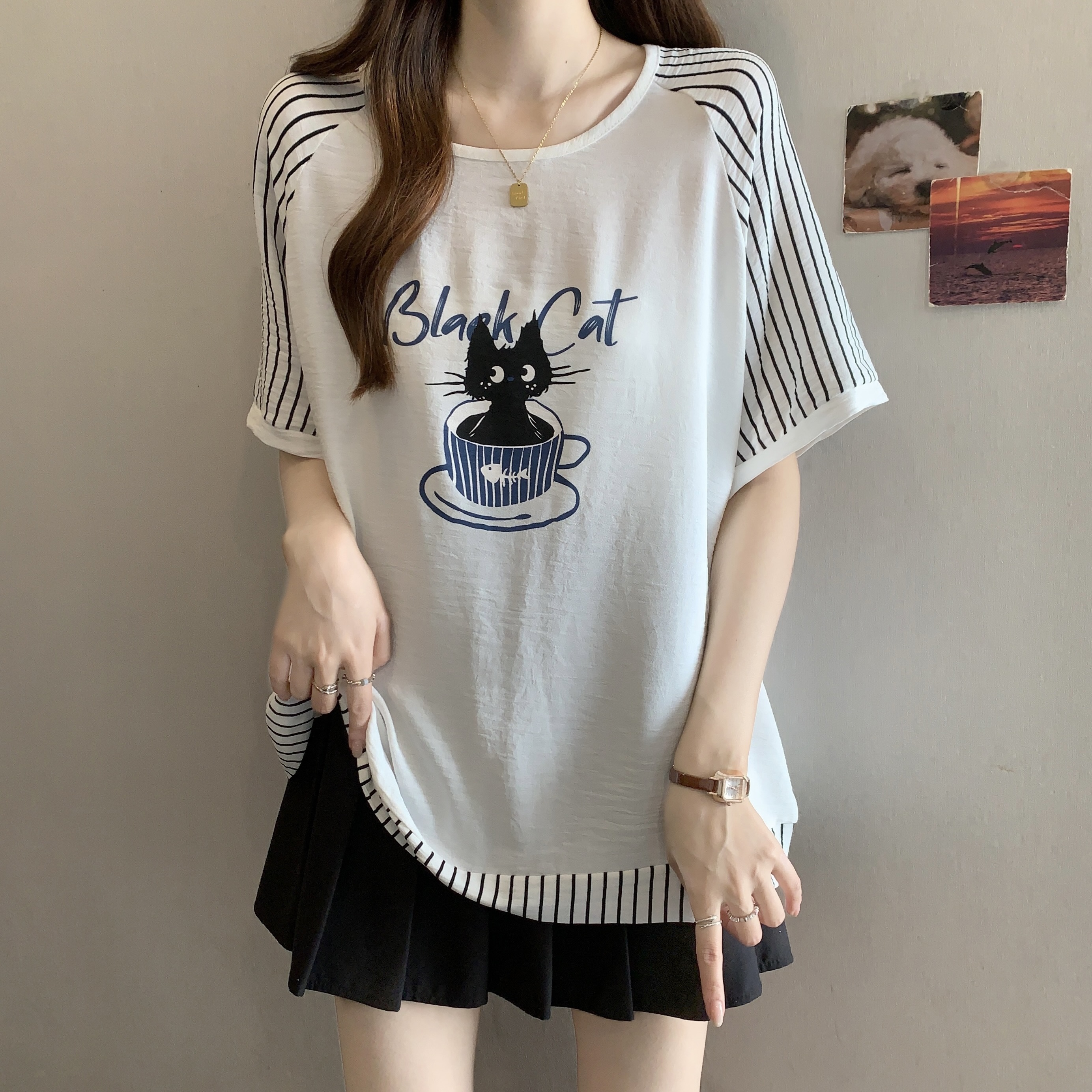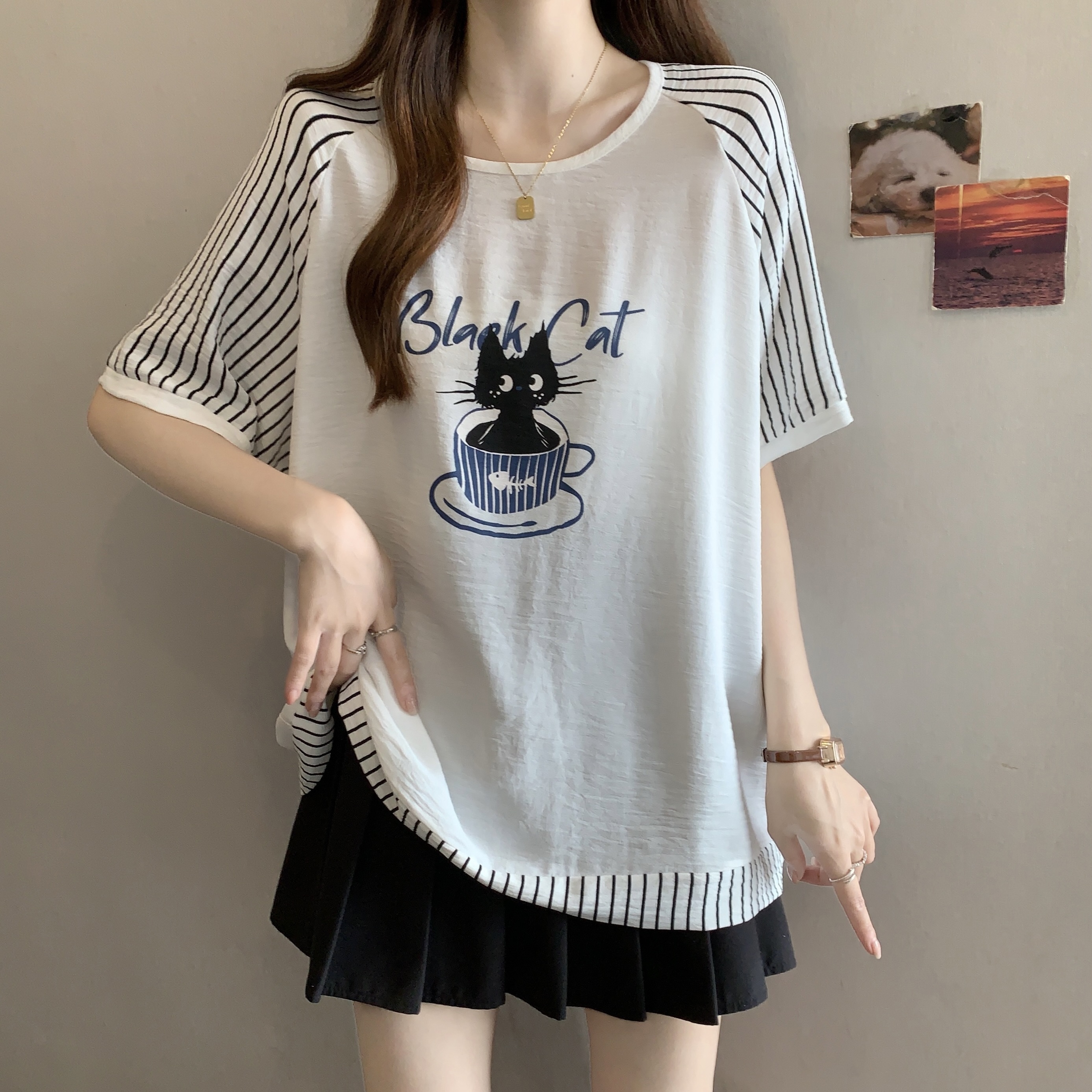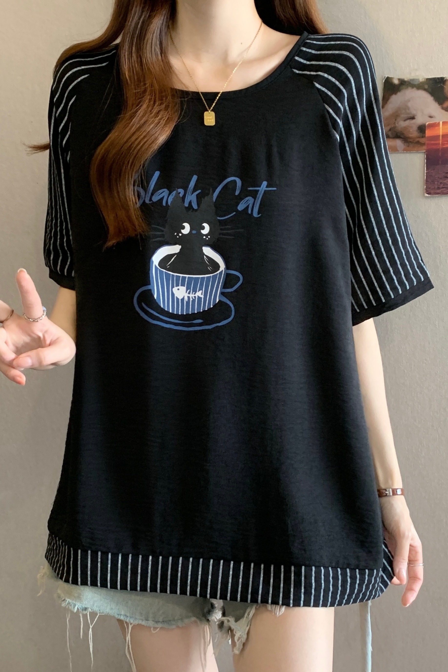 RY1692# 宽松大码撞色拼接短袖T恤女夏季爆款设计感胖mm圆领半袖上衣