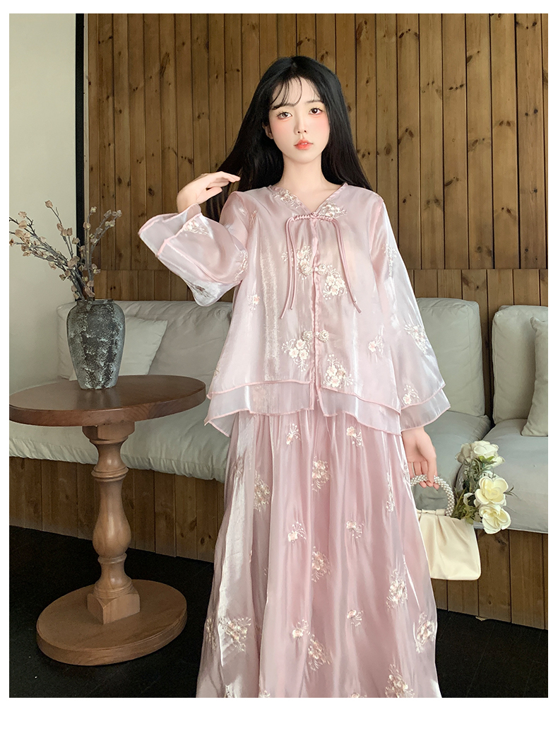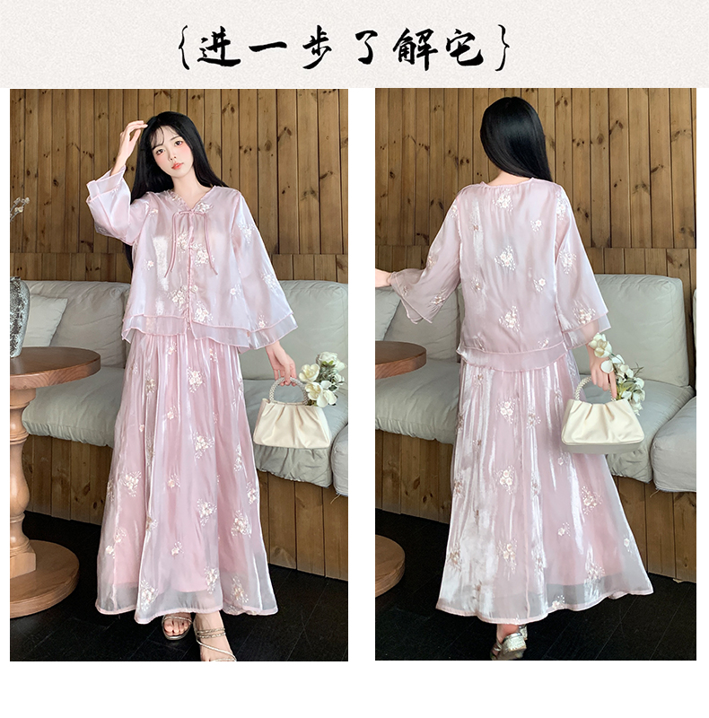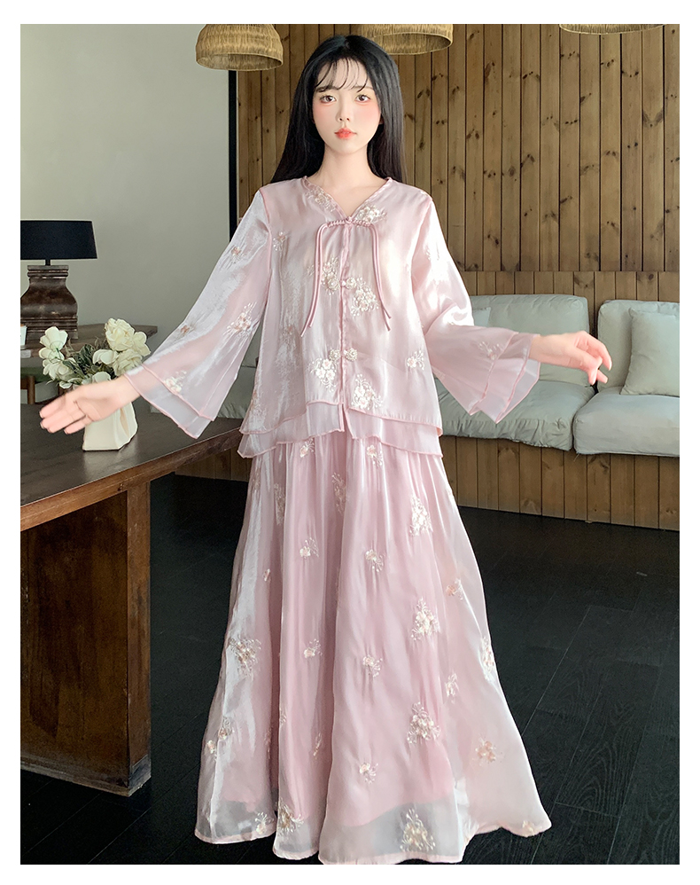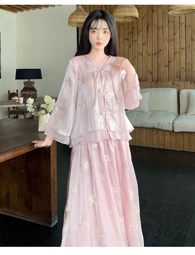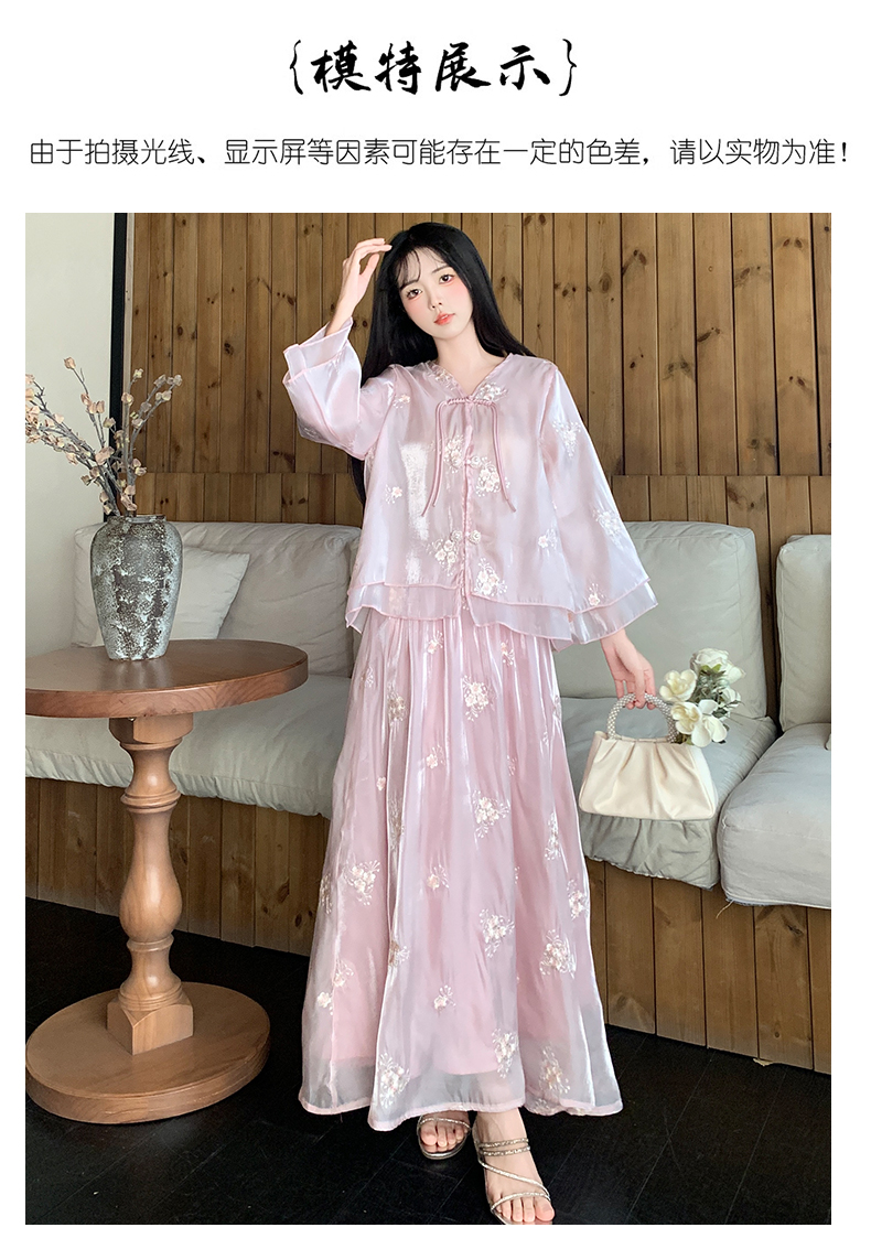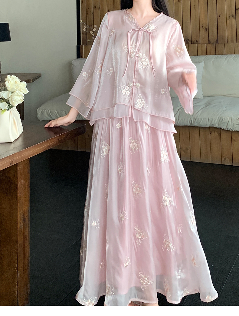RY1701# 大码女装新中式气质国风上衣重工刺绣上衣+半身裙两件套遮肚显瘦