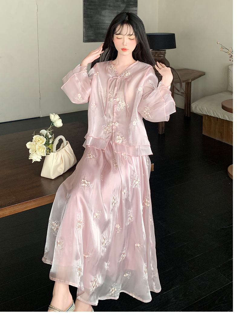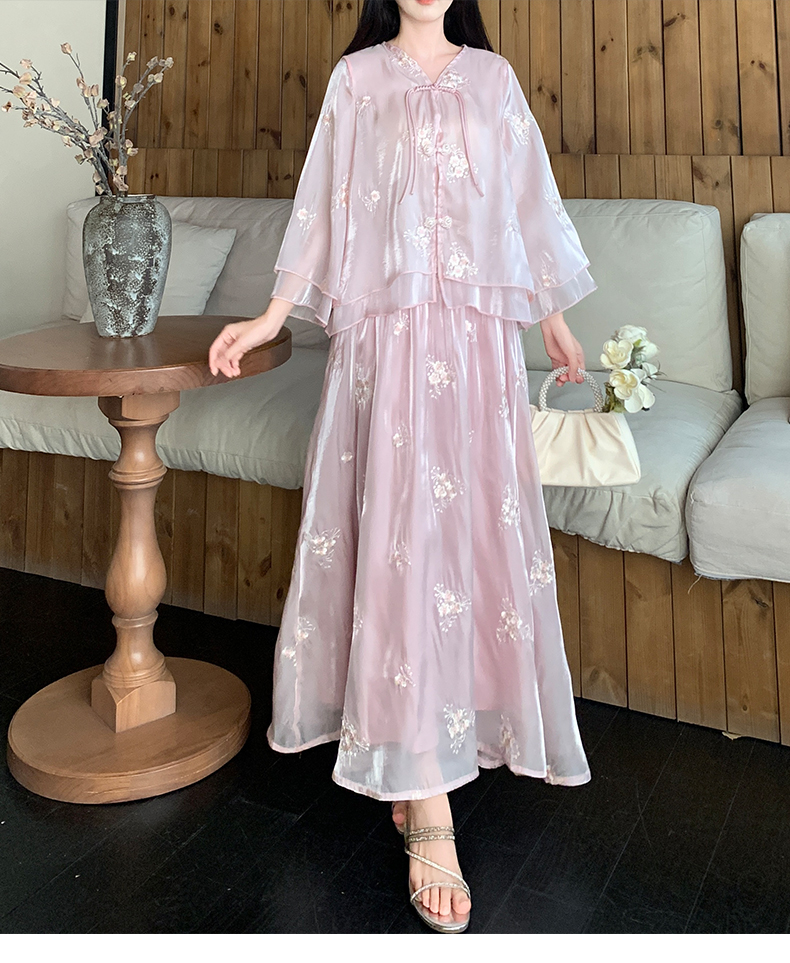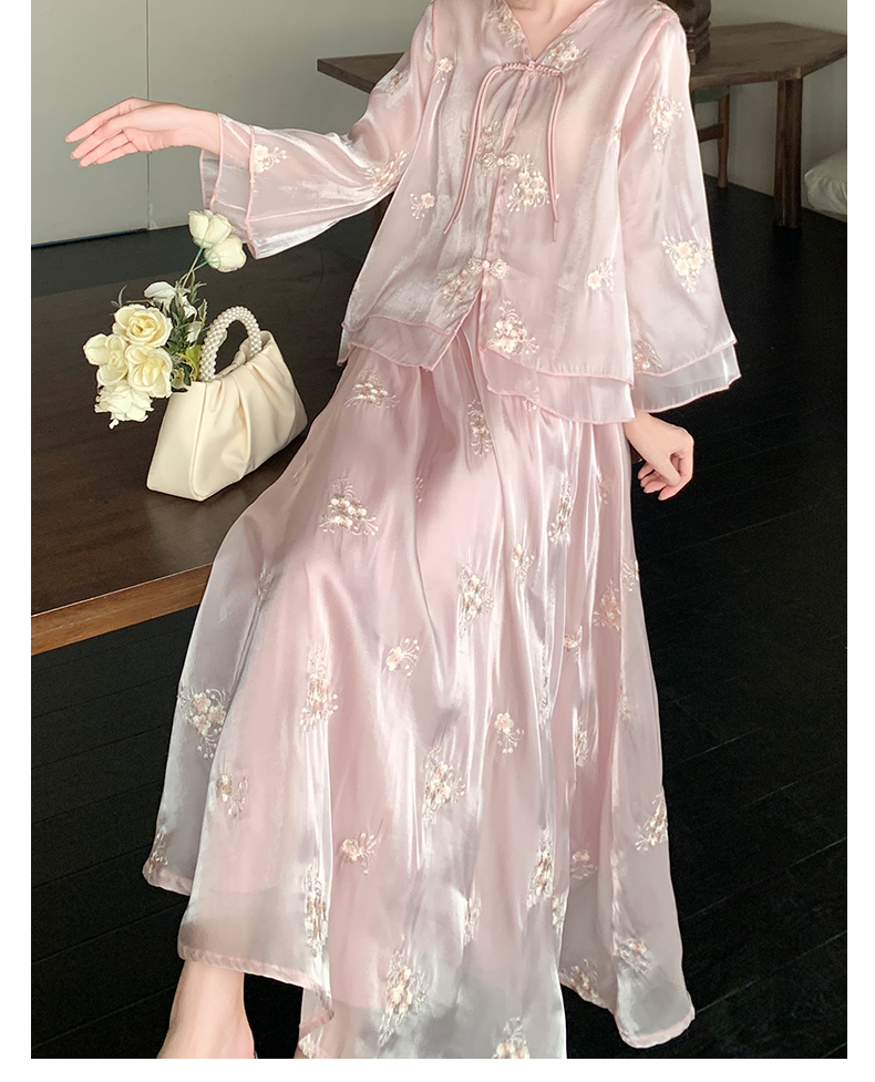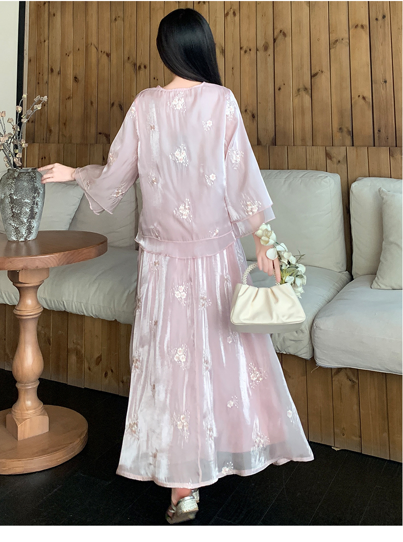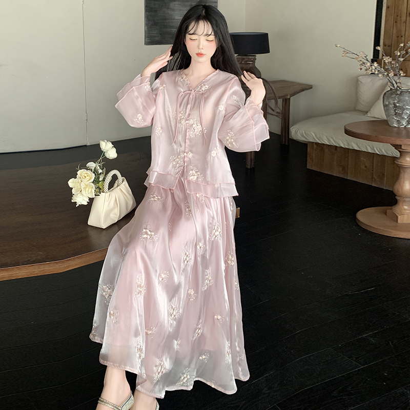 RY1701# 大码女装新中式气质国风上衣重工刺绣上衣+半身裙两件套遮肚显瘦