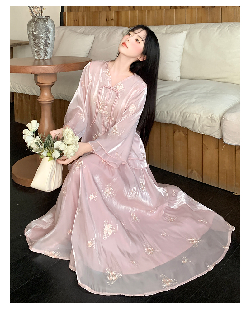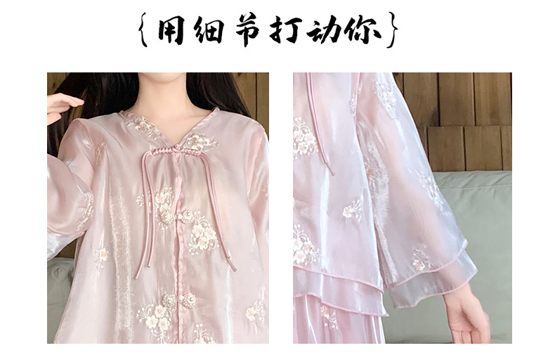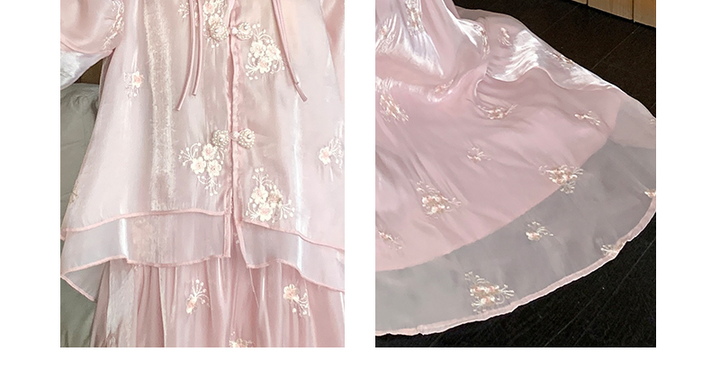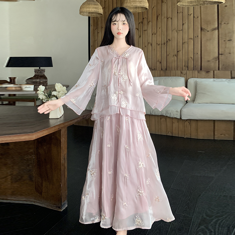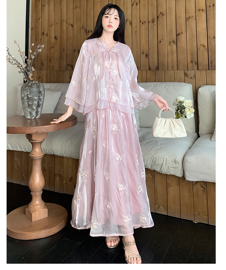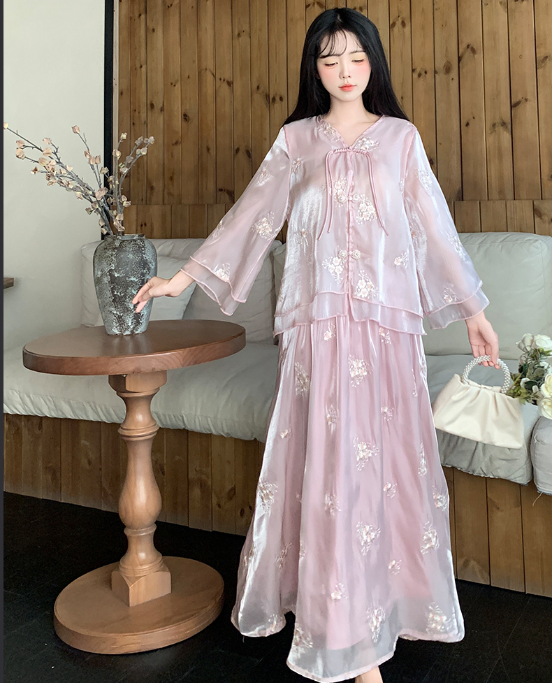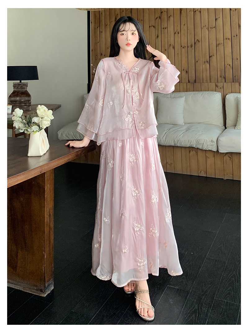 RY1701# 大码女装新中式气质国风上衣重工刺绣上衣+半身裙两件套遮肚显瘦