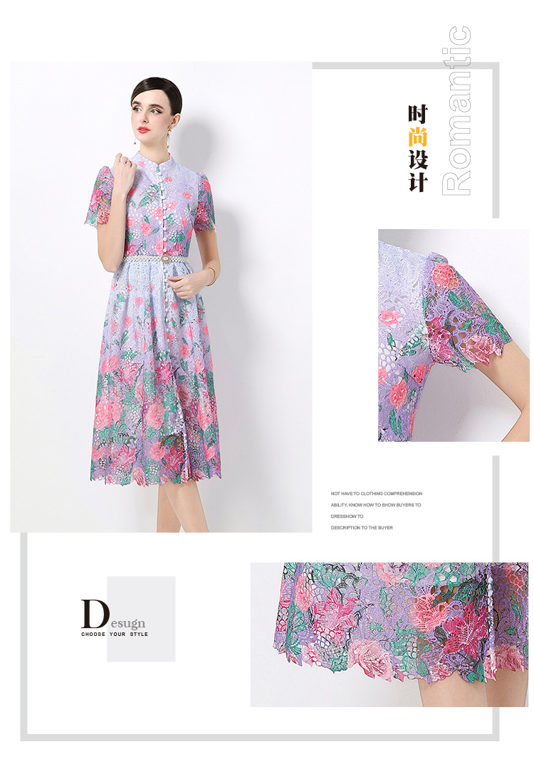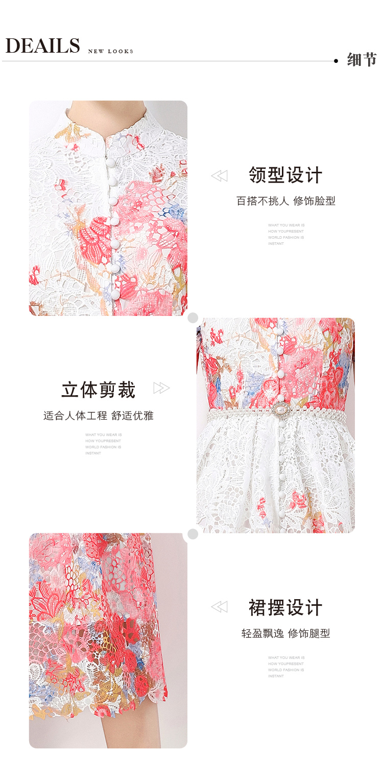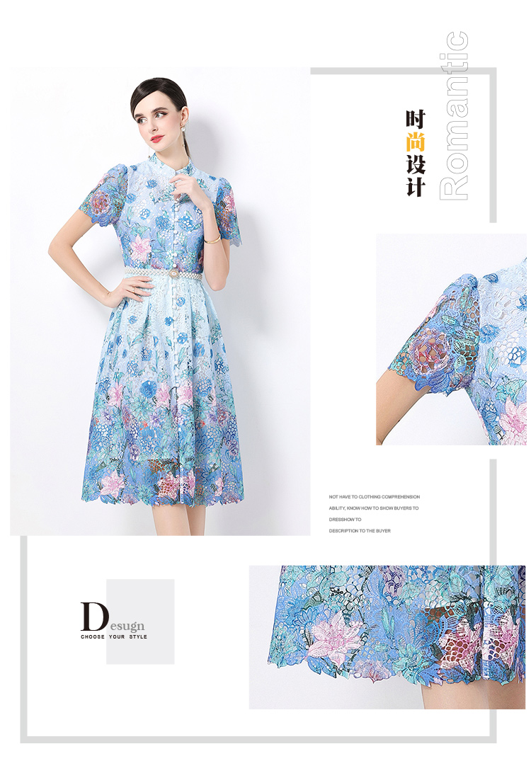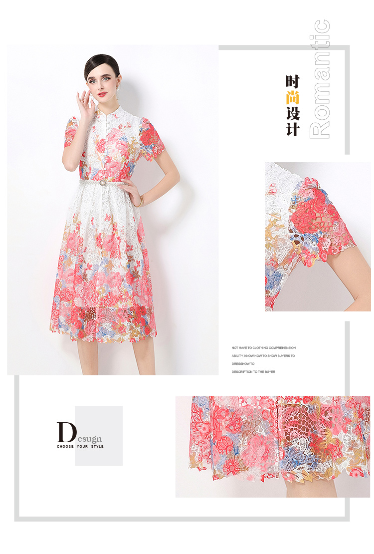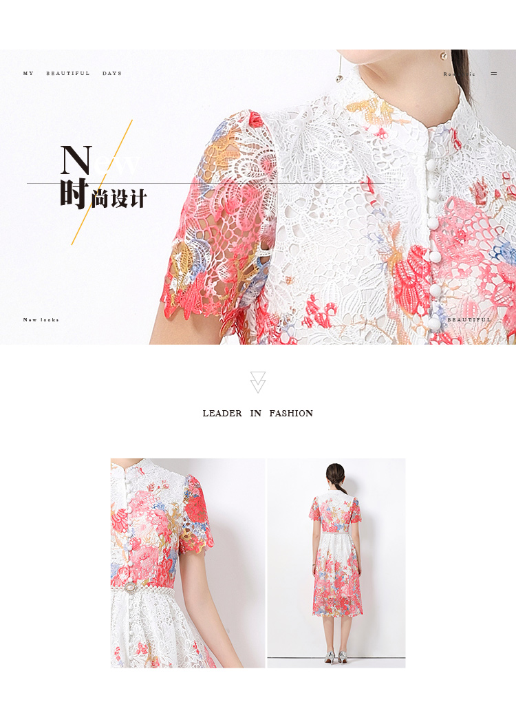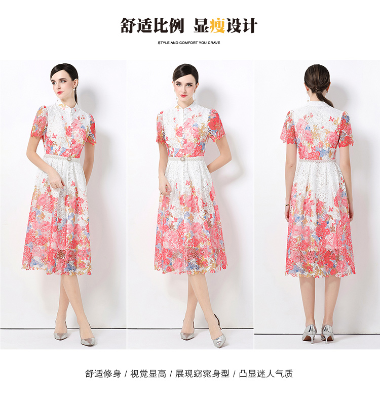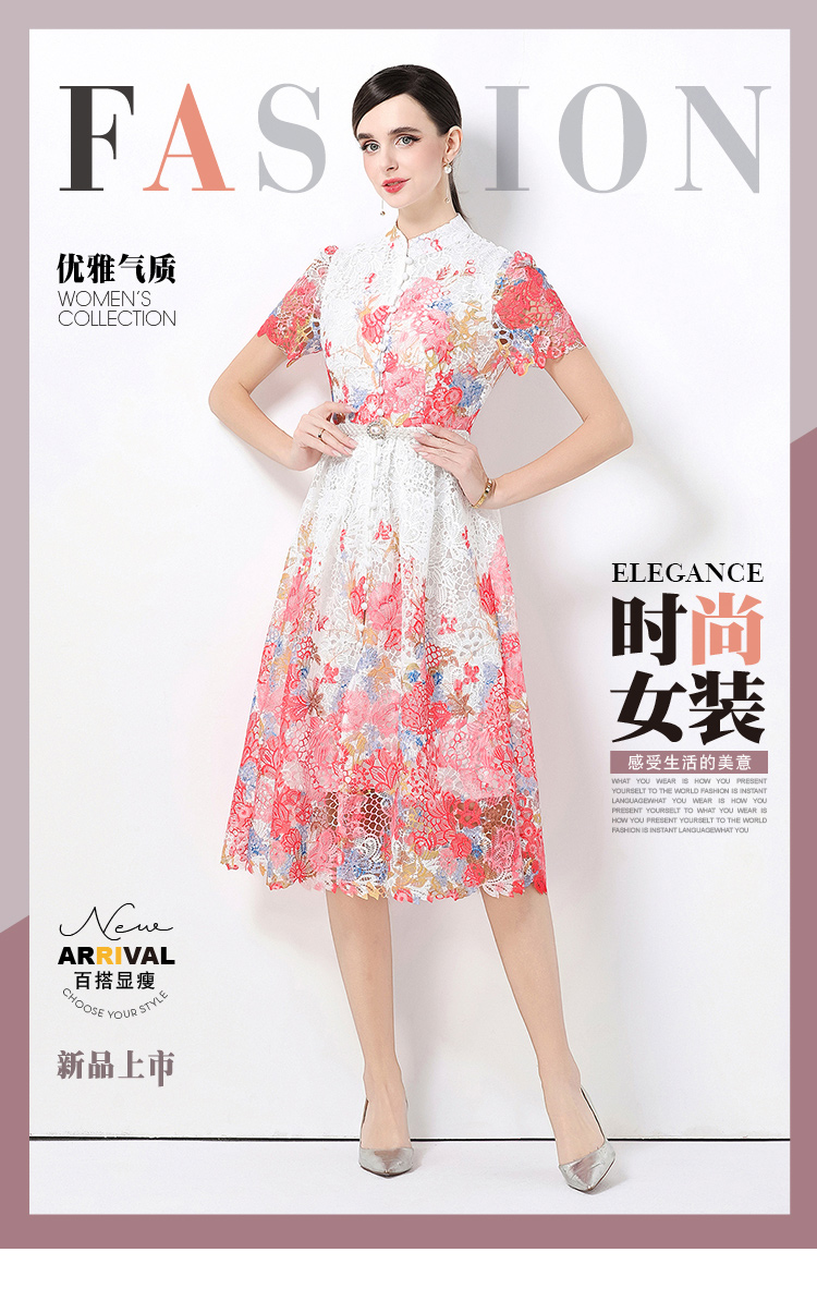RY1708# 实拍原创短袖感时尚显瘦镂空水溶蕾丝定位中长款连衣裙