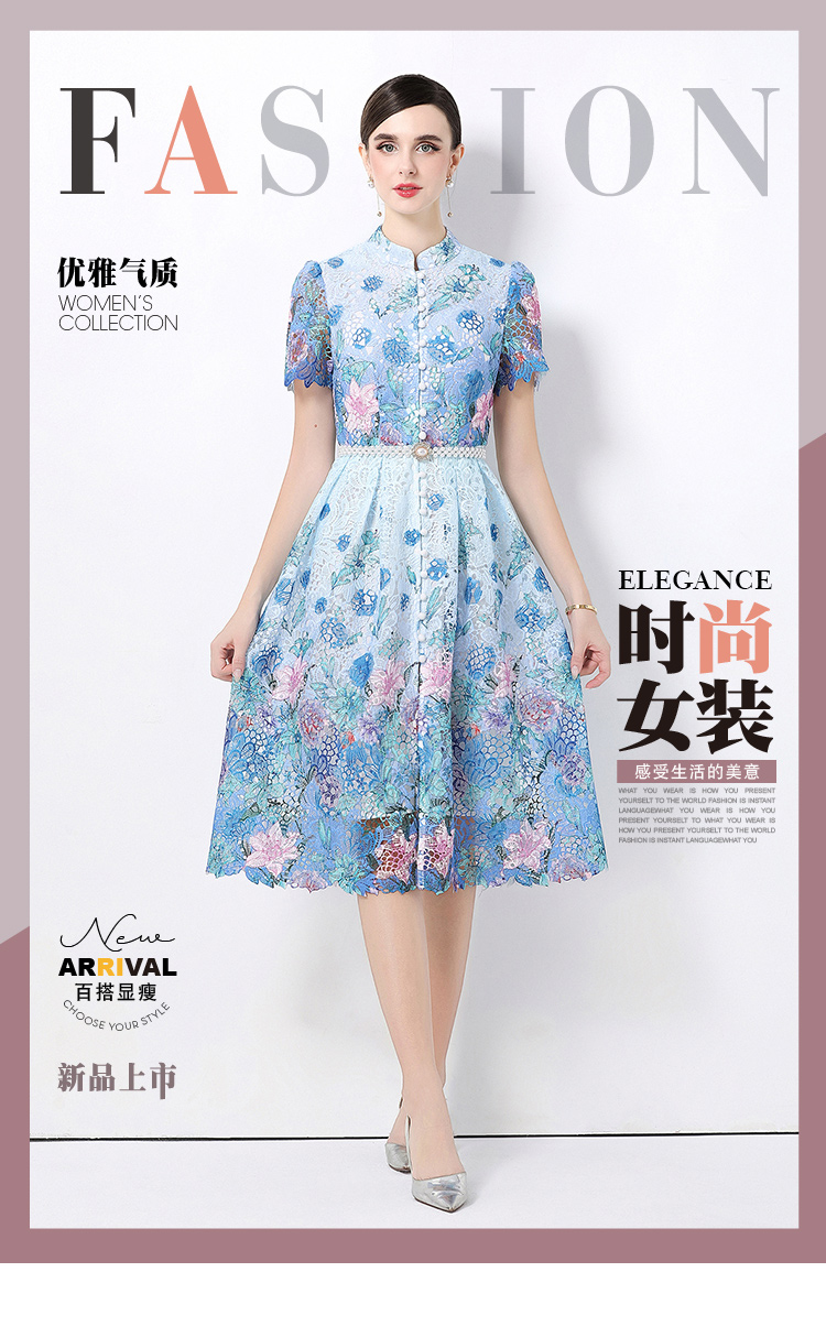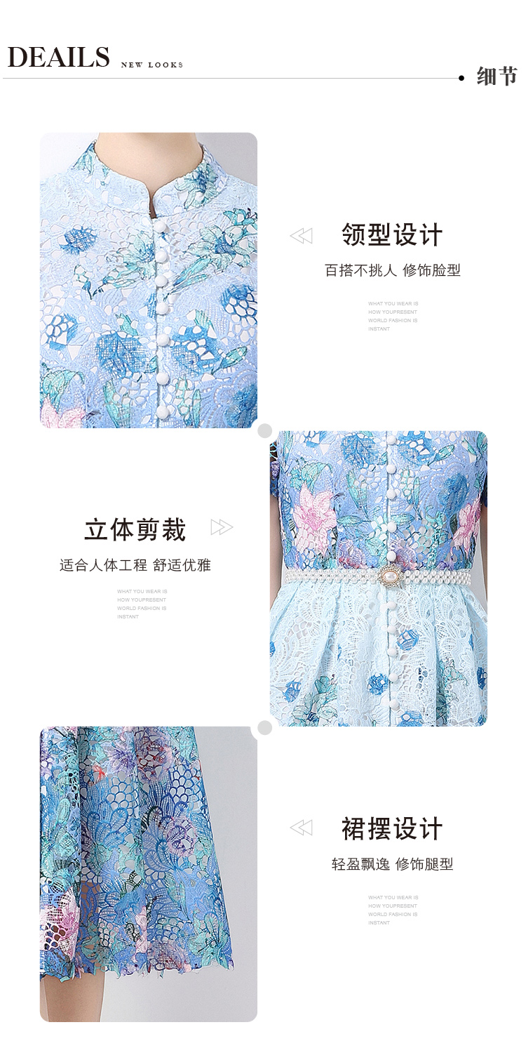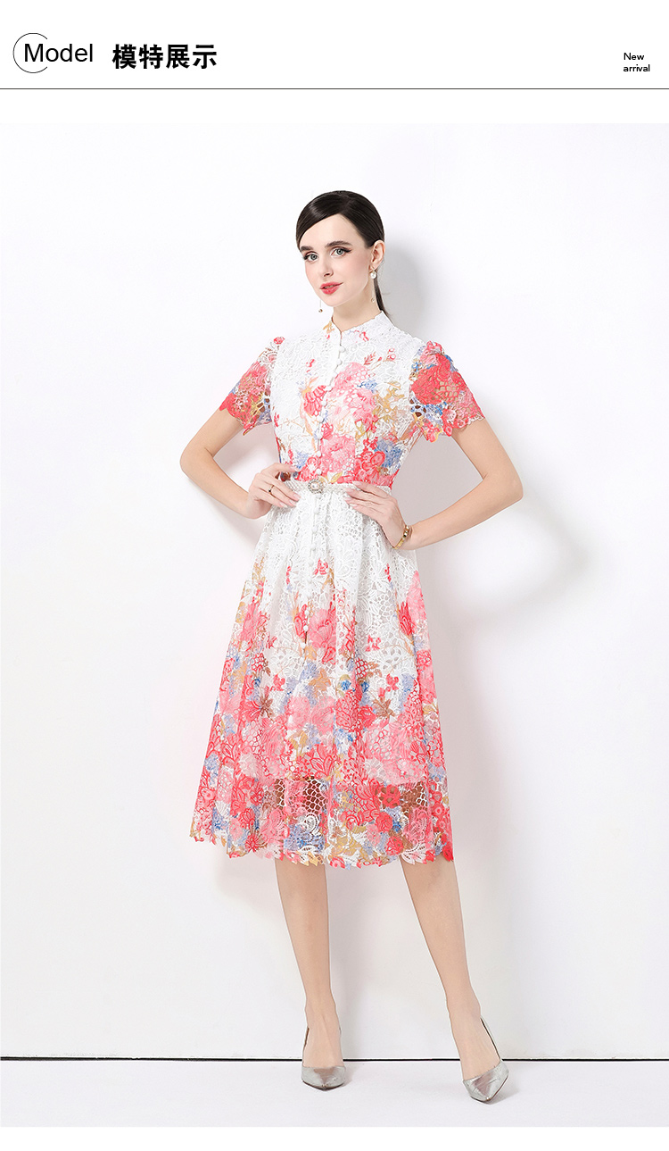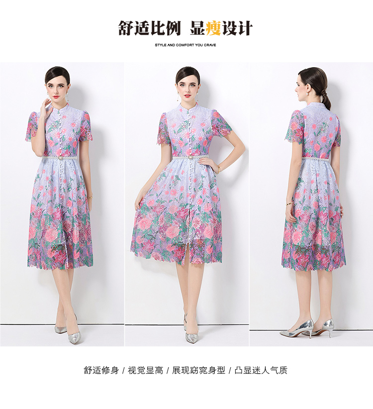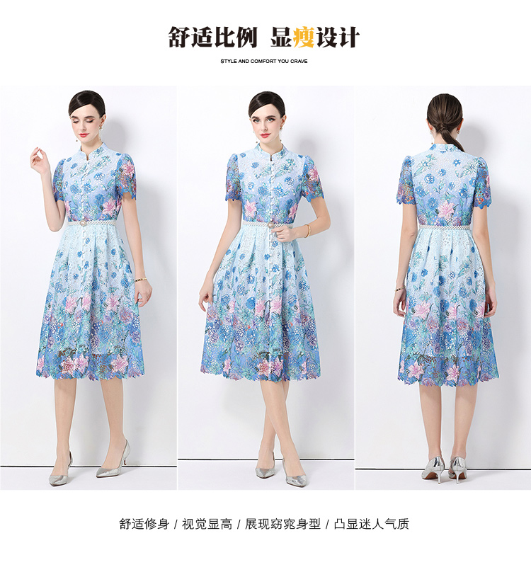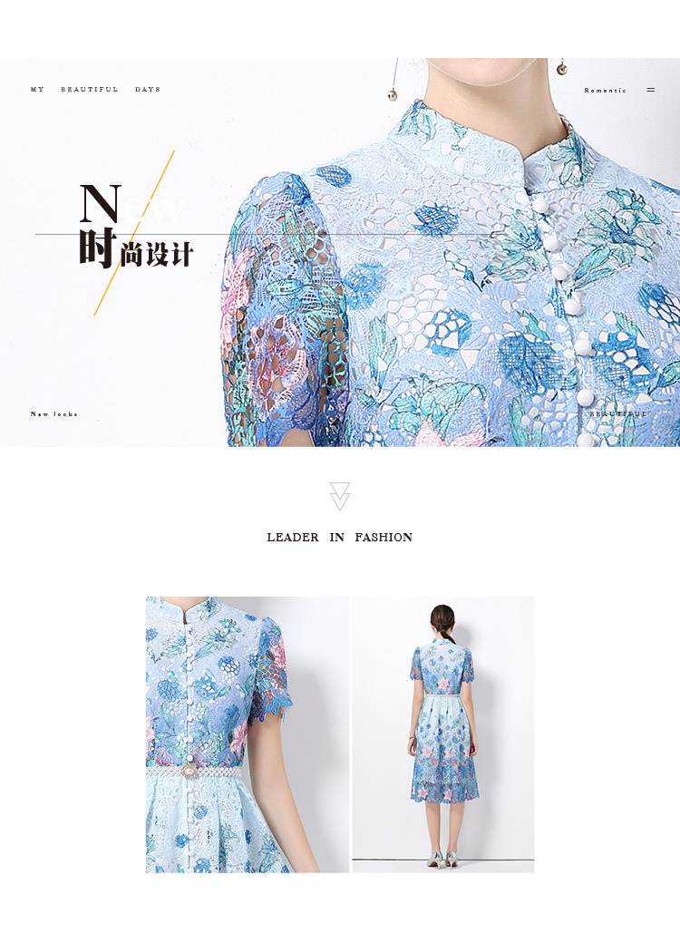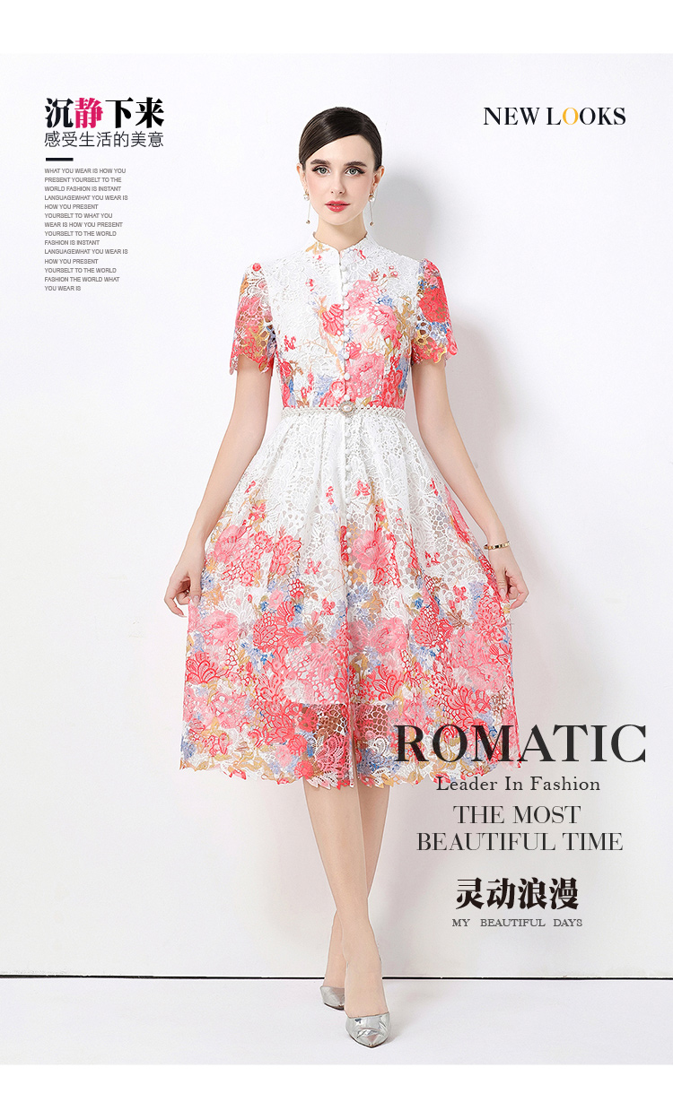 RY1708# 实拍原创短袖感时尚显瘦镂空水溶蕾丝定位中长款连衣裙