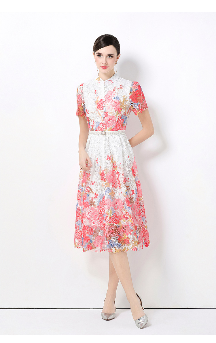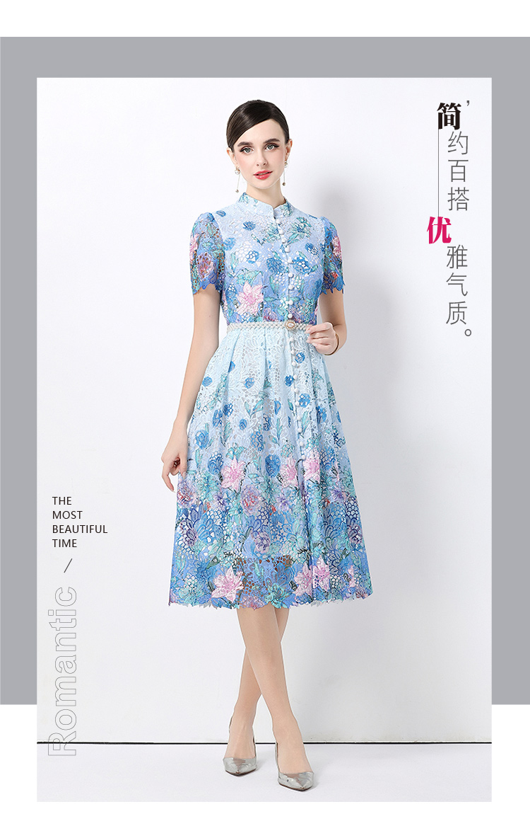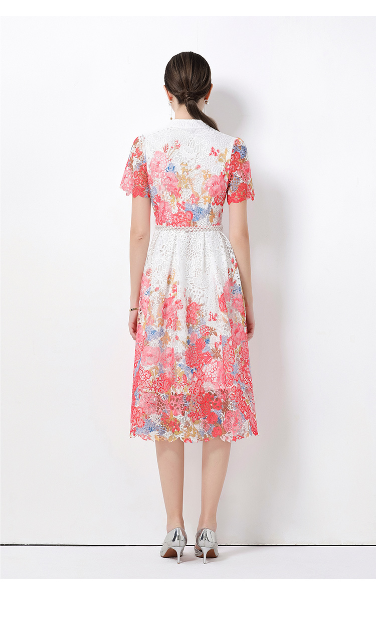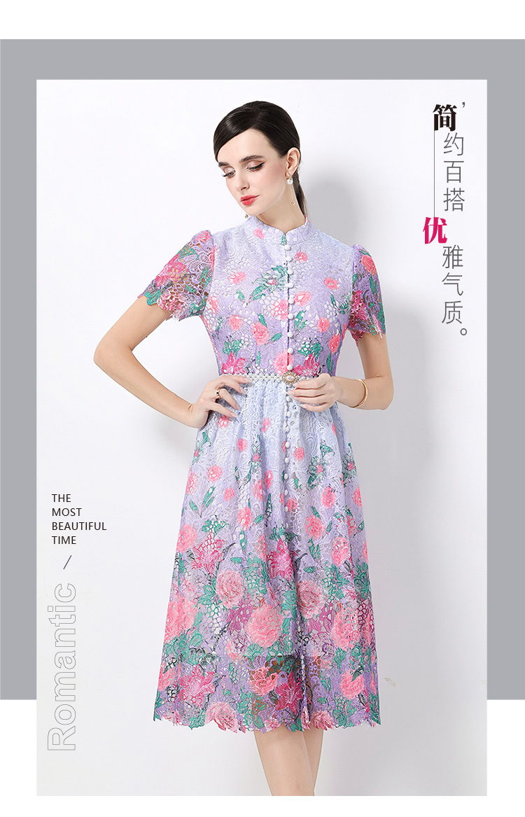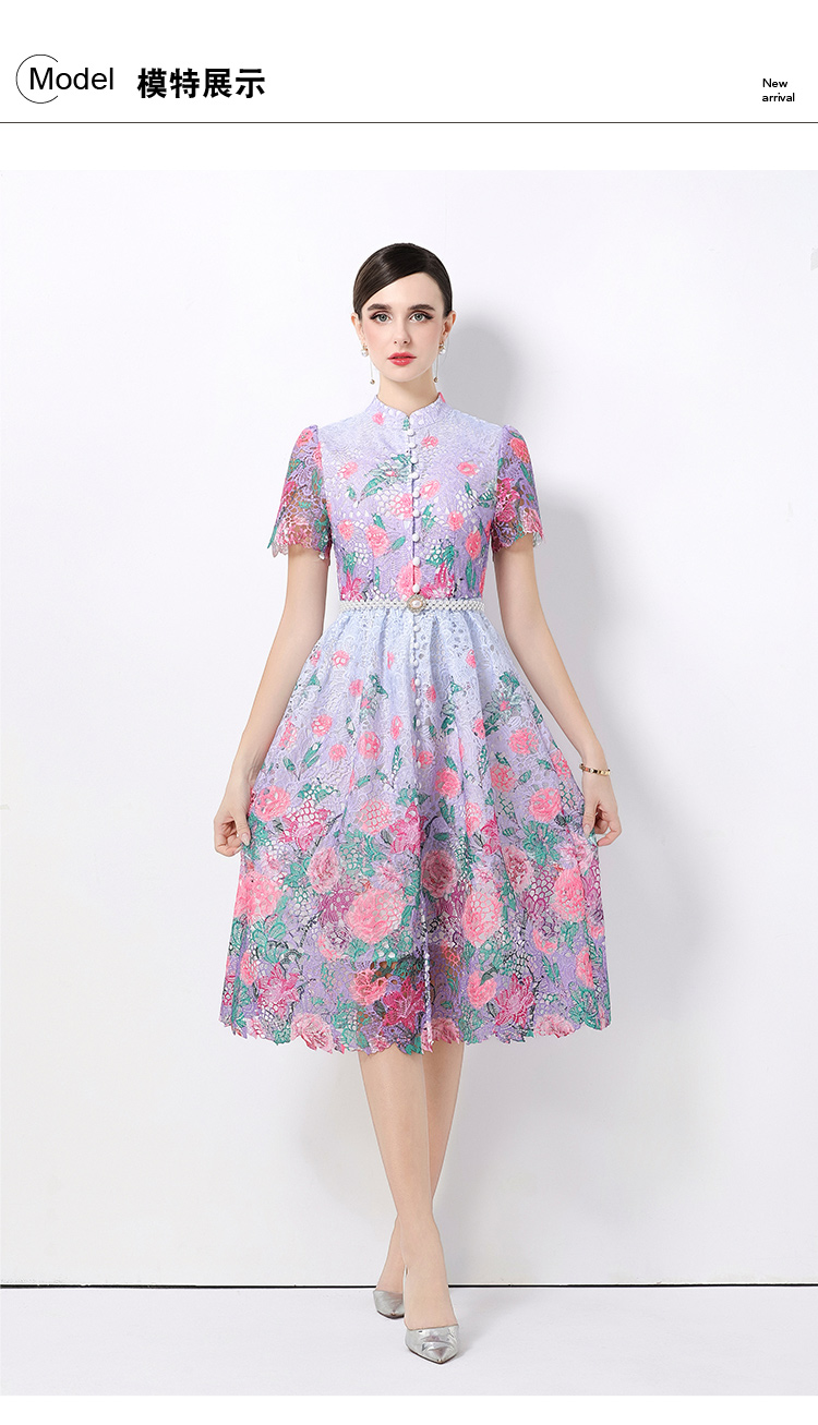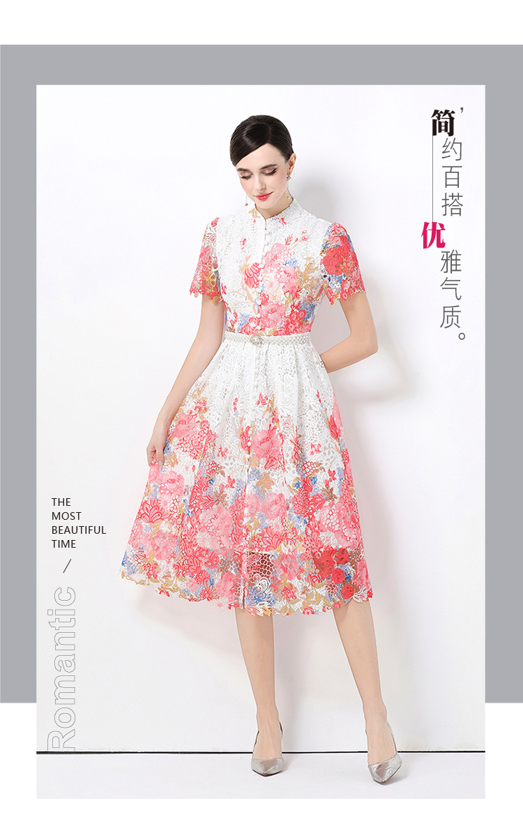 RY1708# 实拍原创短袖感时尚显瘦镂空水溶蕾丝定位中长款连衣裙