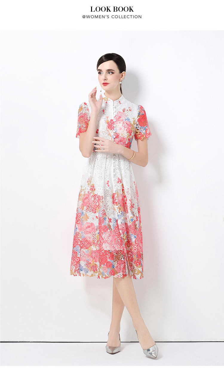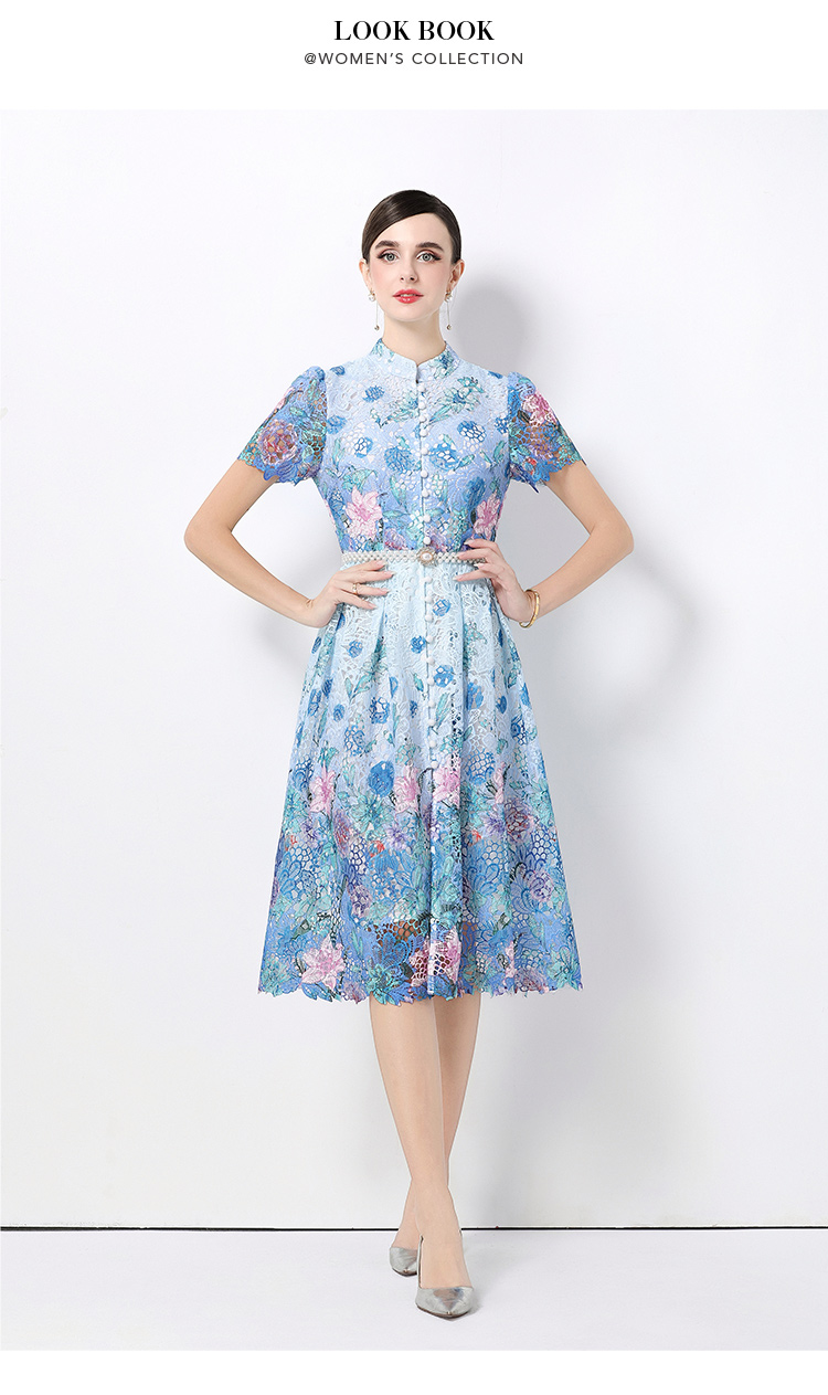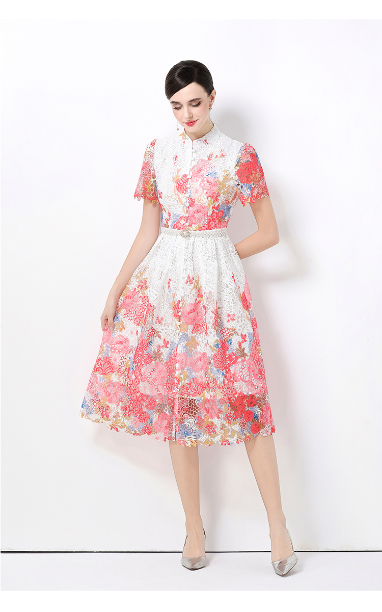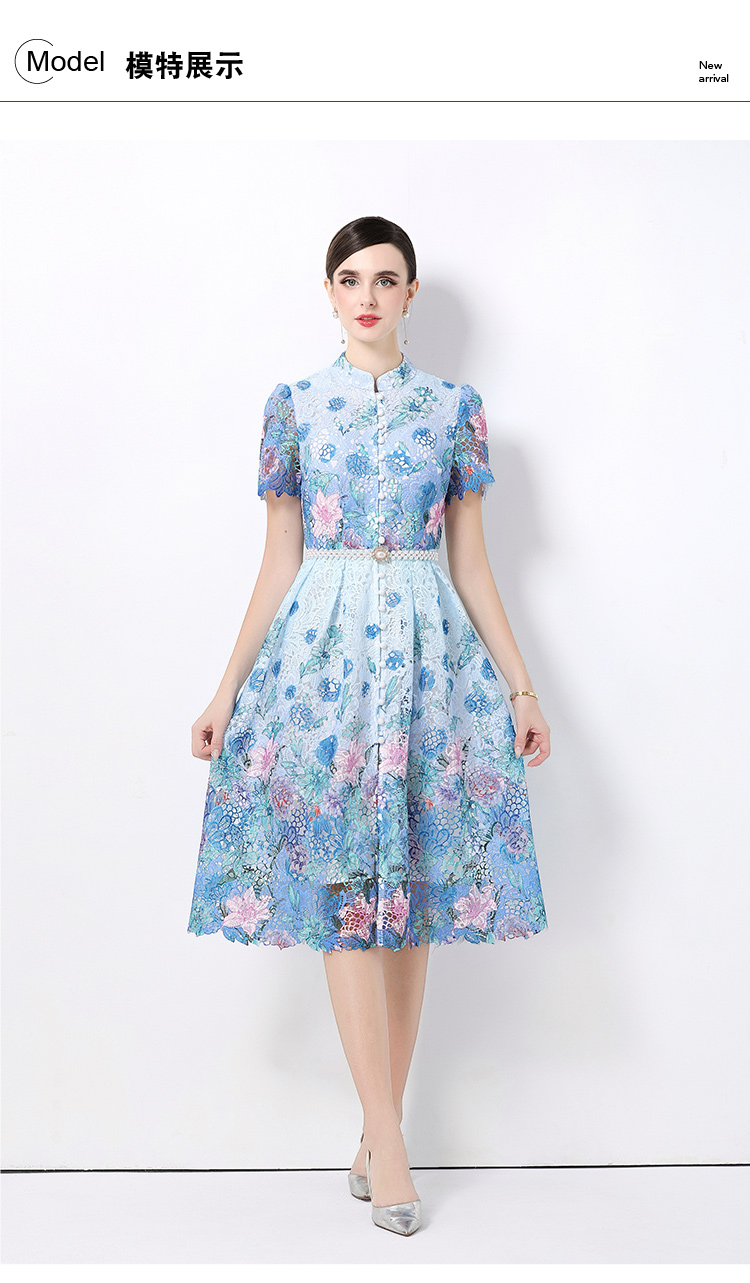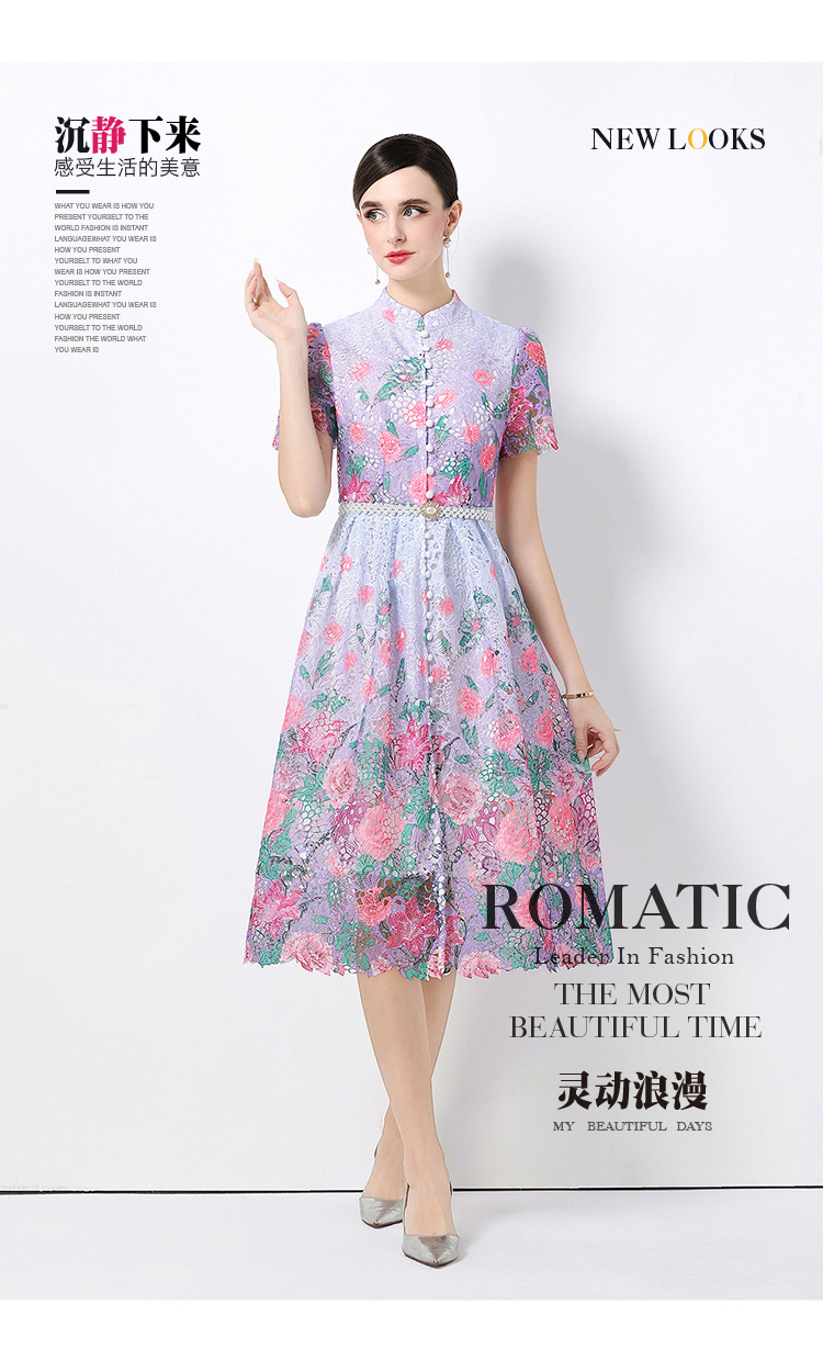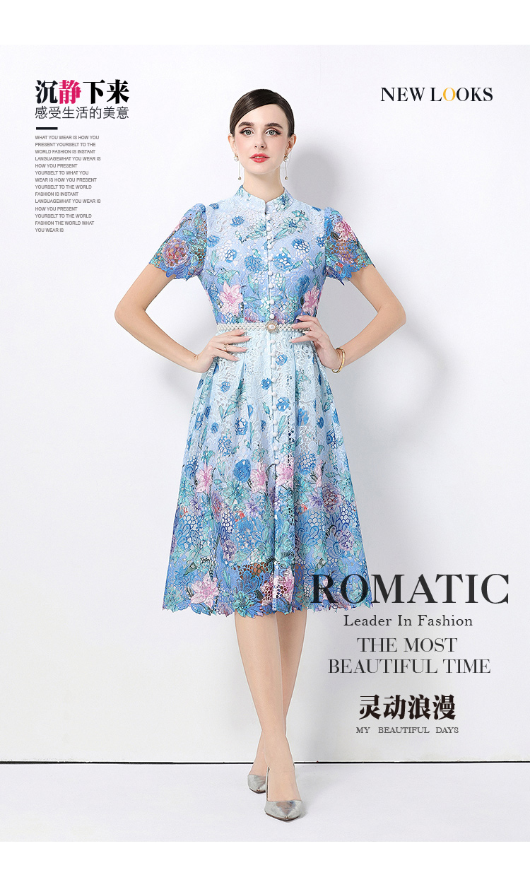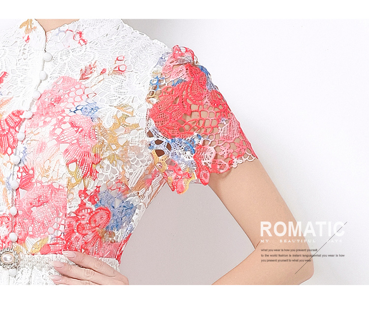 RY1708# 实拍原创短袖感时尚显瘦镂空水溶蕾丝定位中长款连衣裙