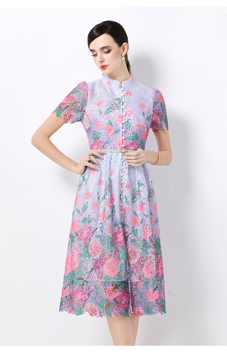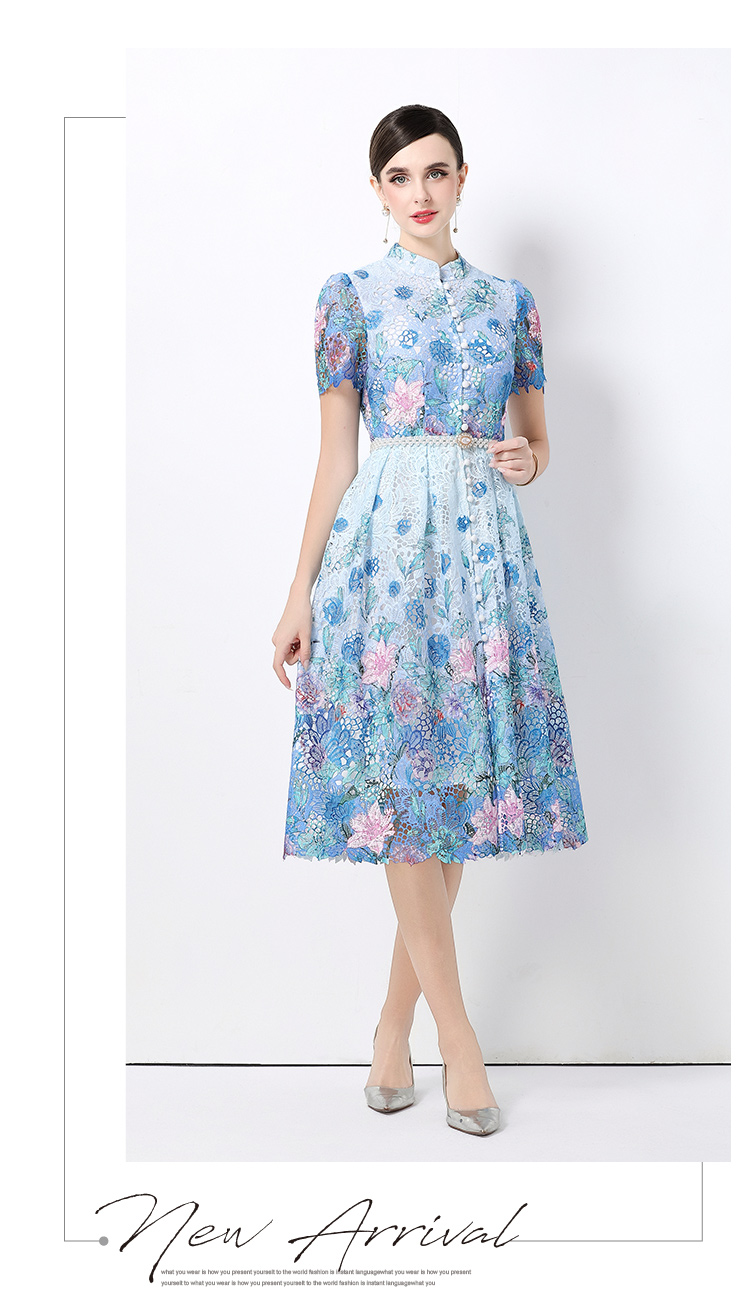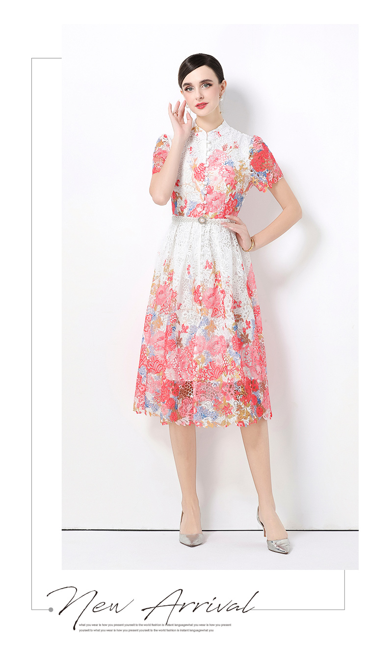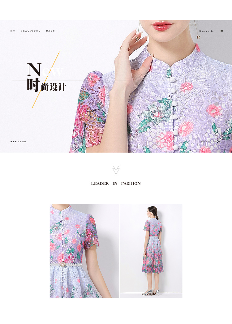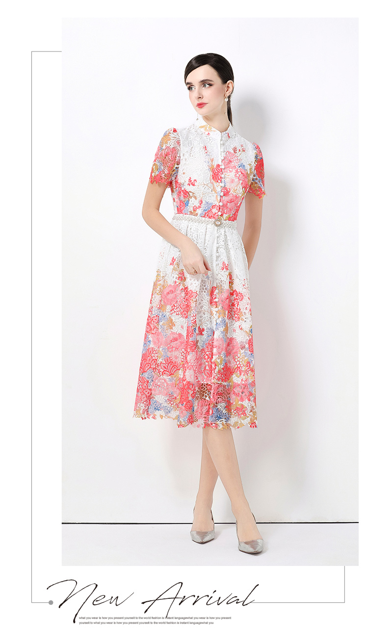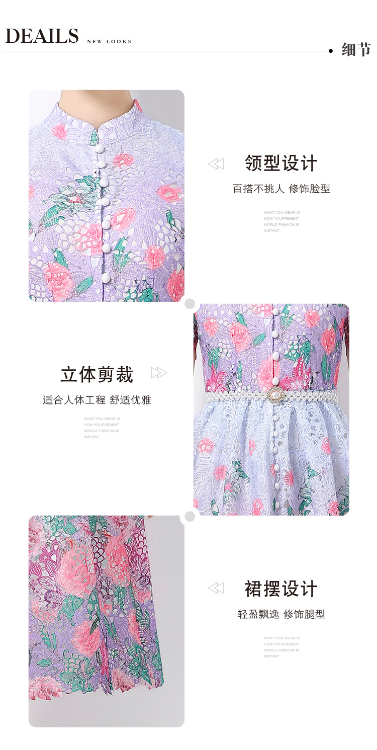 RY1708# 实拍原创短袖感时尚显瘦镂空水溶蕾丝定位中长款连衣裙