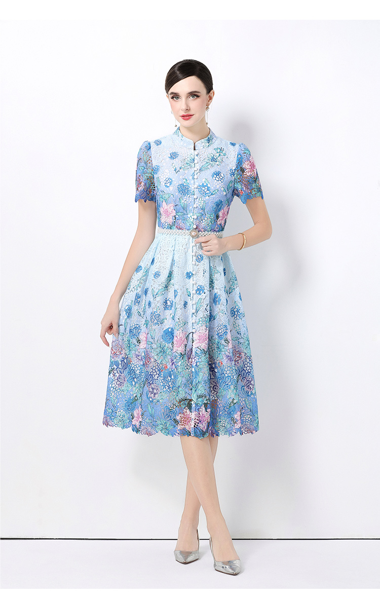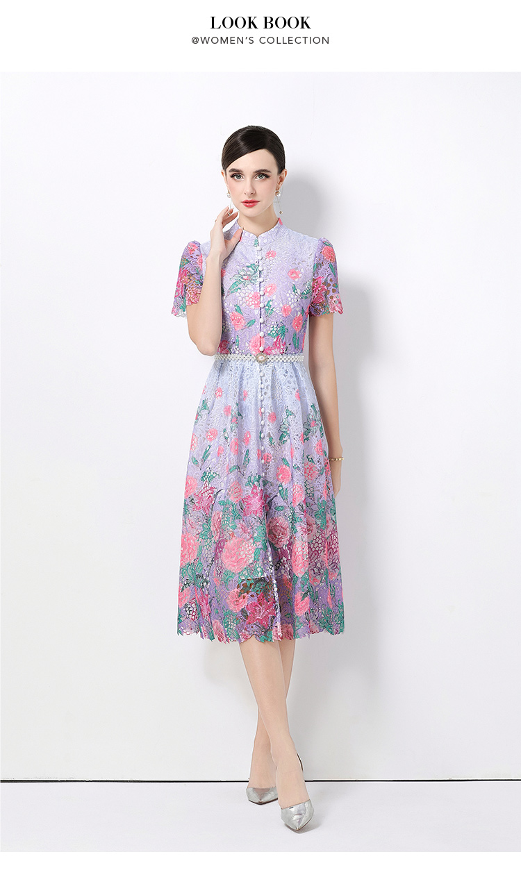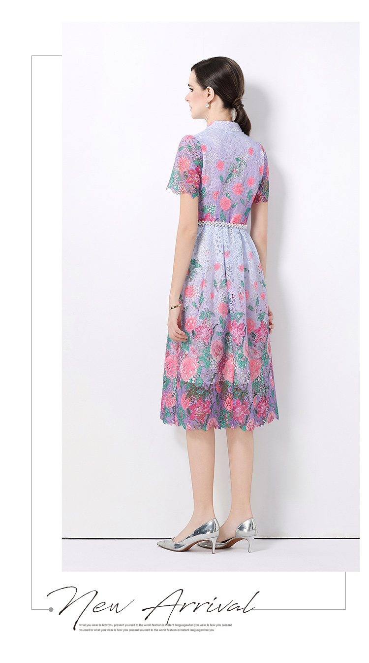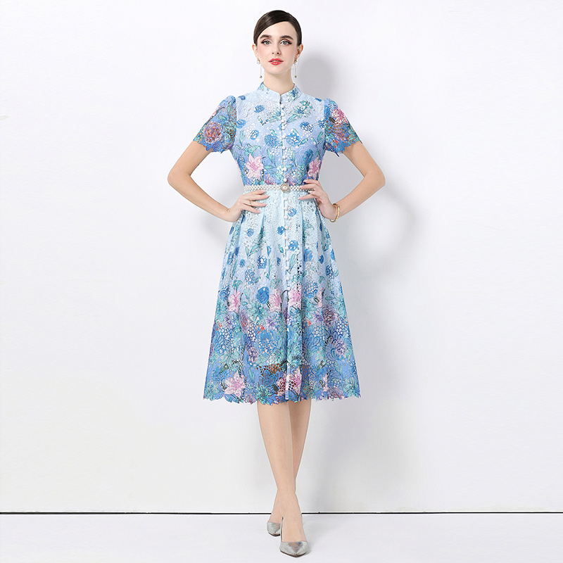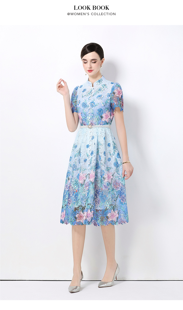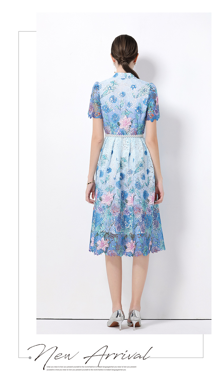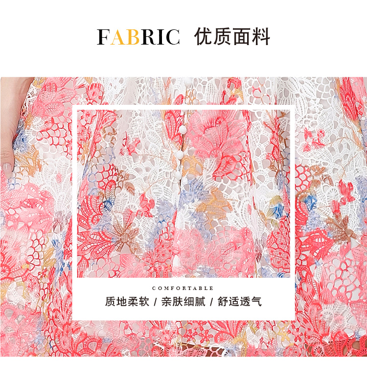 RY1708# 实拍原创短袖感时尚显瘦镂空水溶蕾丝定位中长款连衣裙