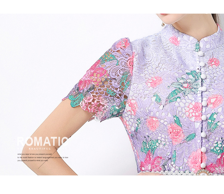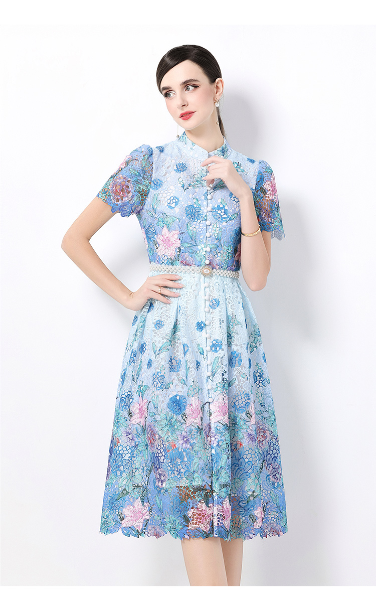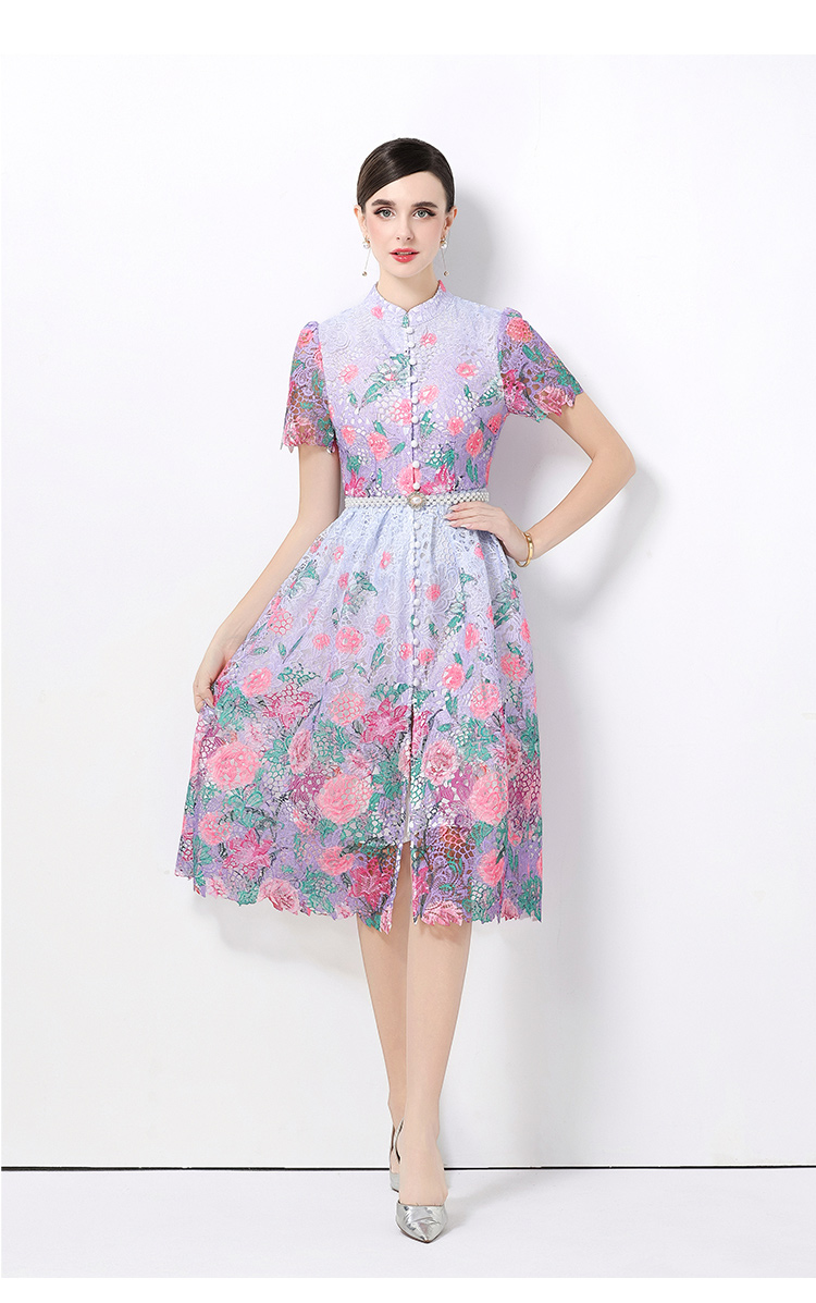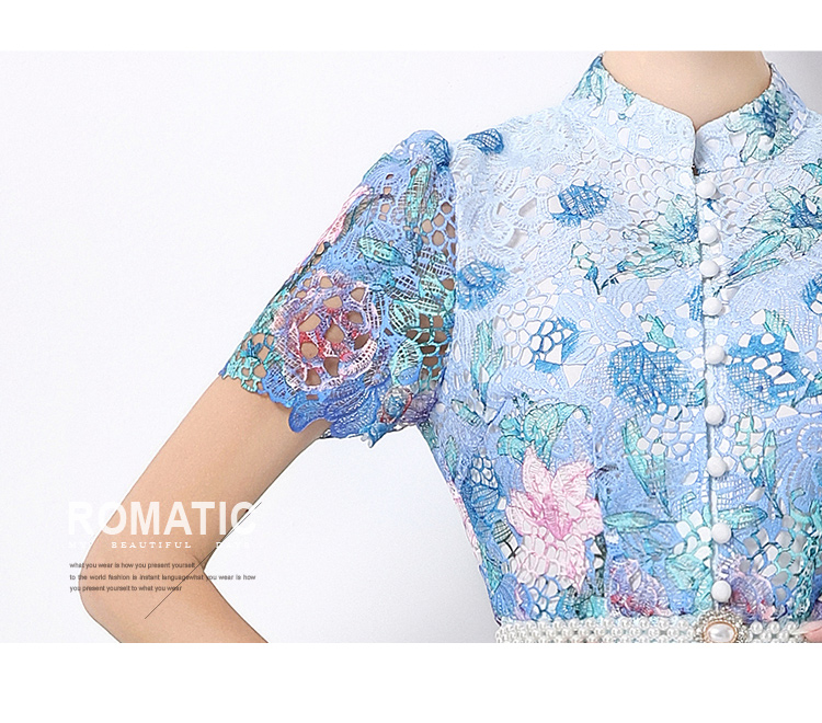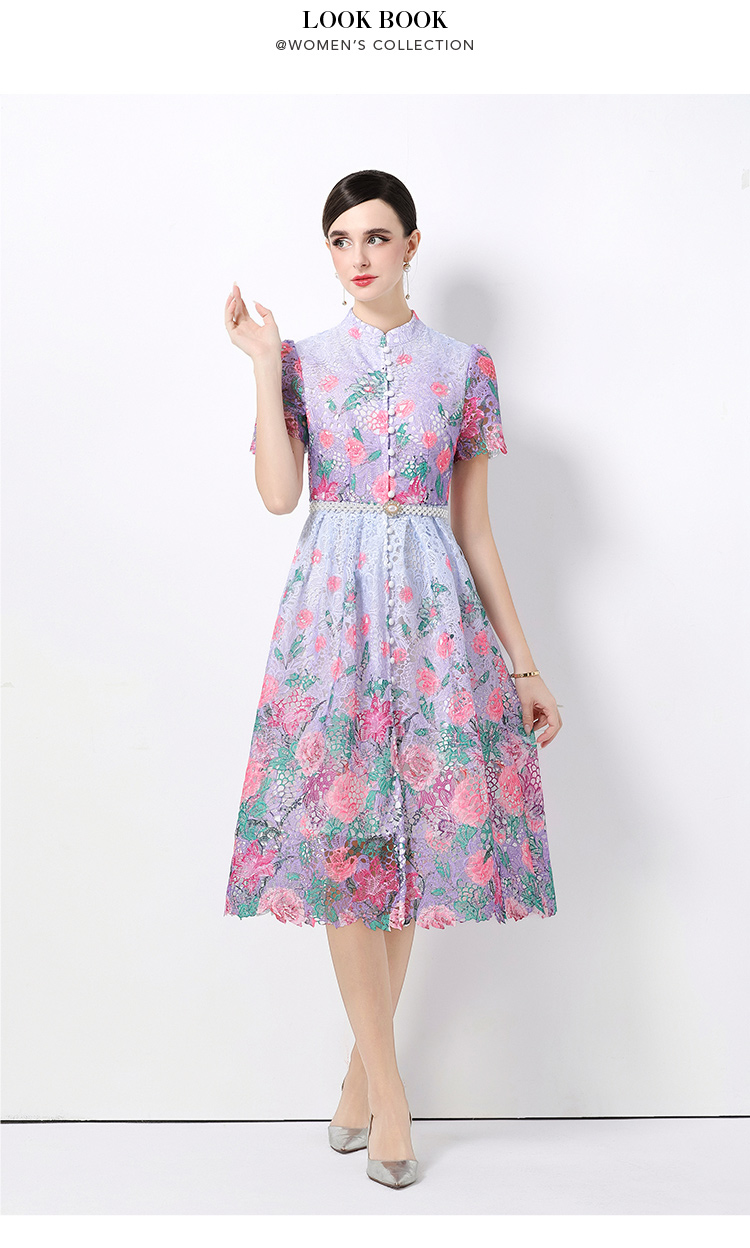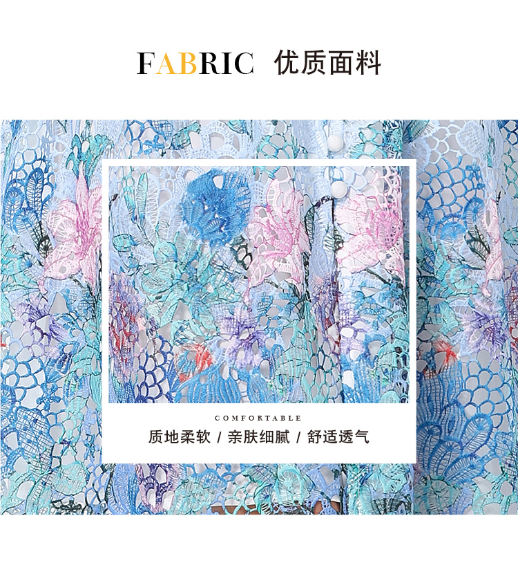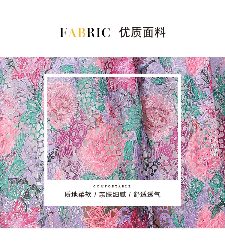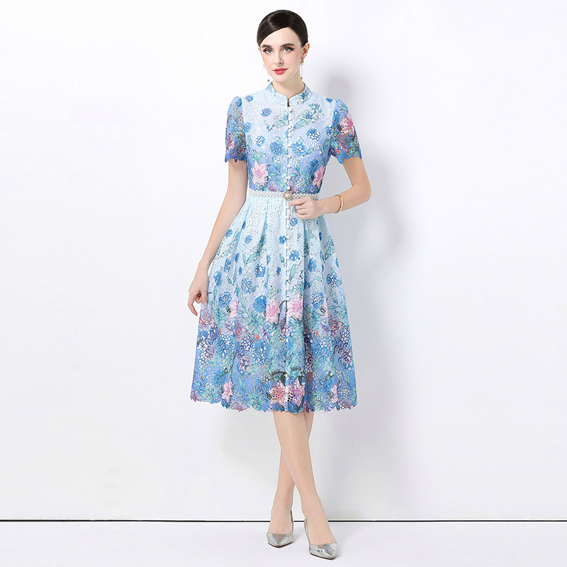 RY1708# 实拍原创短袖感时尚显瘦镂空水溶蕾丝定位中长款连衣裙