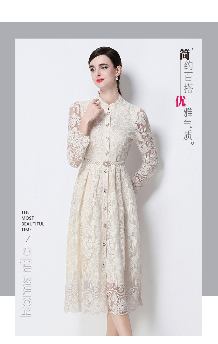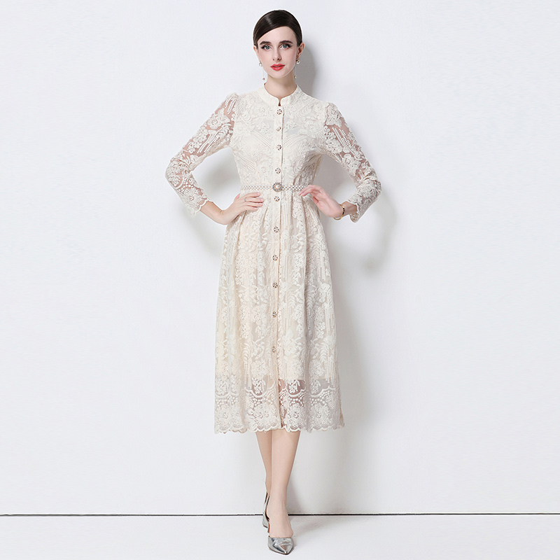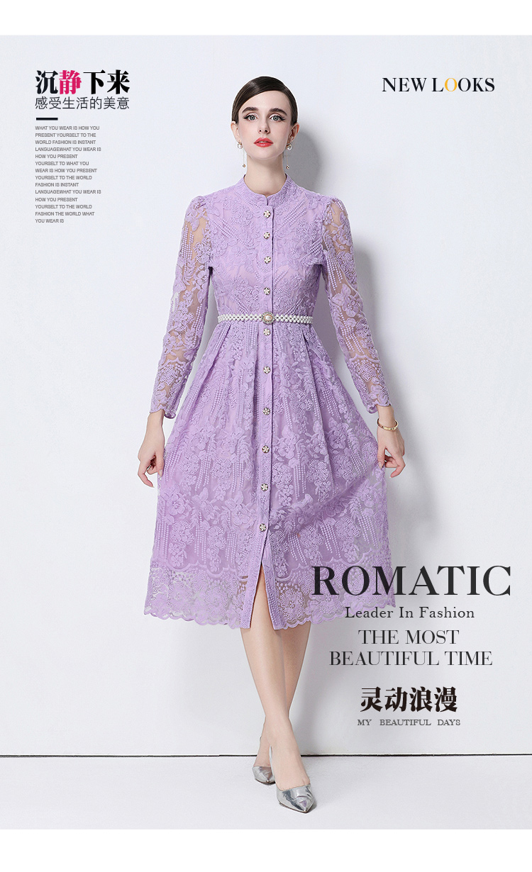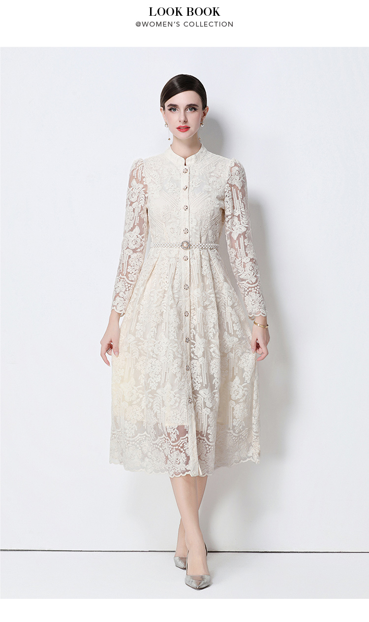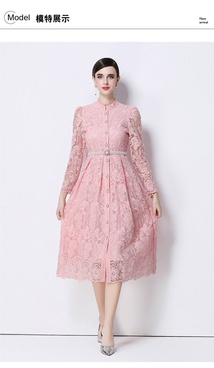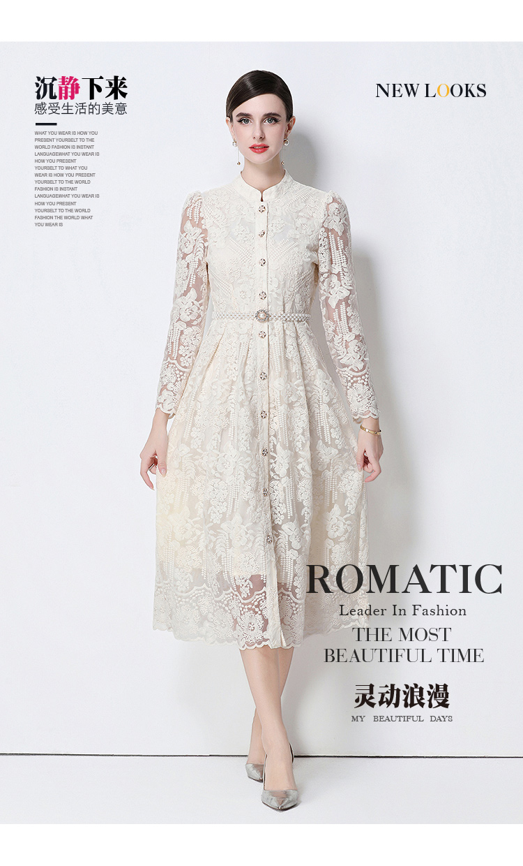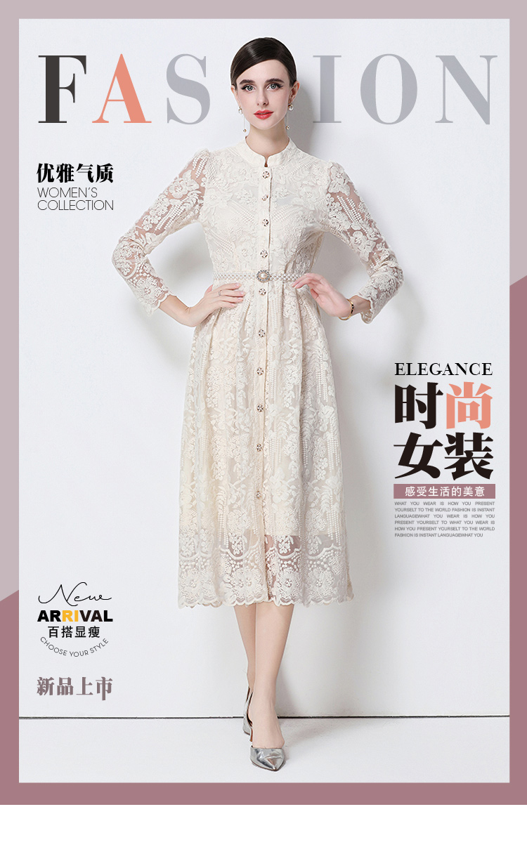 RY1712# 实拍原创轻奢高级感时尚显瘦刺绣长袖中长款连衣裙