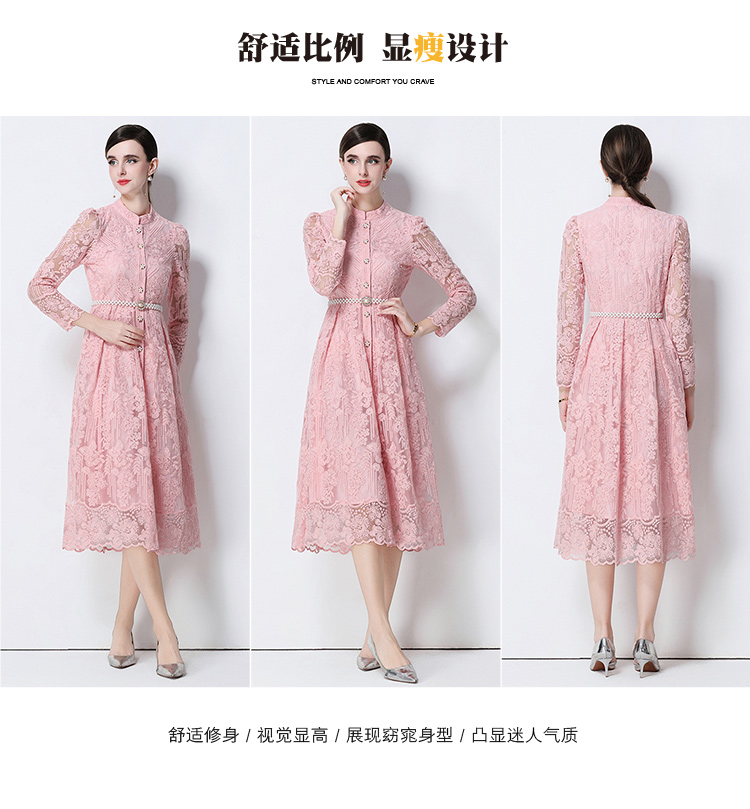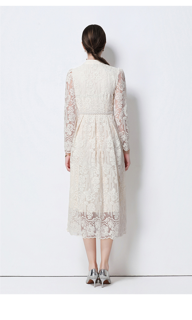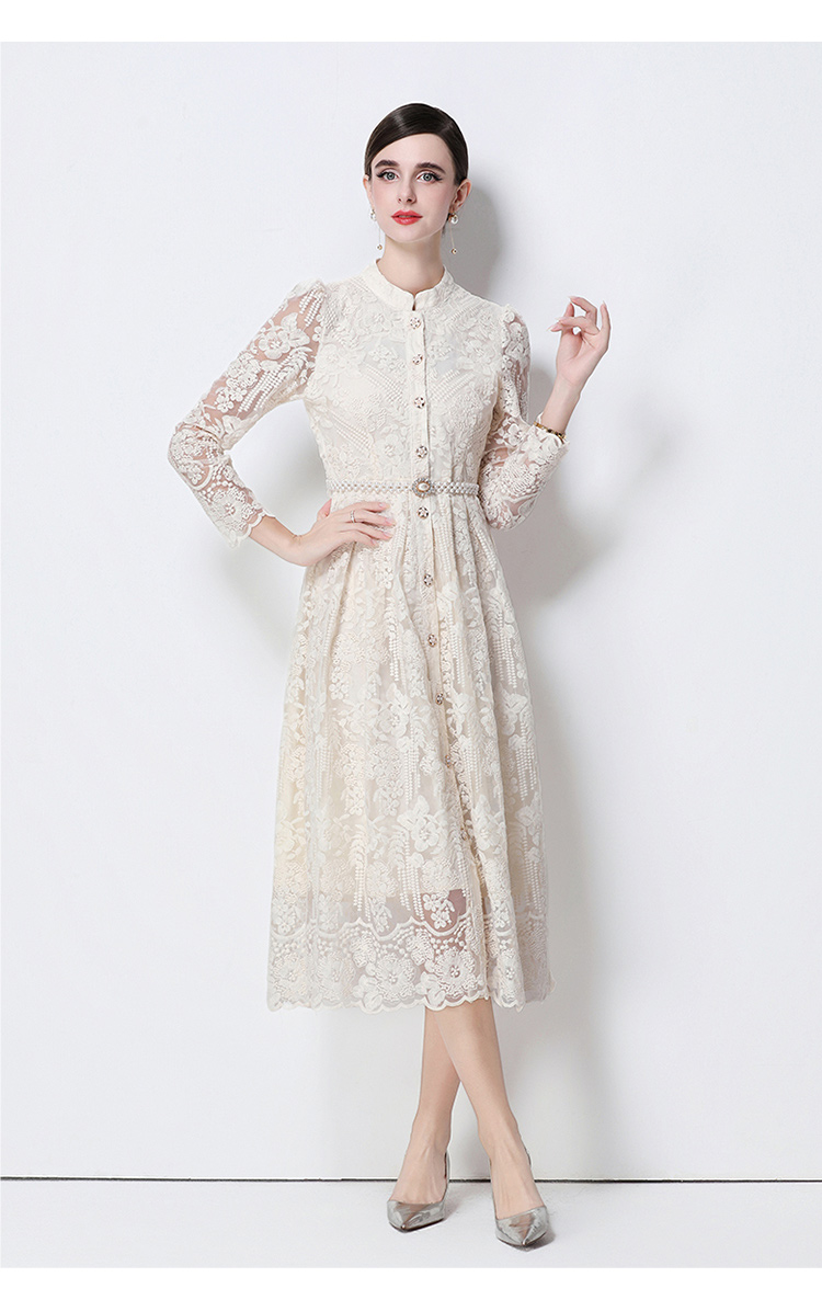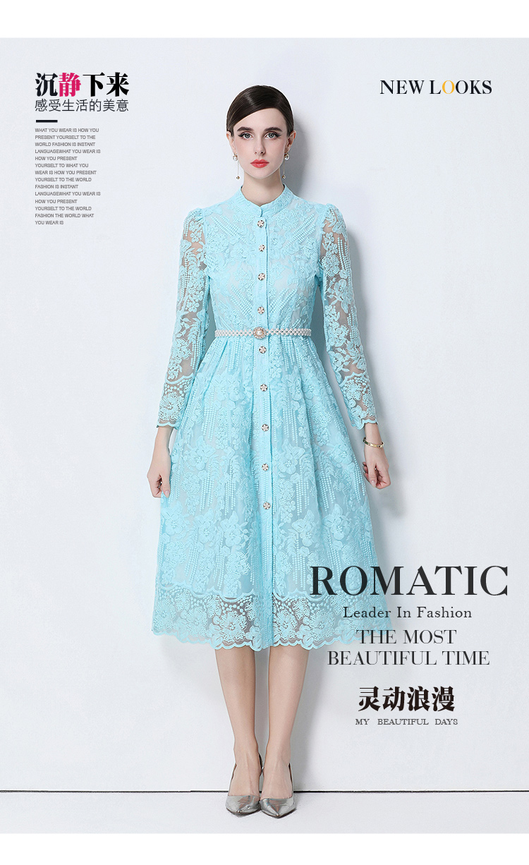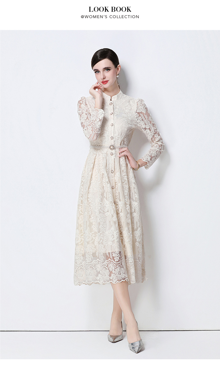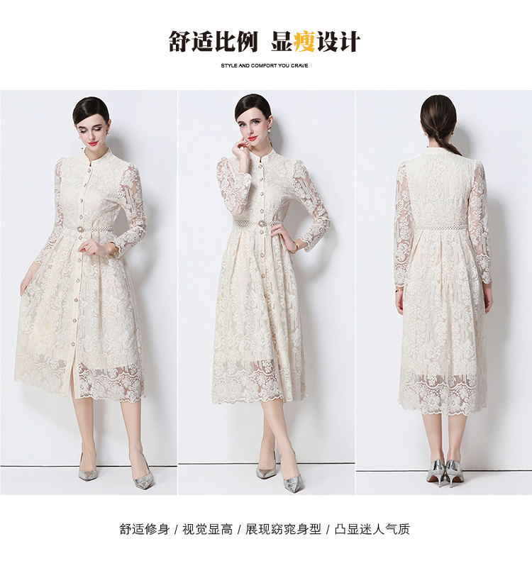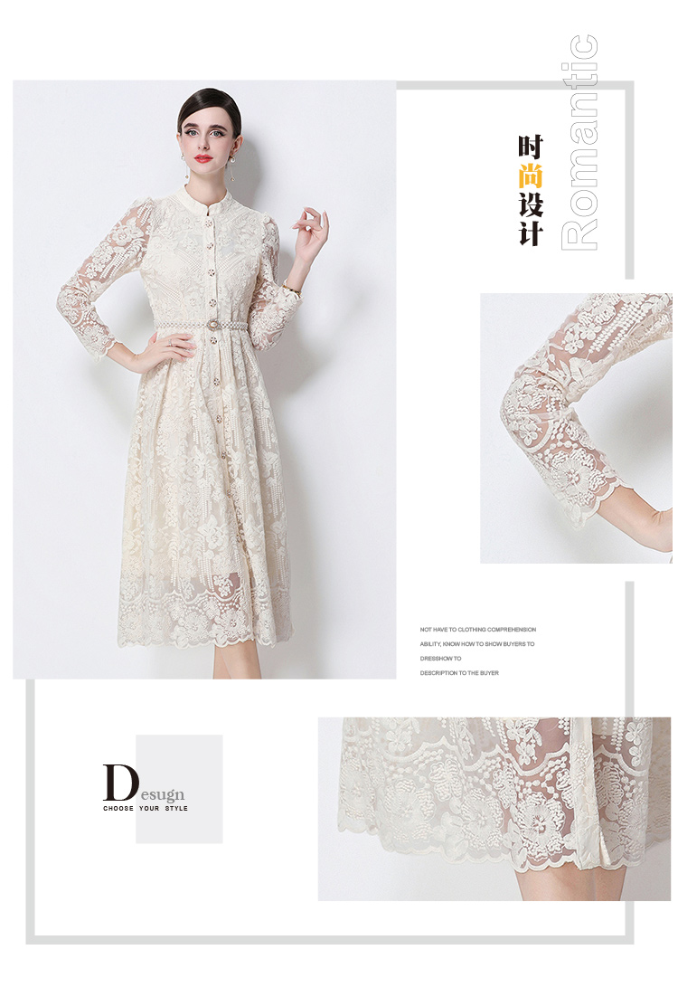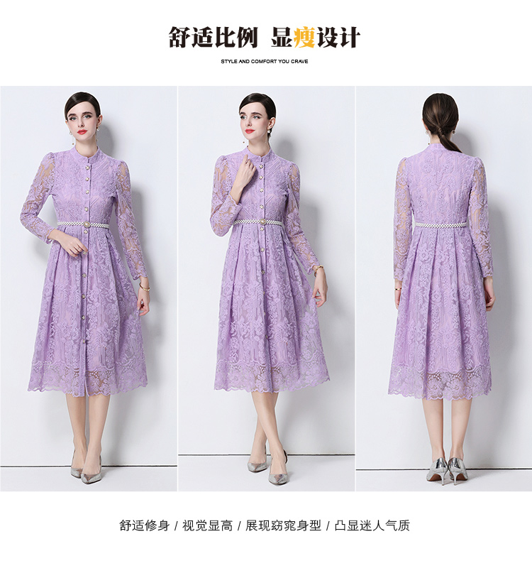 RY1712# 实拍原创轻奢高级感时尚显瘦刺绣长袖中长款连衣裙