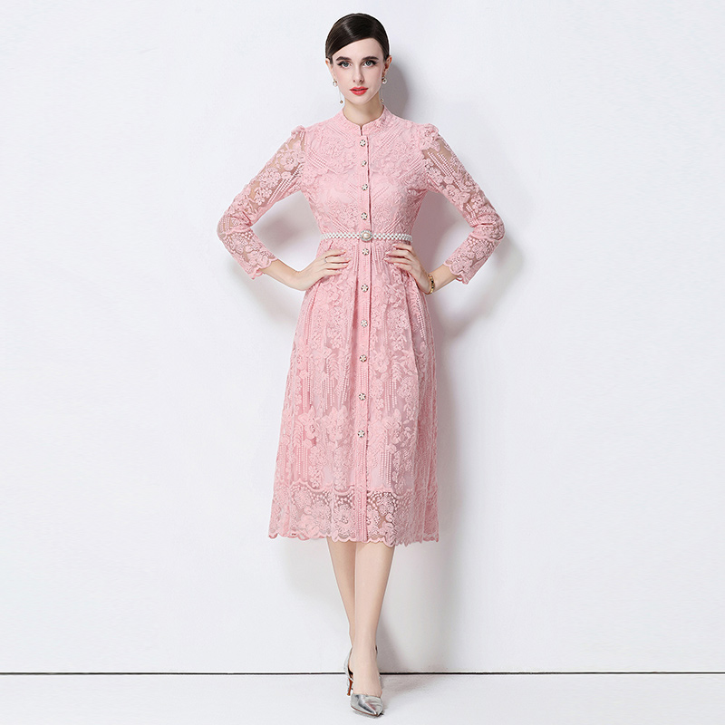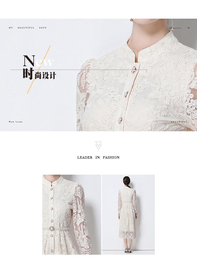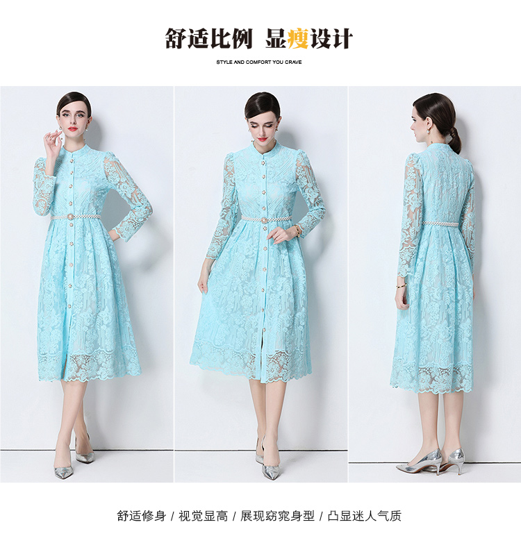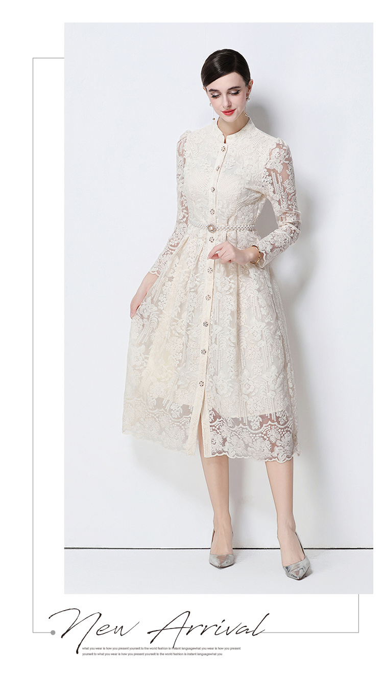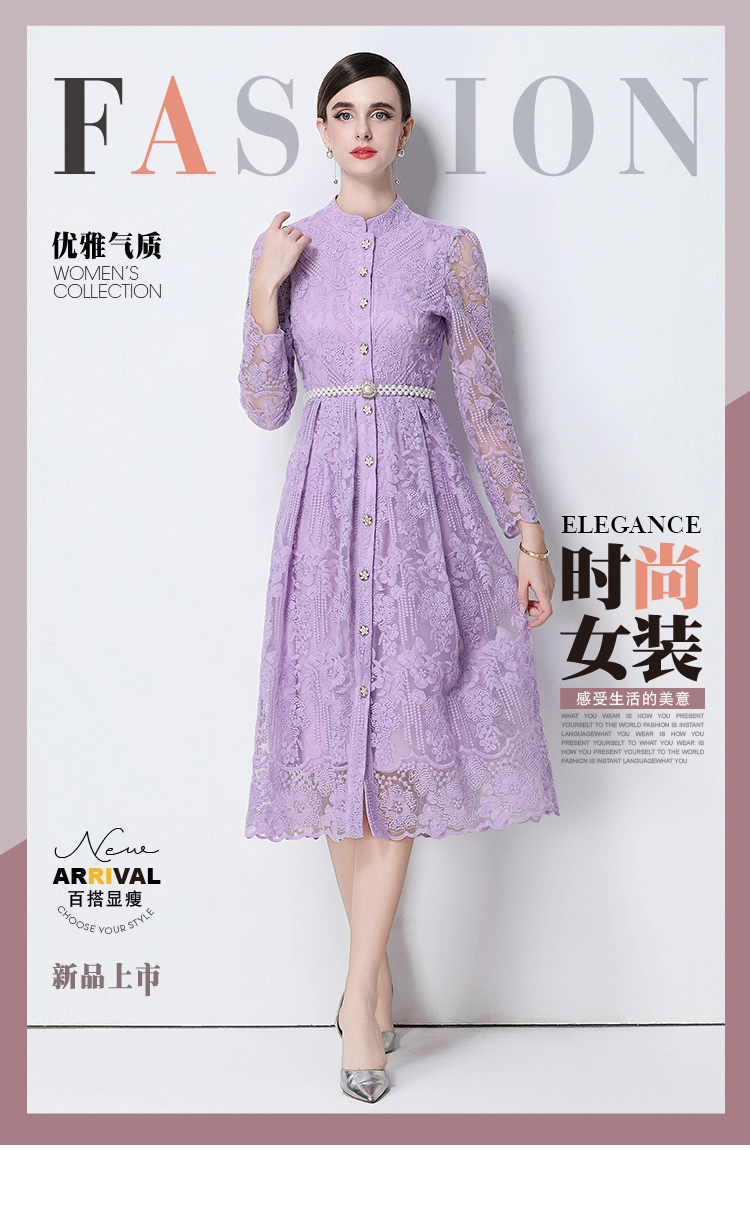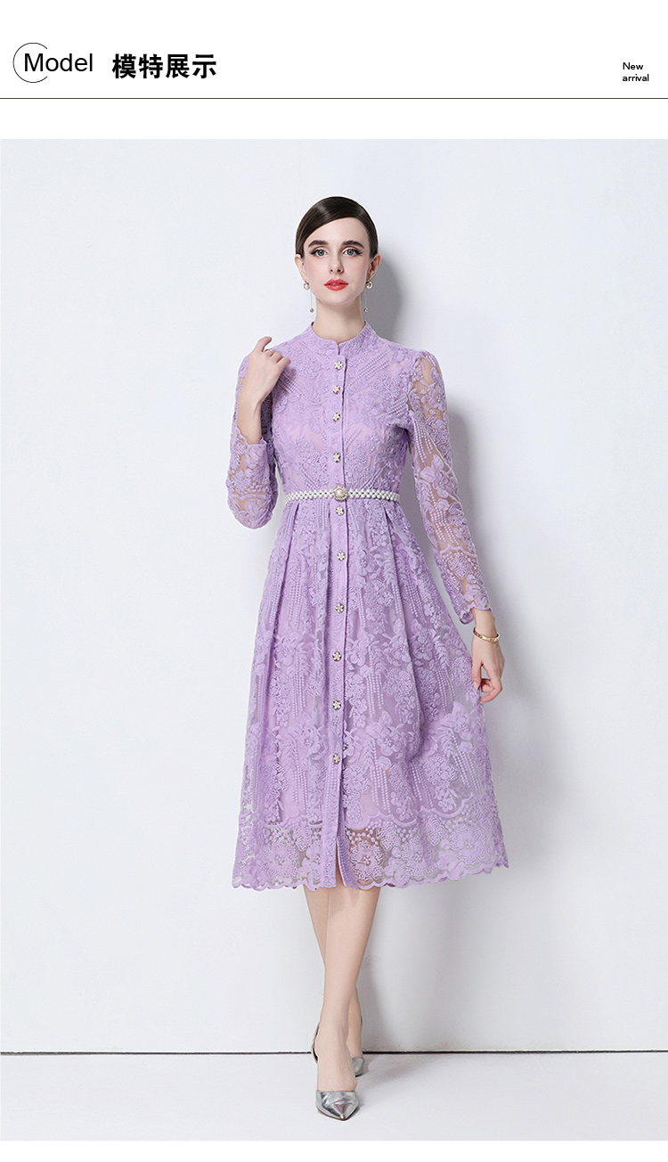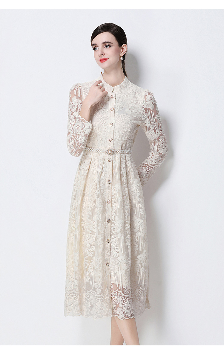 RY1712# 实拍原创轻奢高级感时尚显瘦刺绣长袖中长款连衣裙