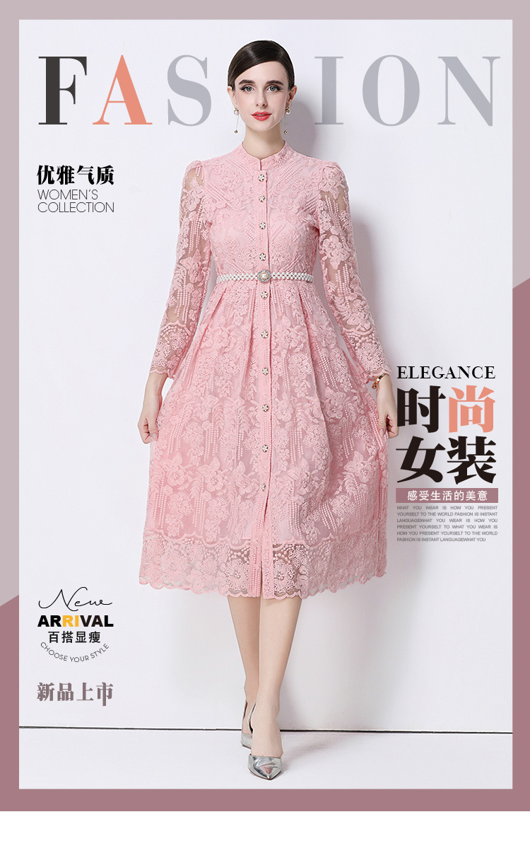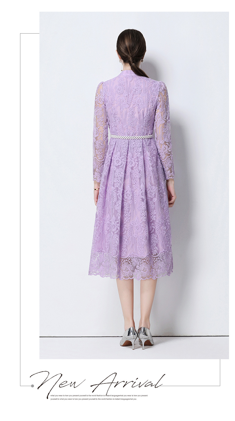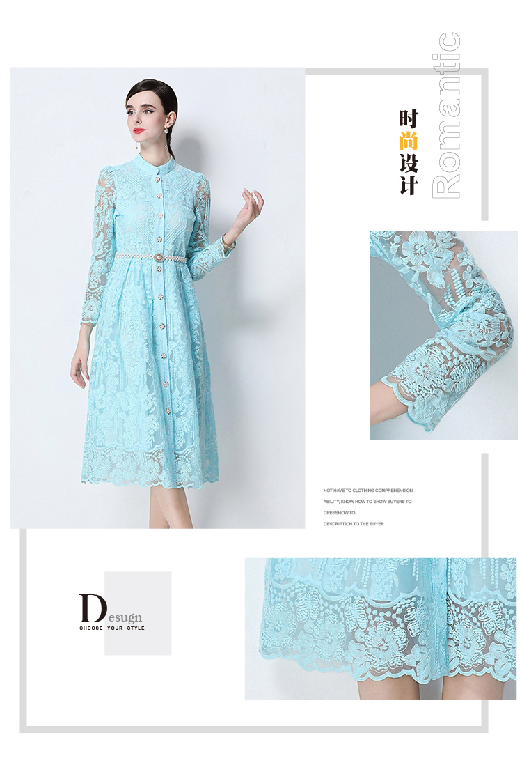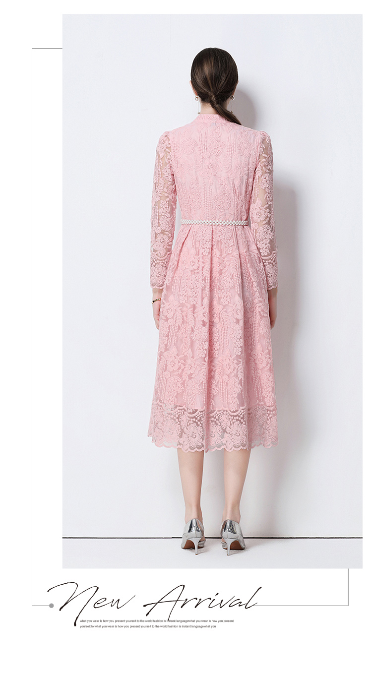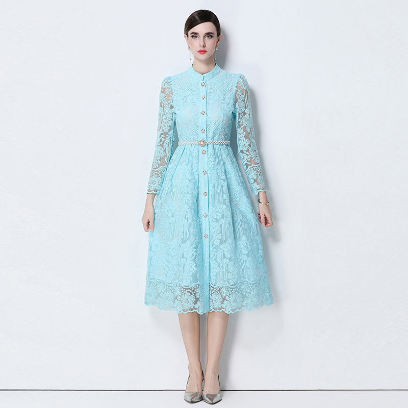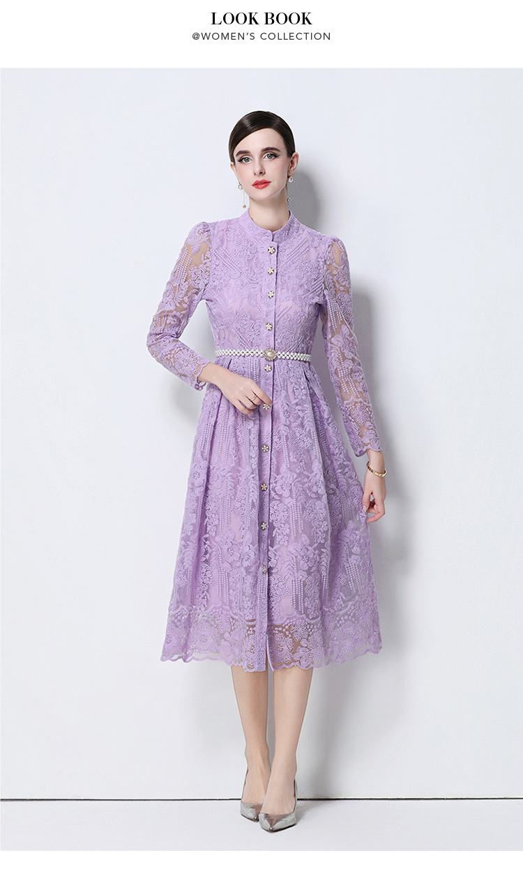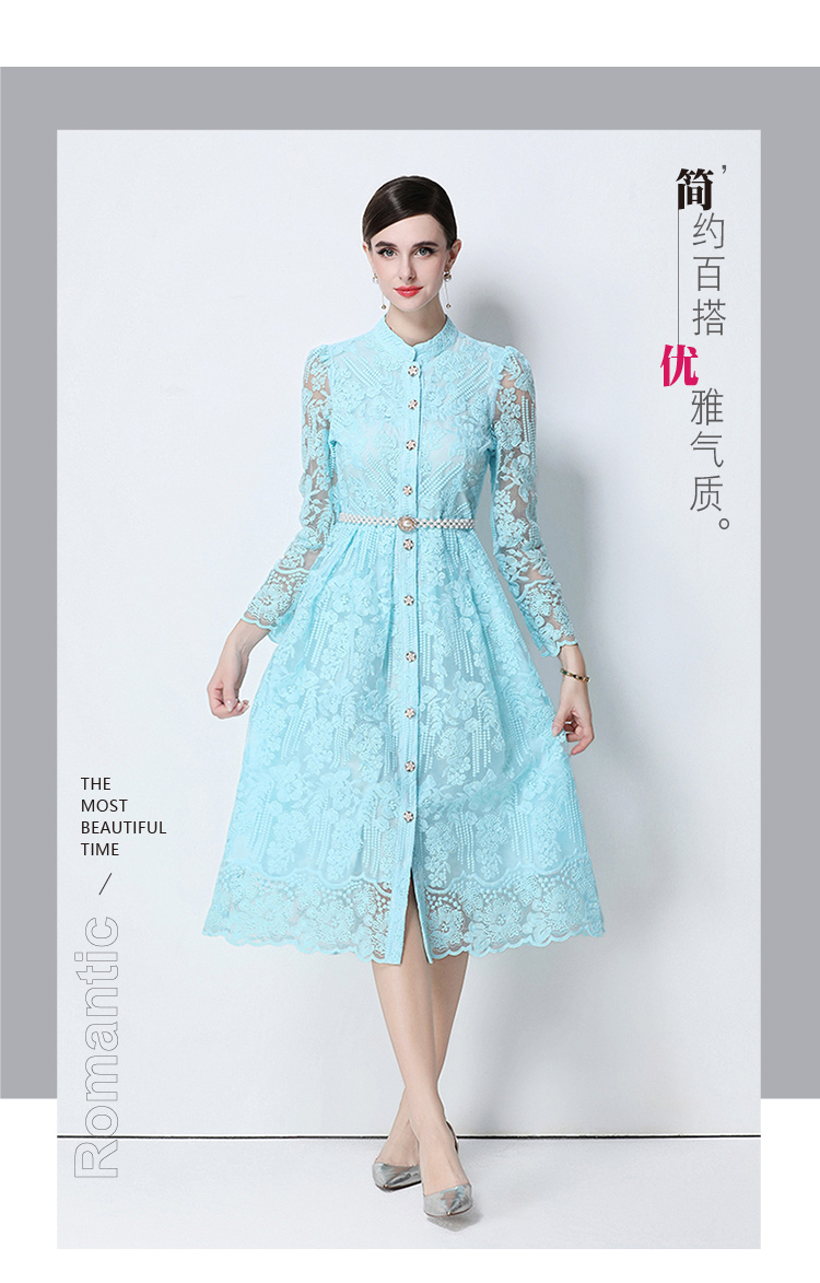 RY1712# 实拍原创轻奢高级感时尚显瘦刺绣长袖中长款连衣裙