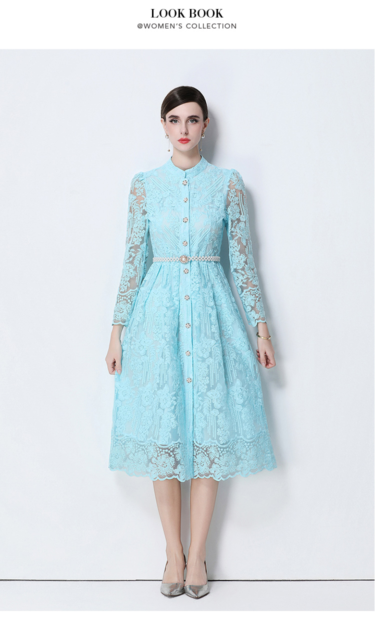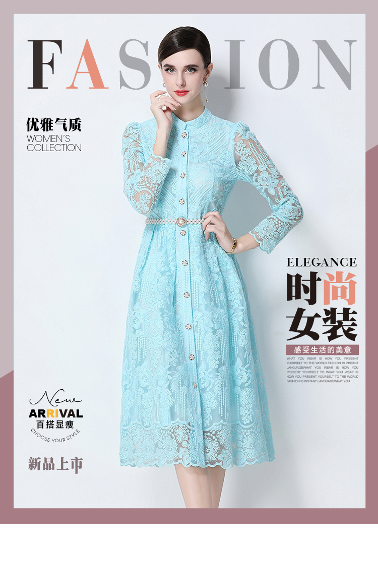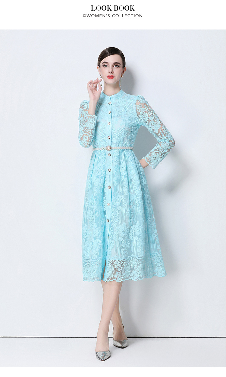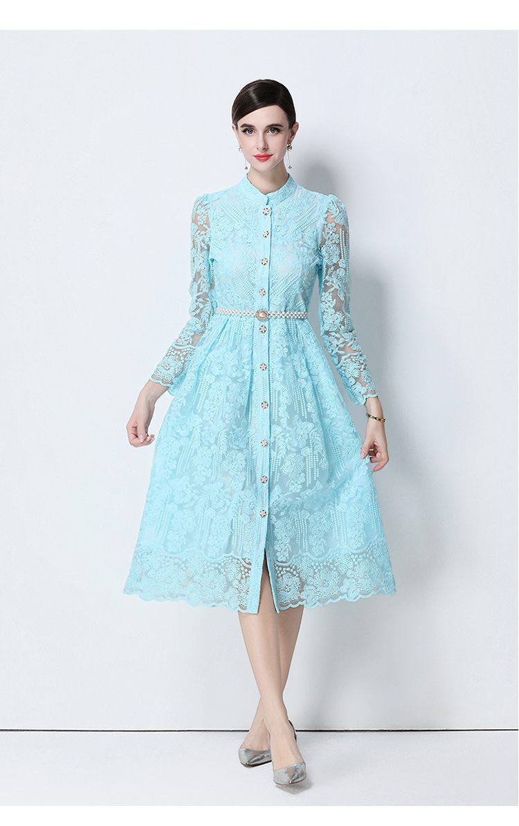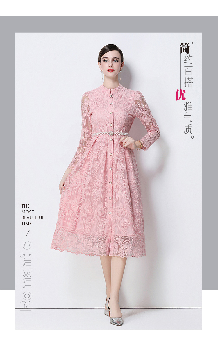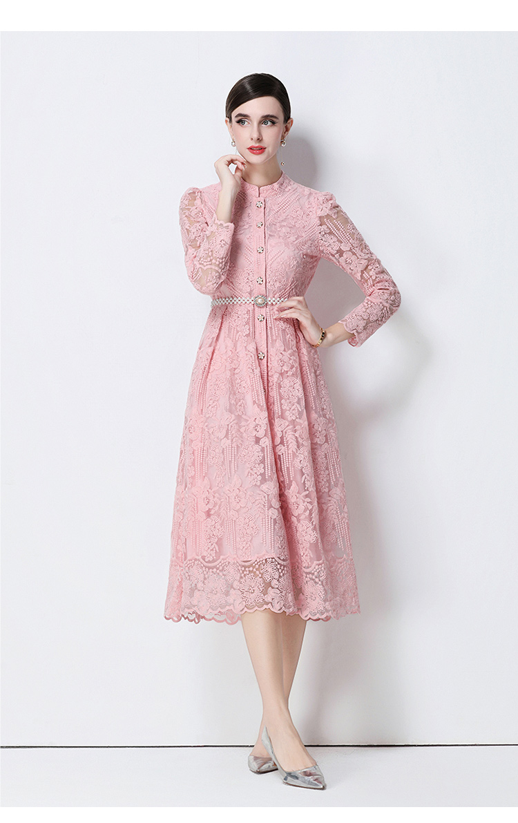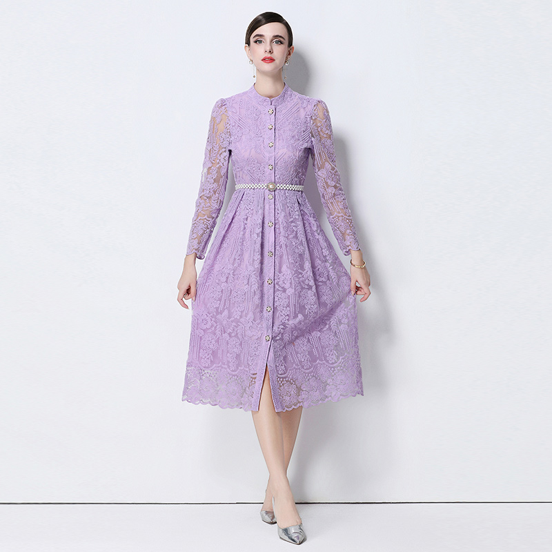 RY1712# 实拍原创轻奢高级感时尚显瘦刺绣长袖中长款连衣裙