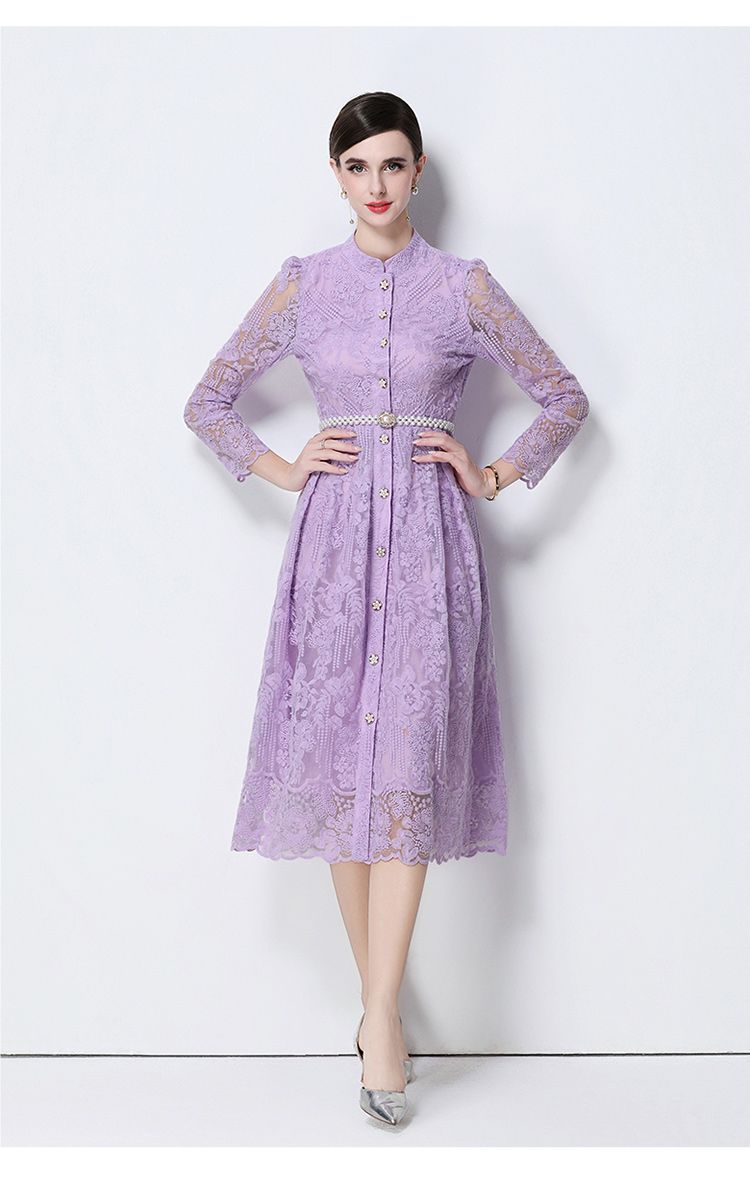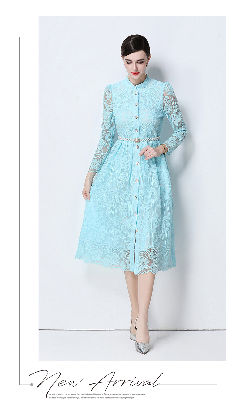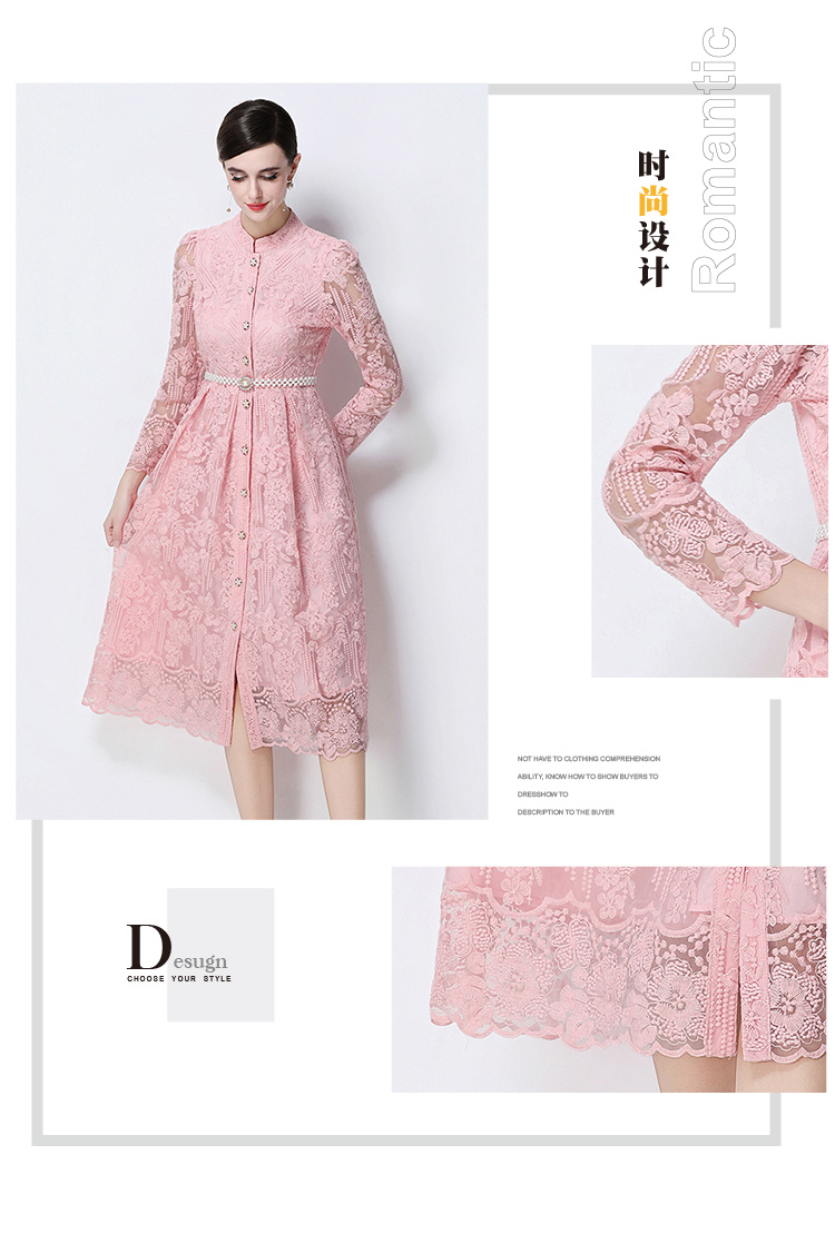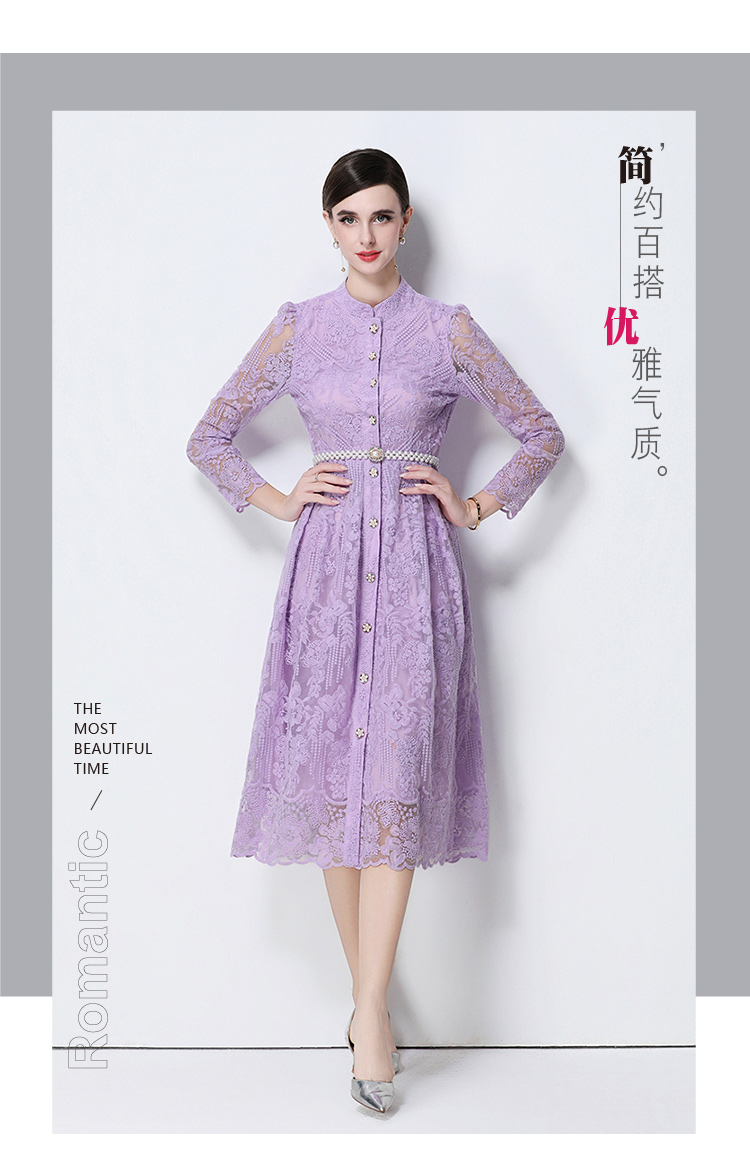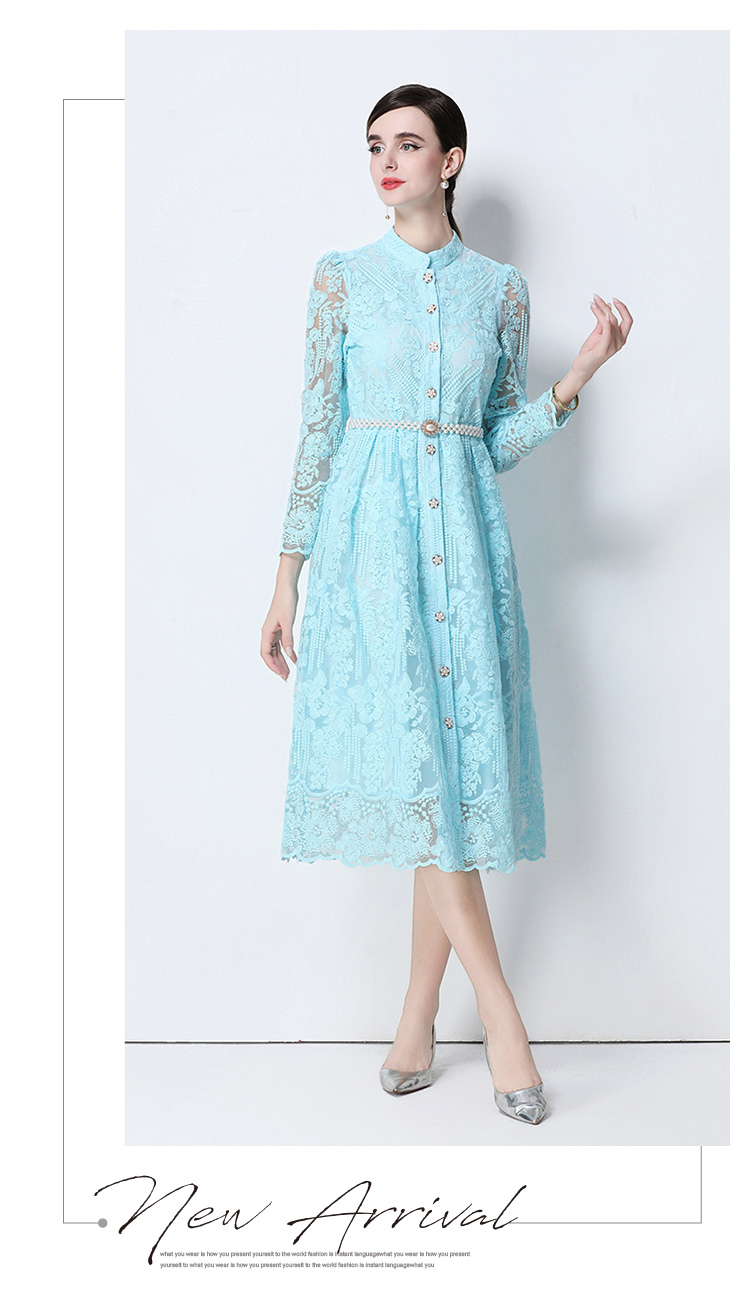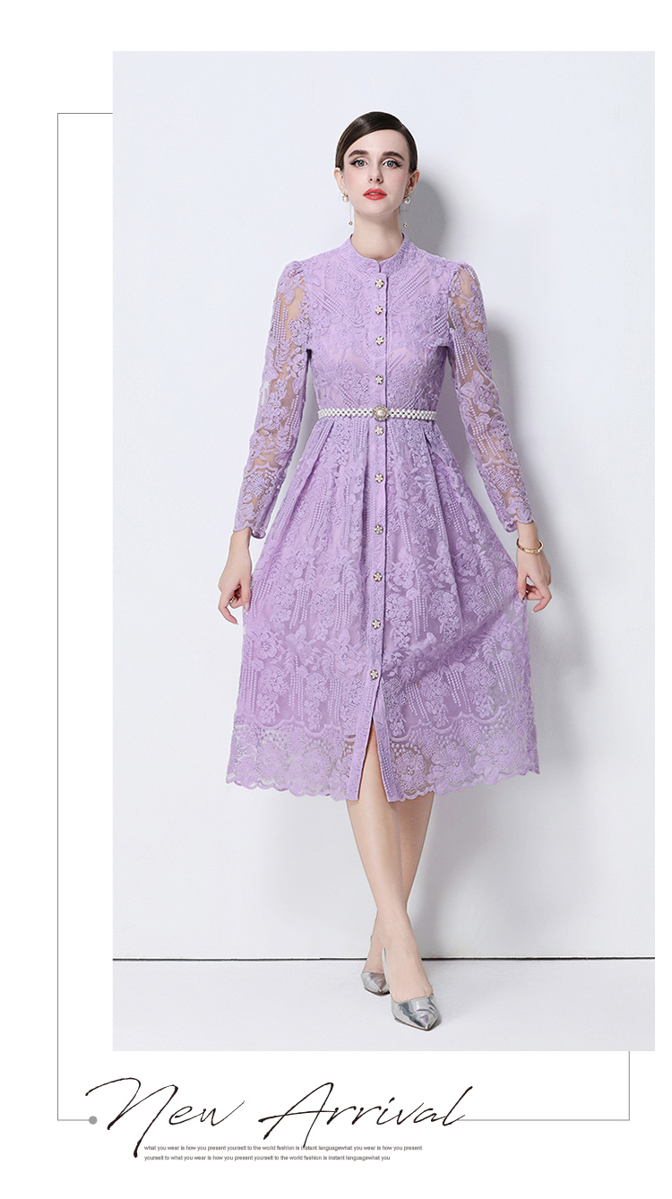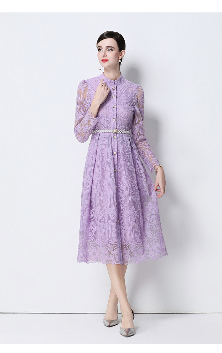 RY1712# 实拍原创轻奢高级感时尚显瘦刺绣长袖中长款连衣裙