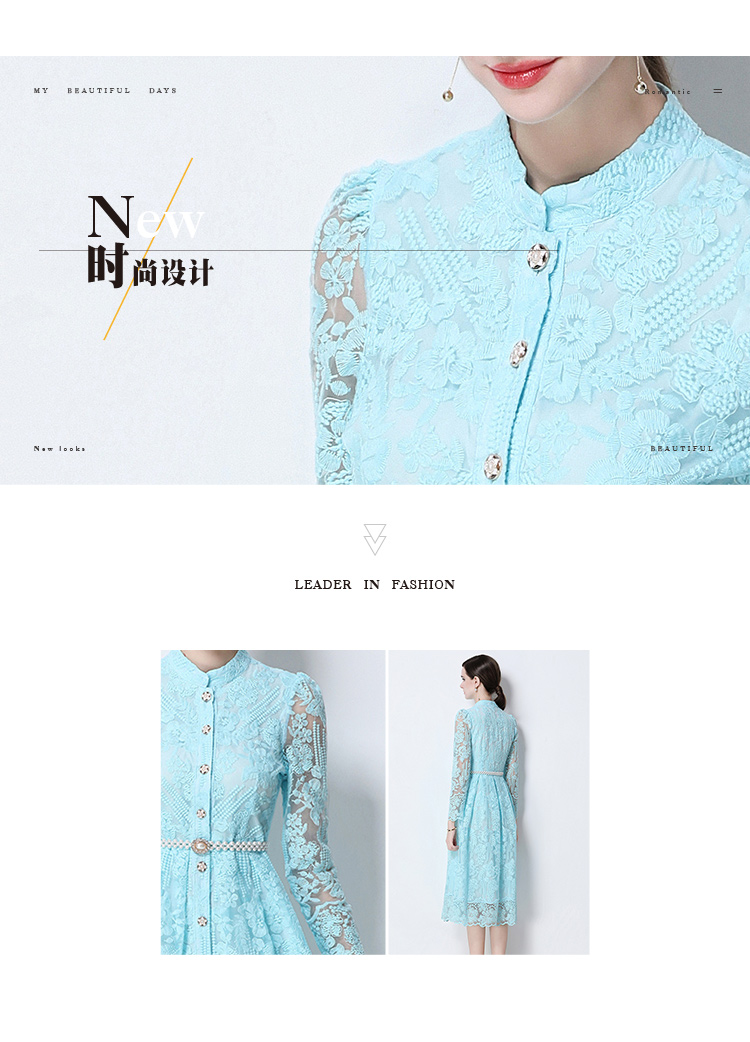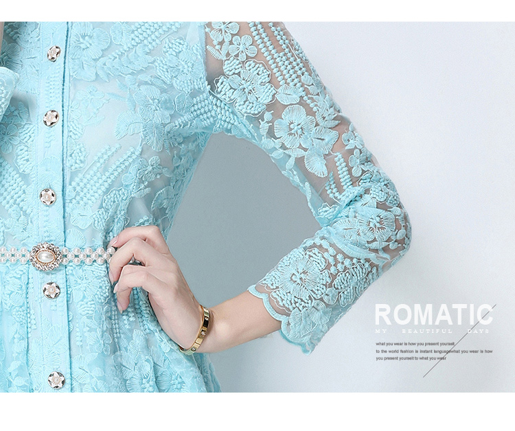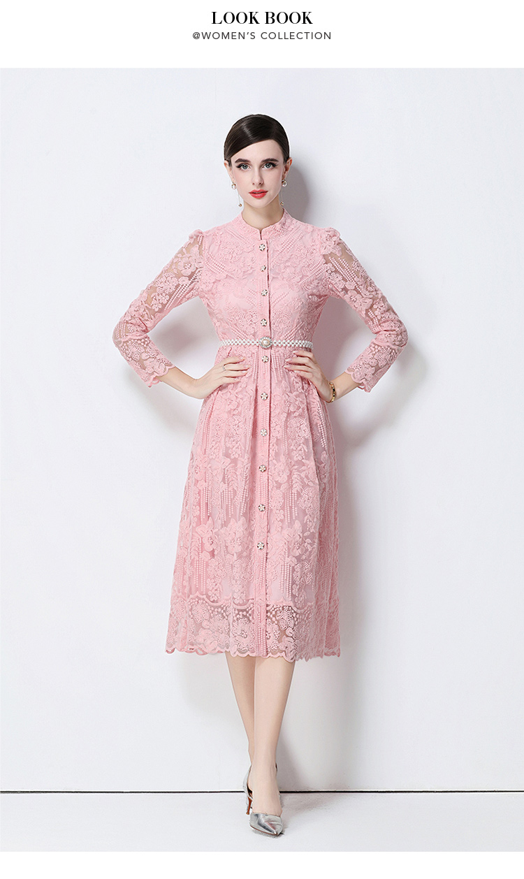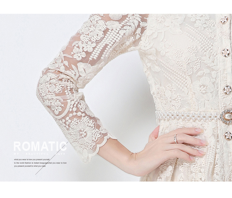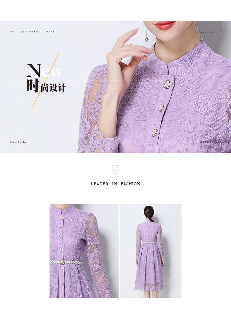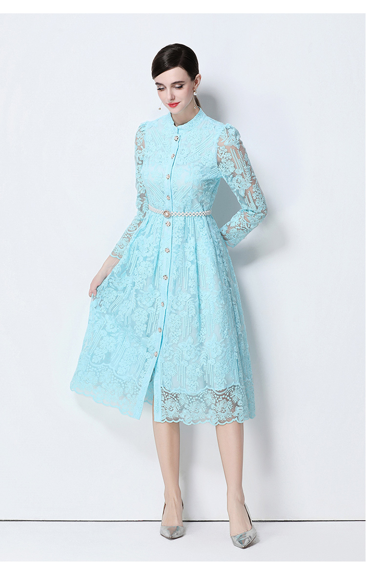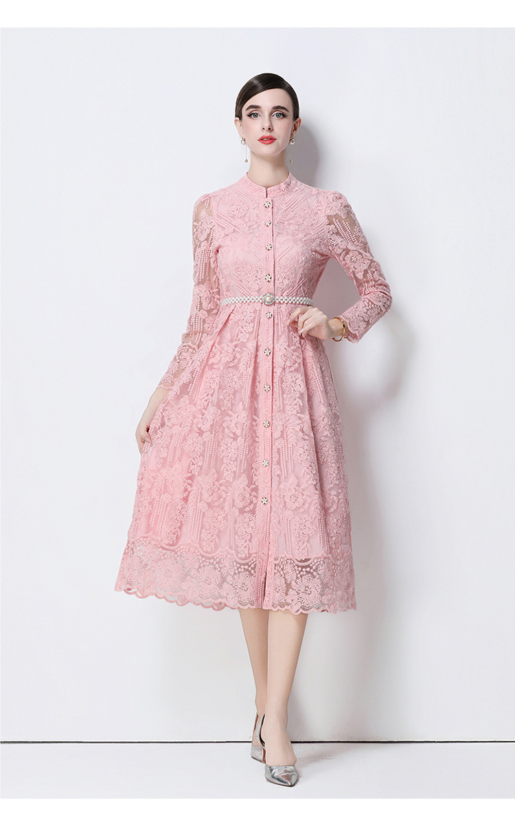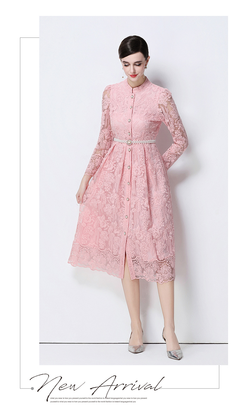 RY1712# 实拍原创轻奢高级感时尚显瘦刺绣长袖中长款连衣裙