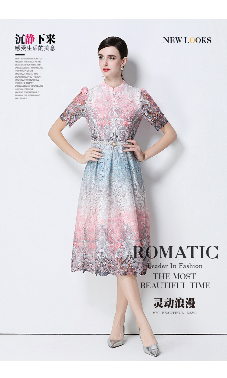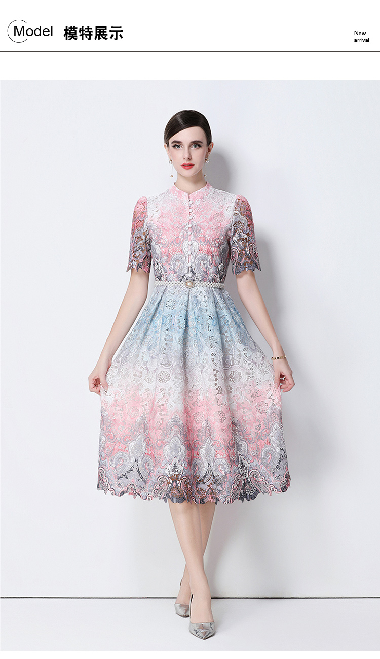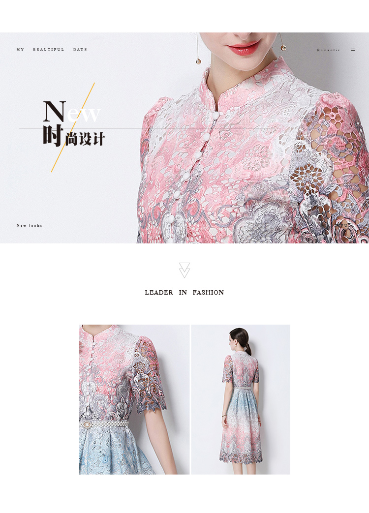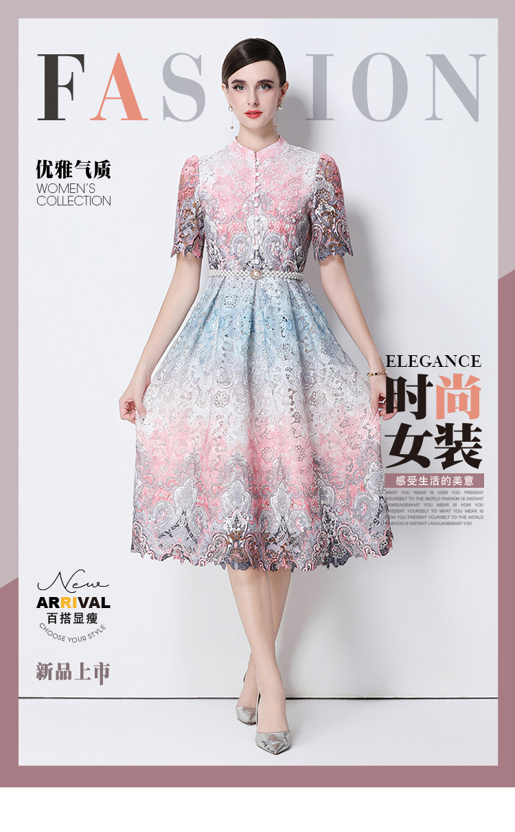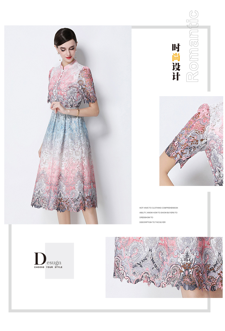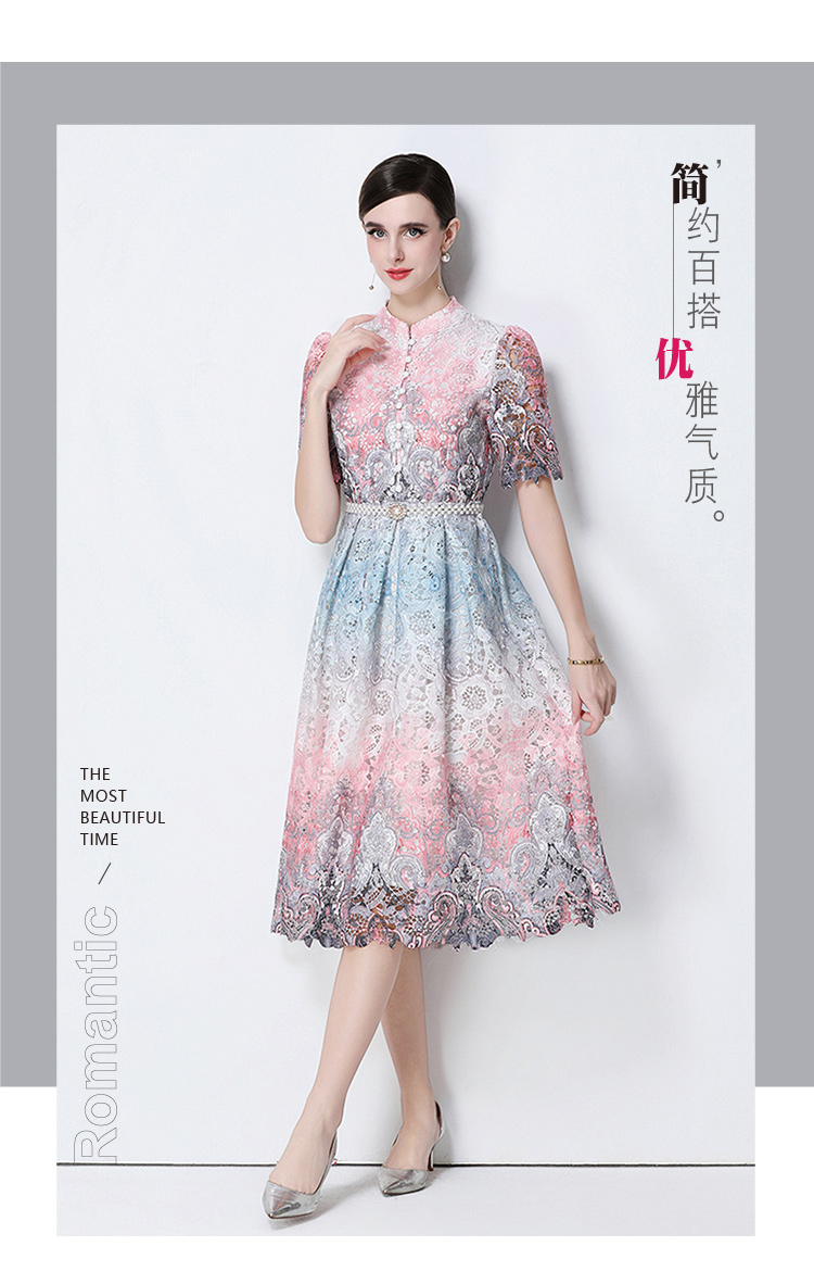 RY1713# 实拍原创短袖感时尚显瘦镂空水溶蕾丝定位中长款连衣裙