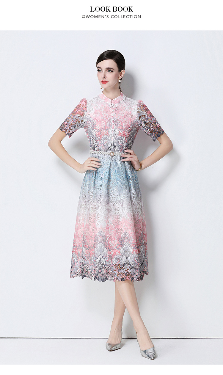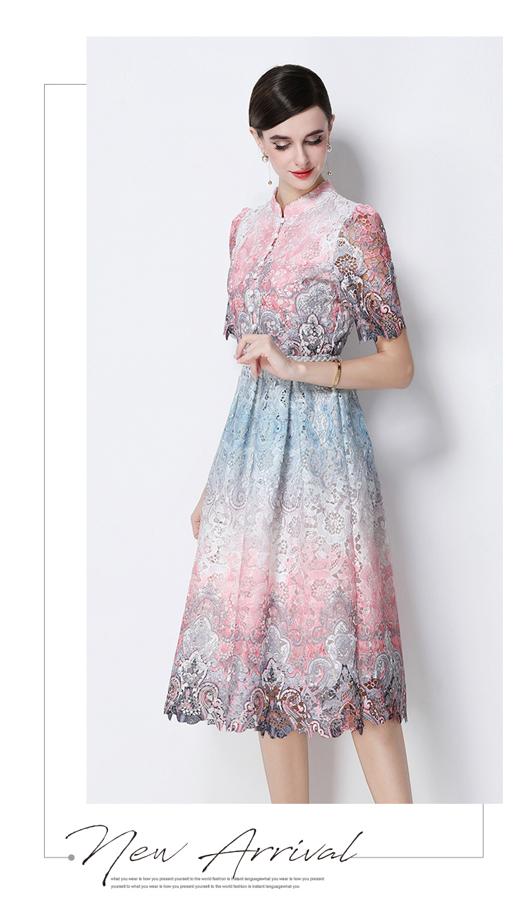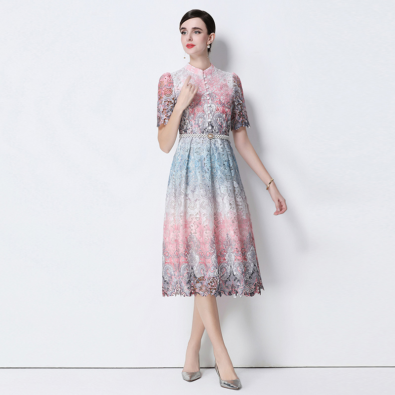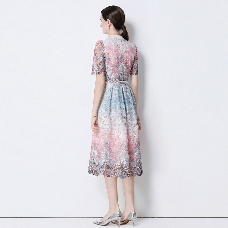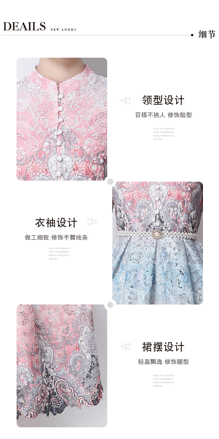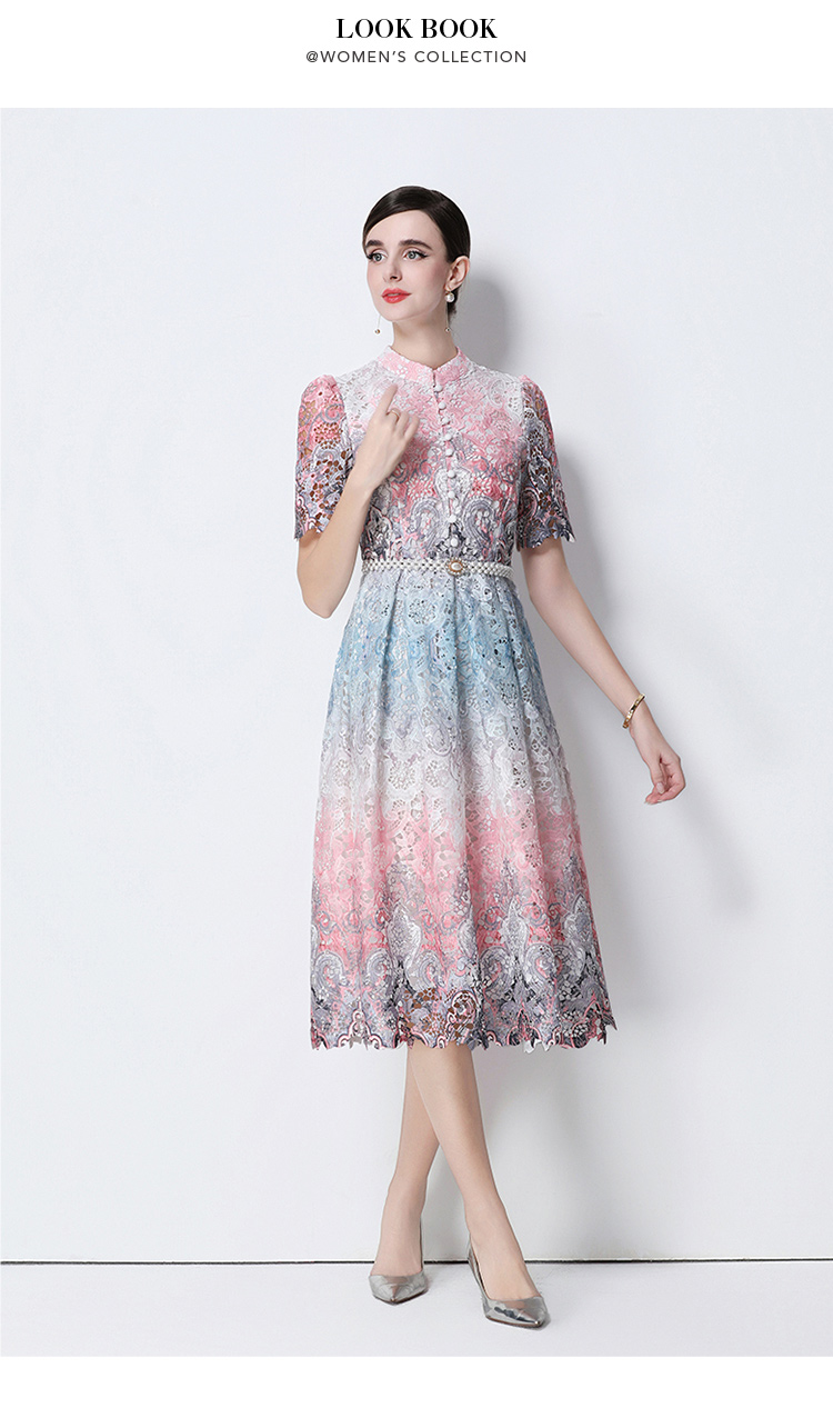 RY1713# 实拍原创短袖感时尚显瘦镂空水溶蕾丝定位中长款连衣裙