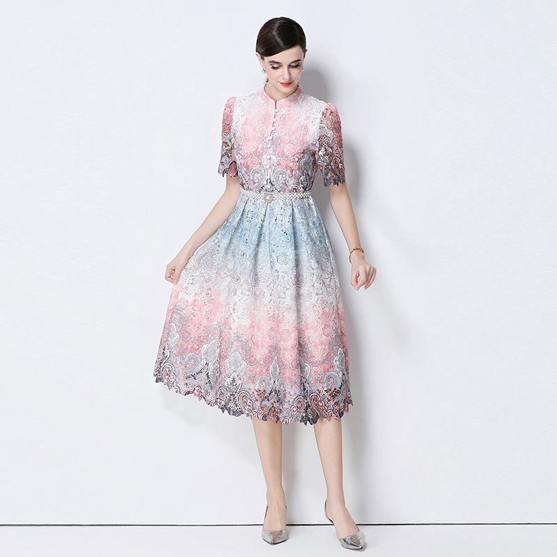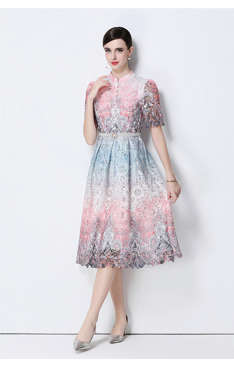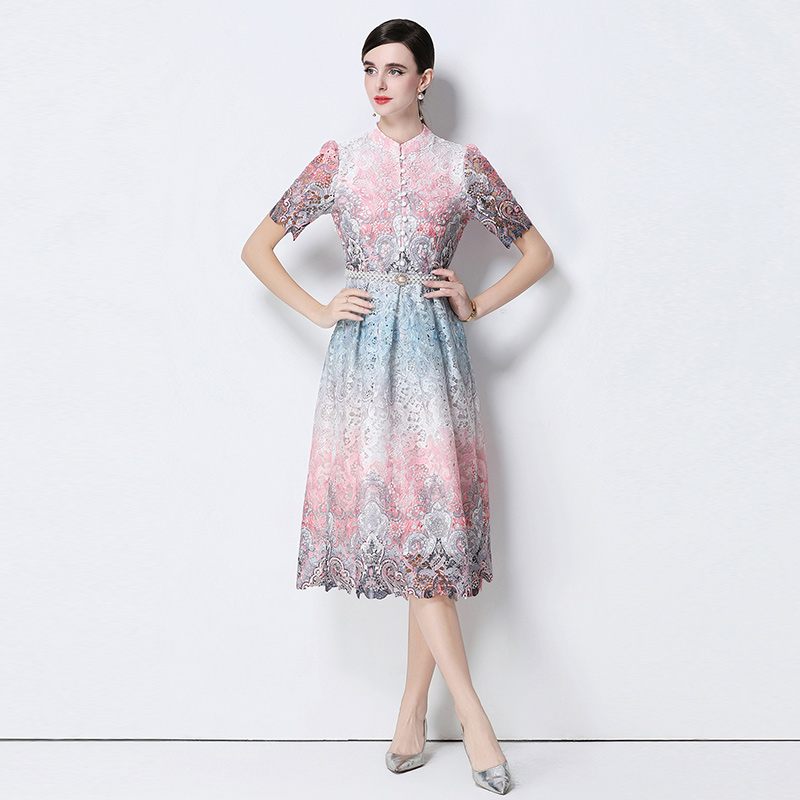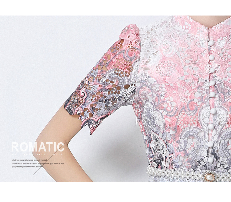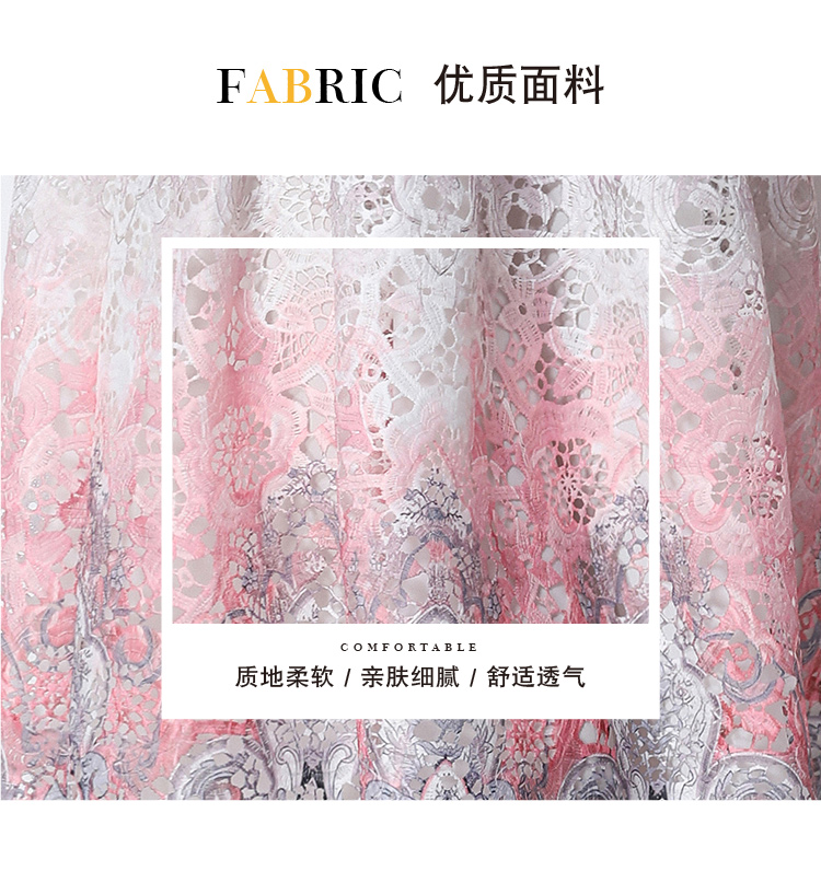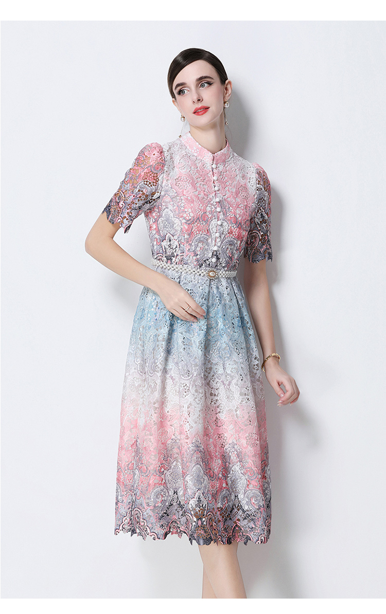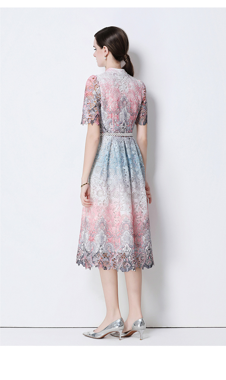 RY1713# 实拍原创短袖感时尚显瘦镂空水溶蕾丝定位中长款连衣裙