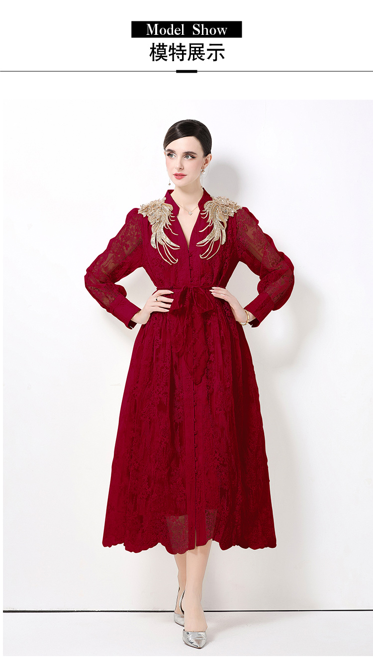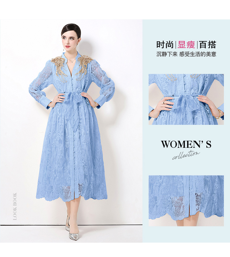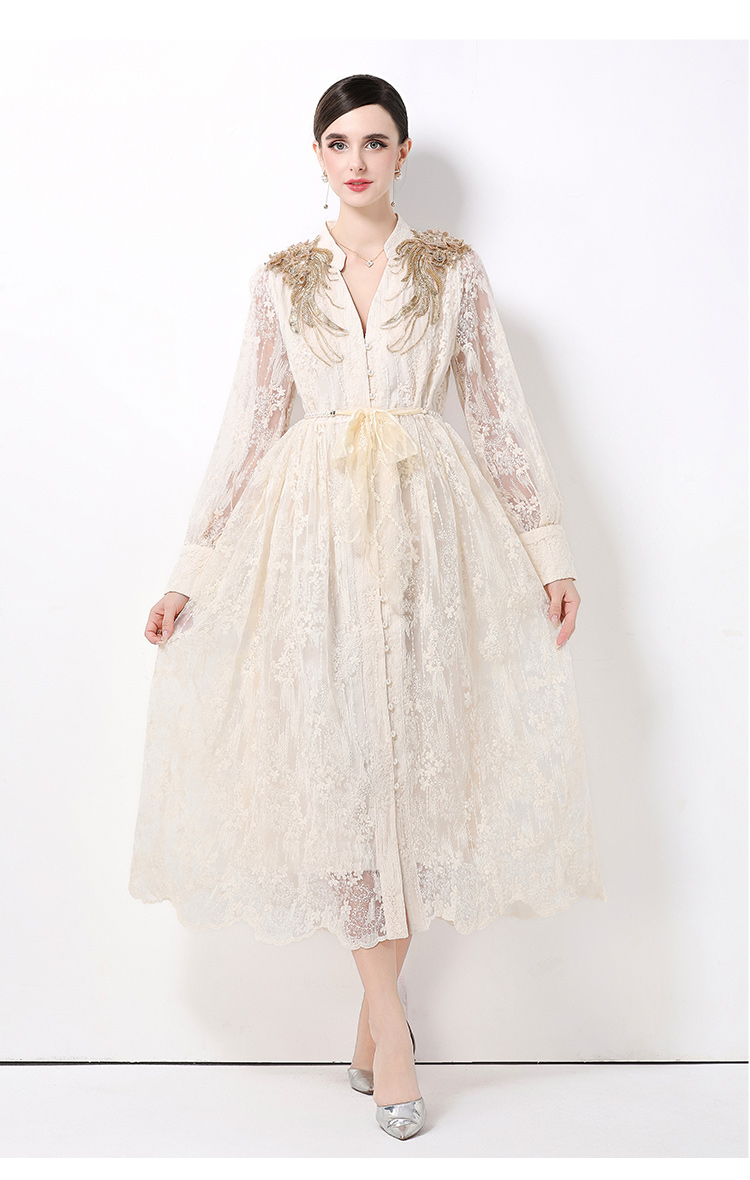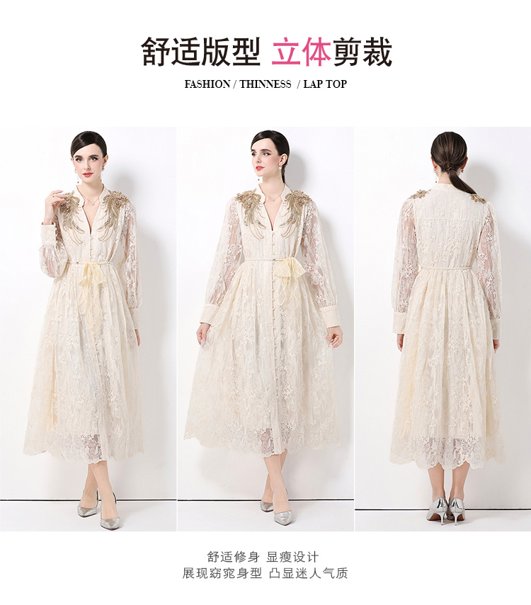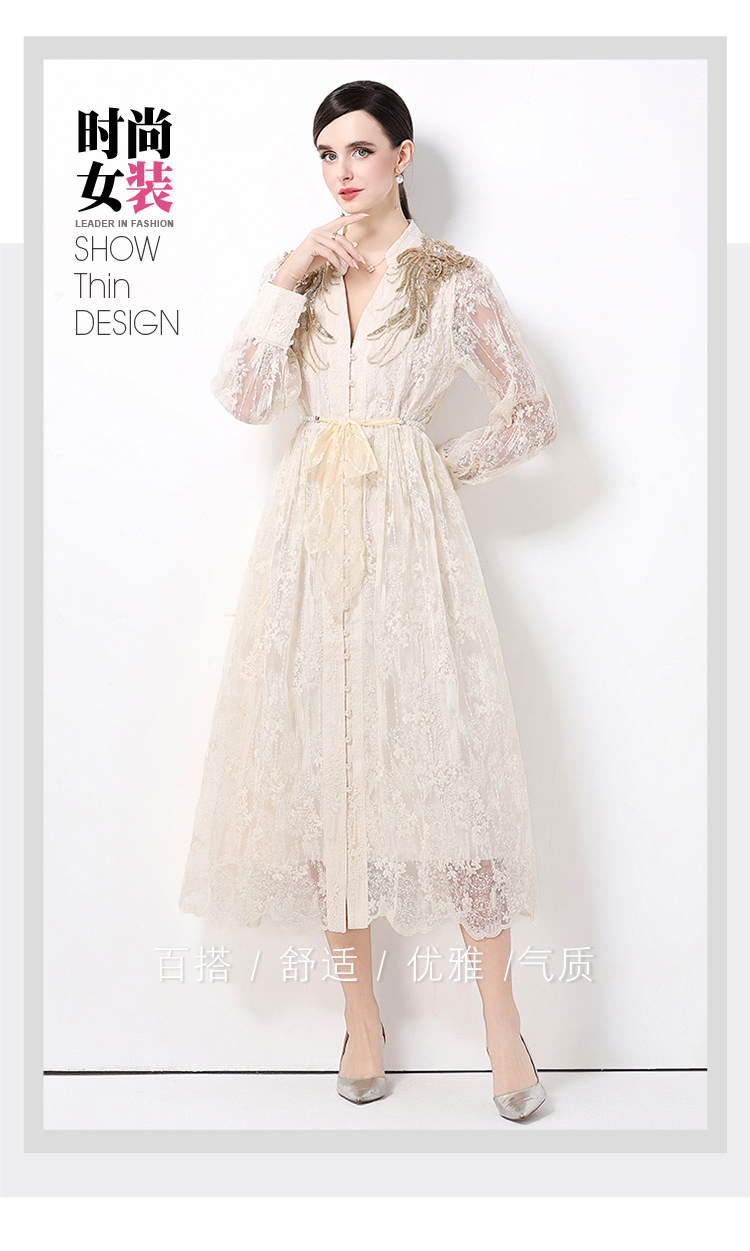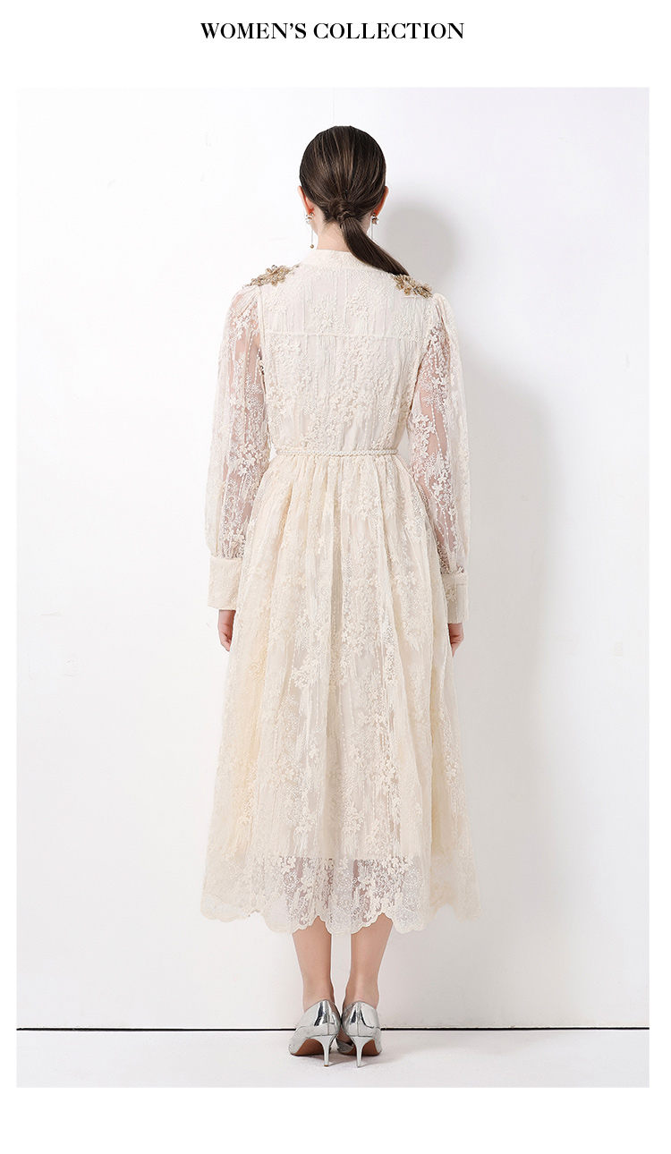 RY1727# 宫廷刺绣水溶蕾丝复古长款连衣裙重工百搭连衣裙