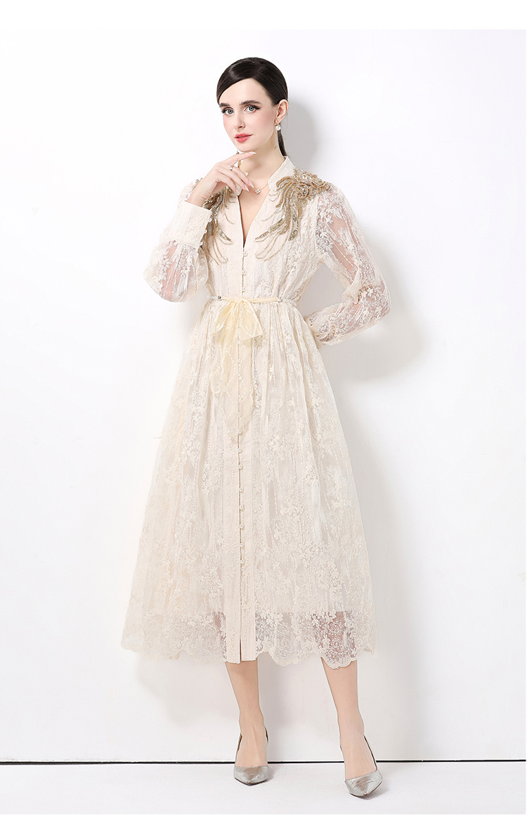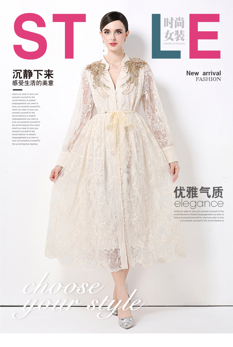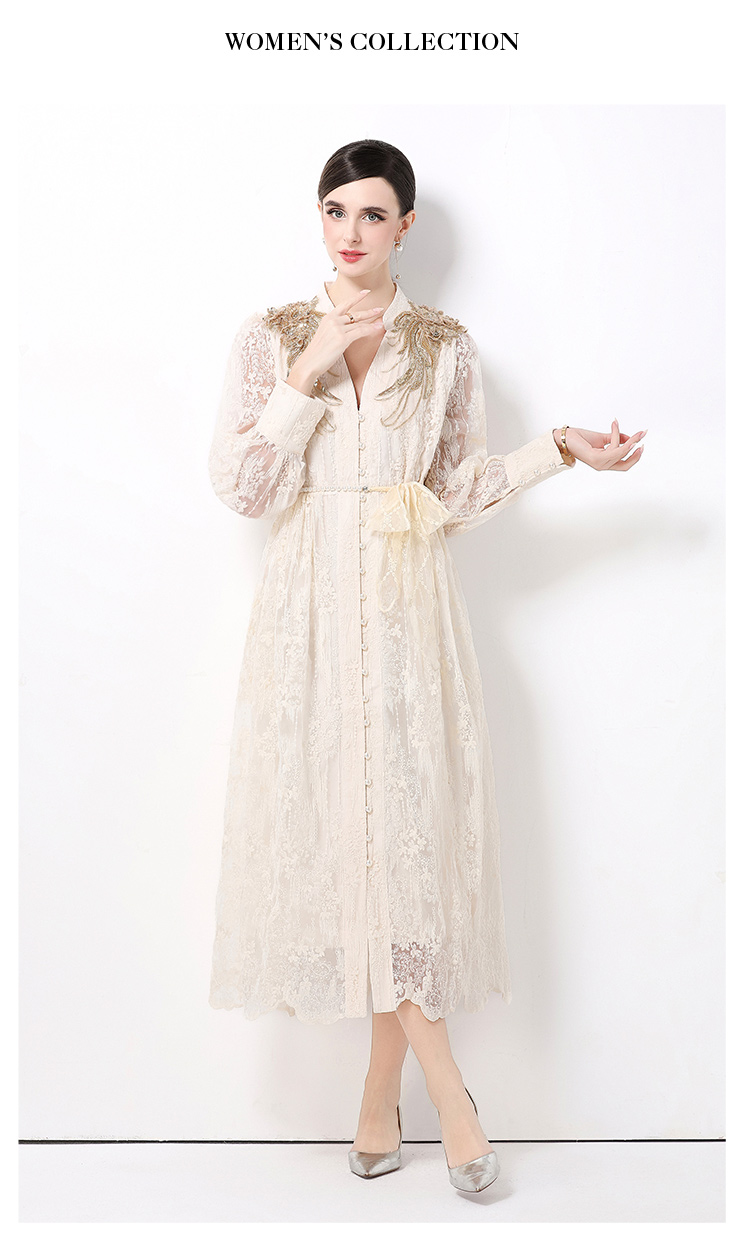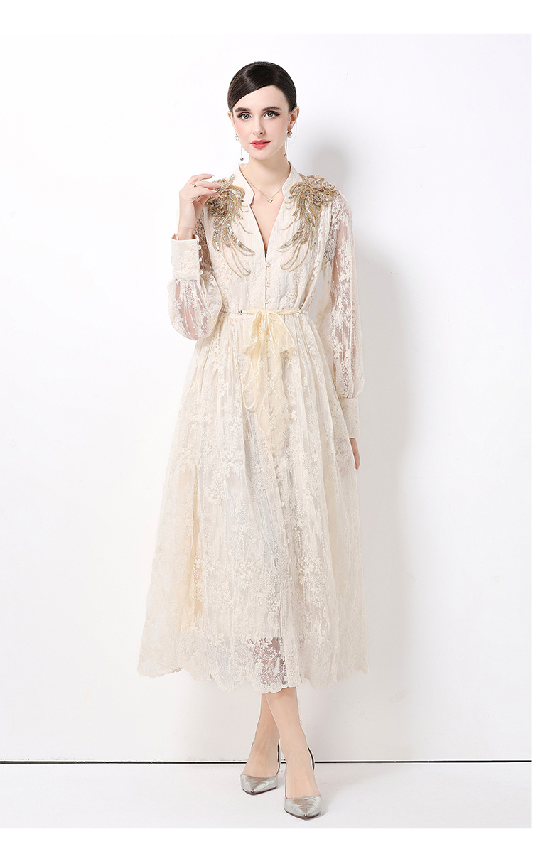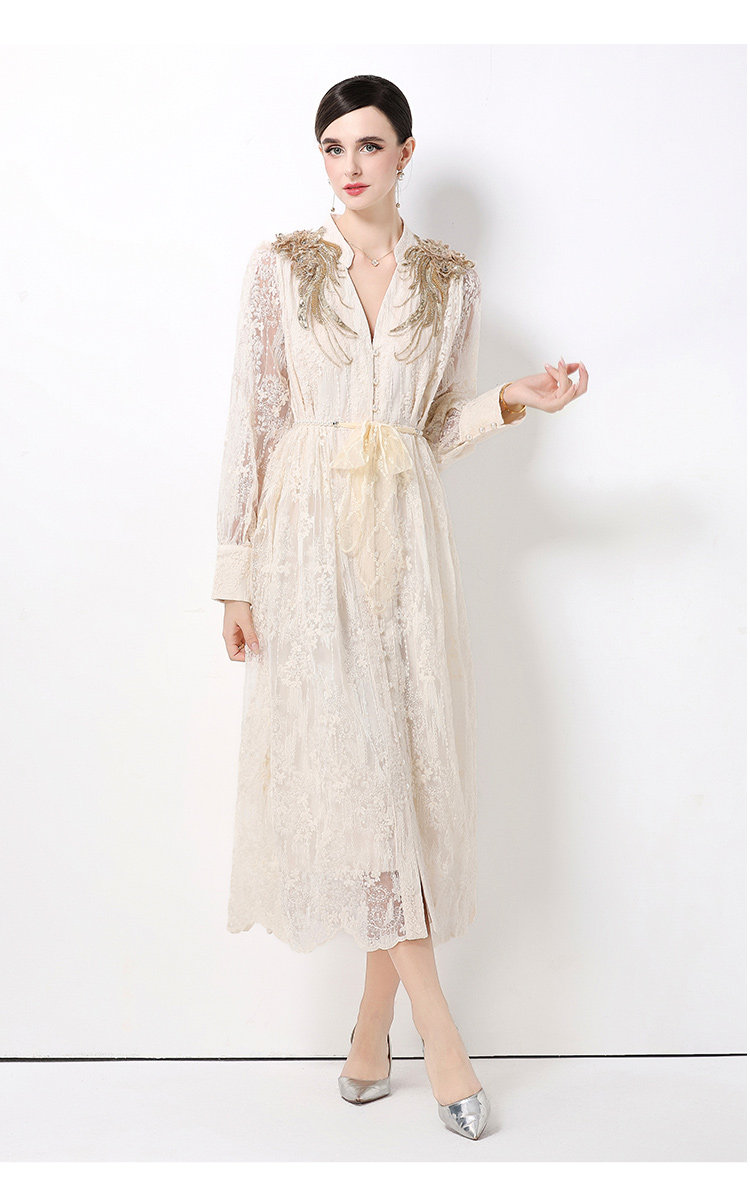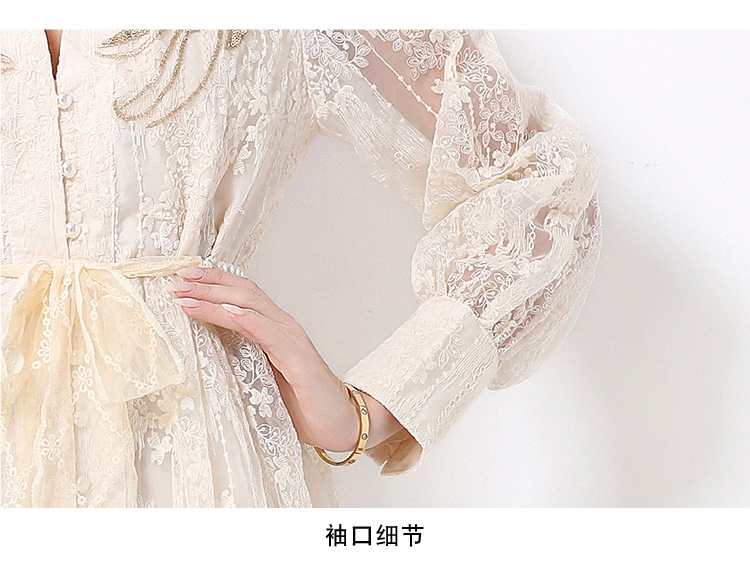 RY1727# 宫廷刺绣水溶蕾丝复古长款连衣裙重工百搭连衣裙
