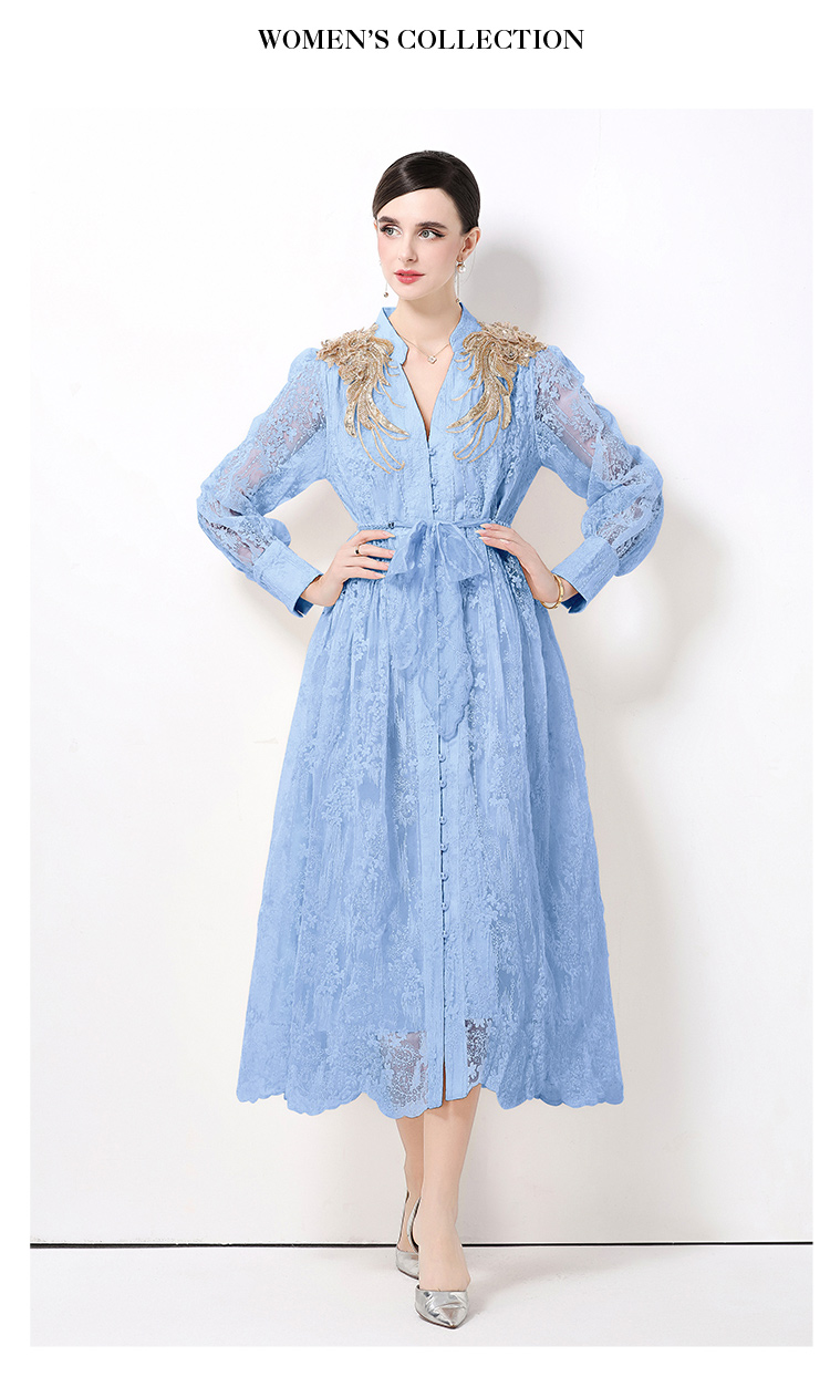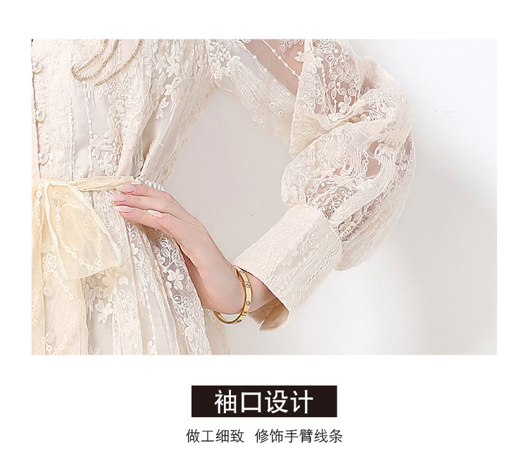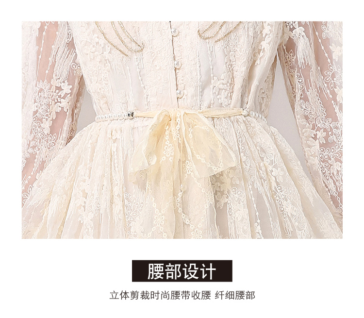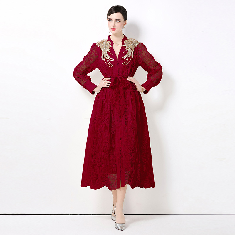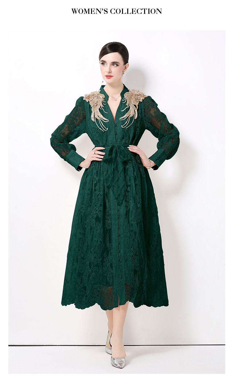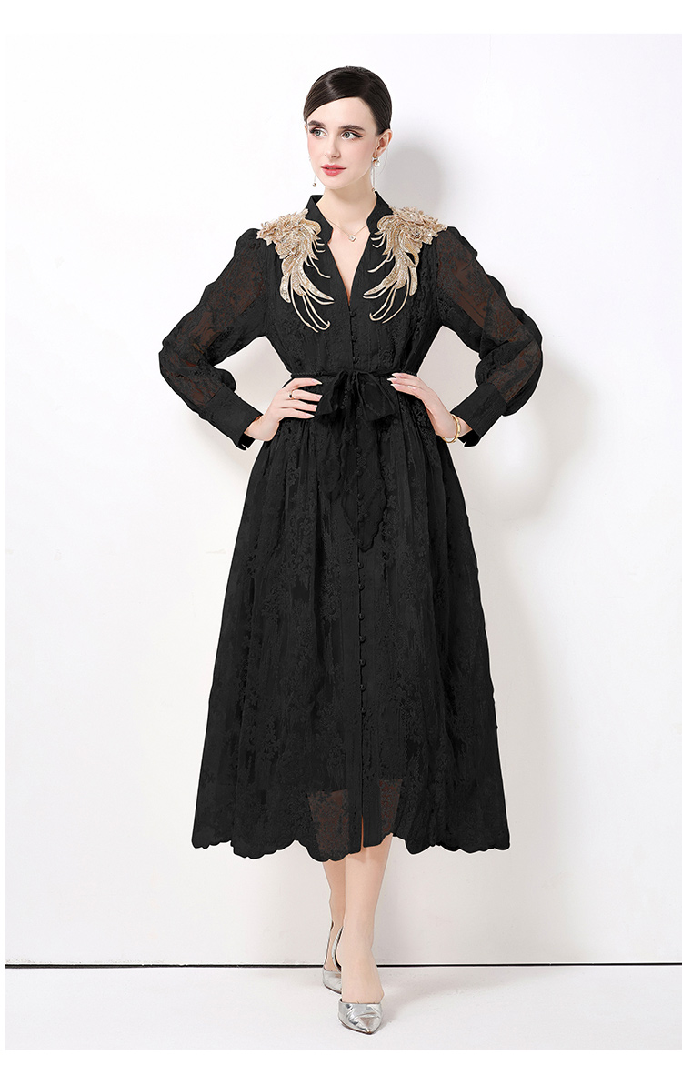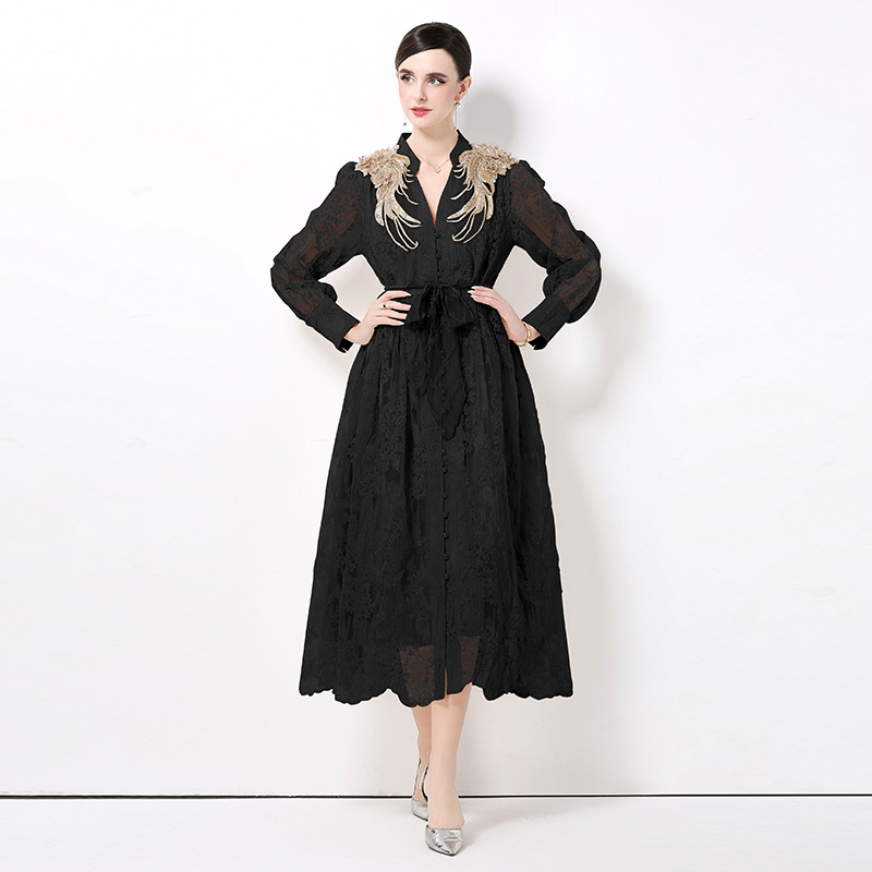 RY1727# 宫廷刺绣水溶蕾丝复古长款连衣裙重工百搭连衣裙