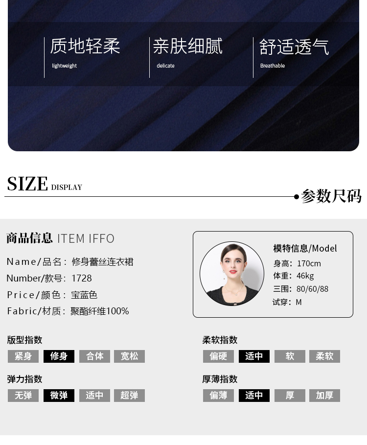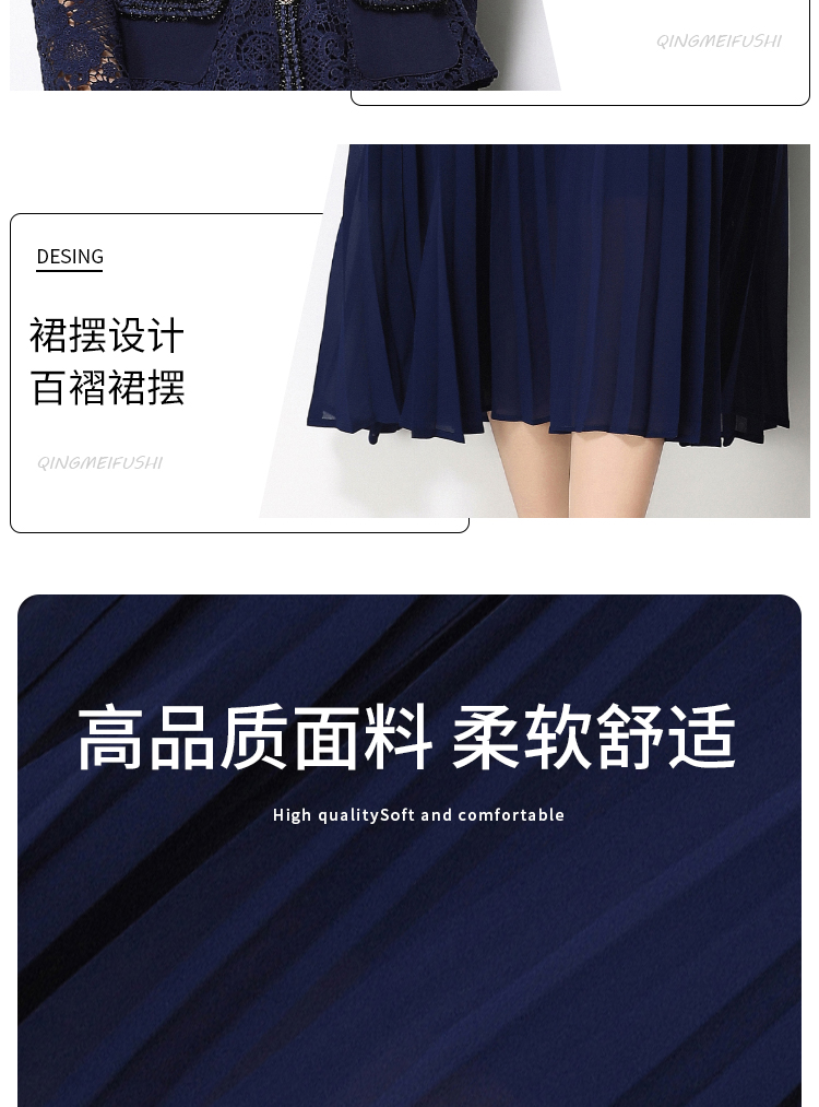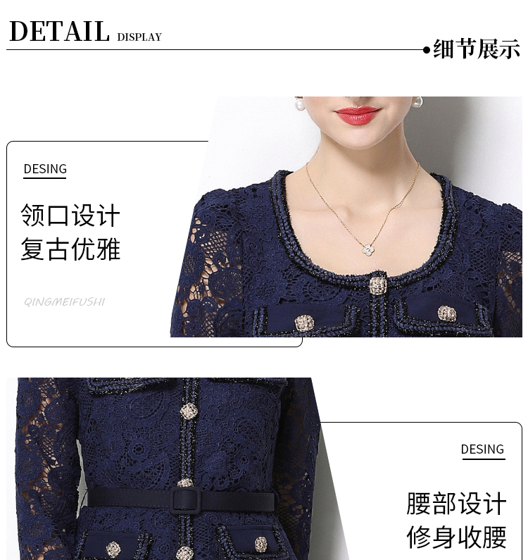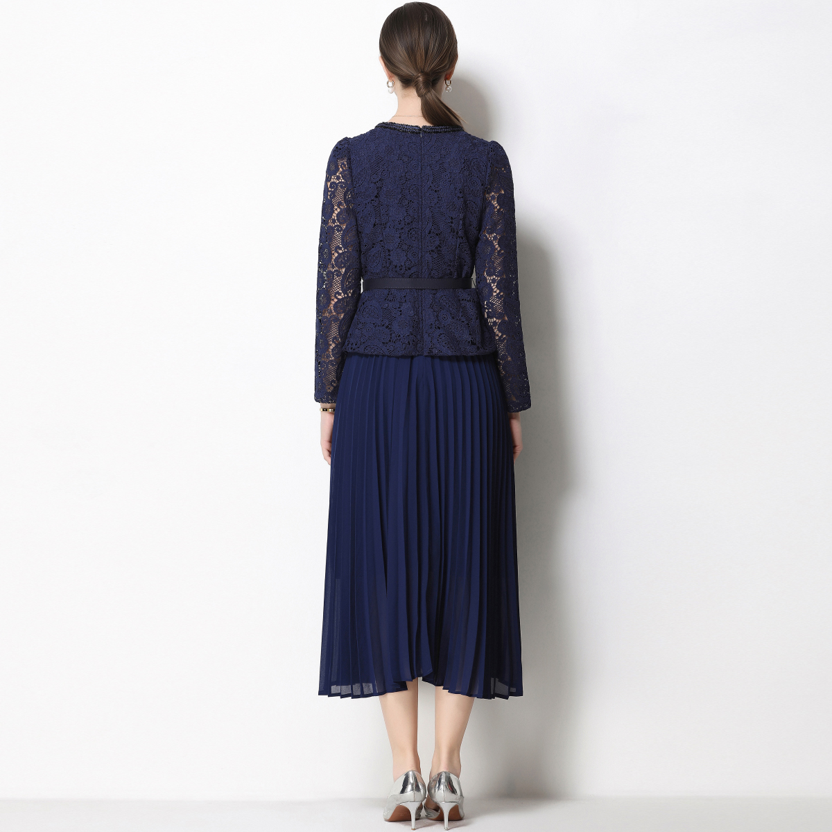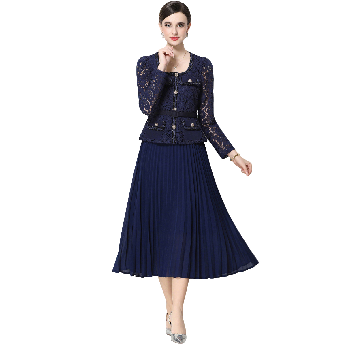 RY1751# 实拍法式小香风新款轻奢修身显瘦方领蕾丝拼接中长百褶裙