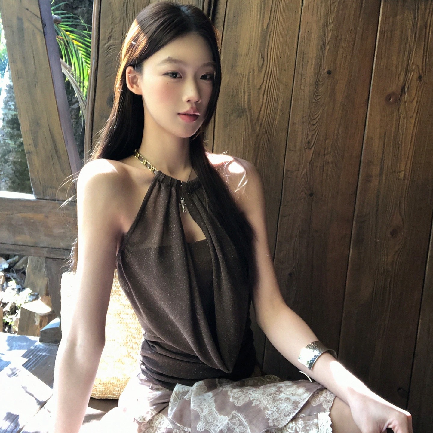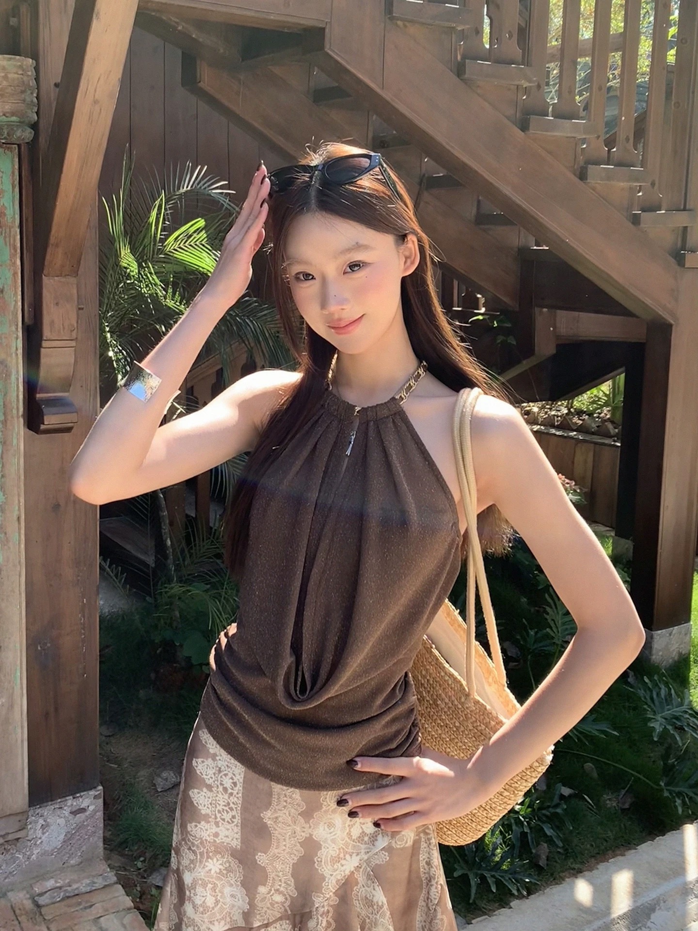 RY1768# 红人馆吊带背心女夏外穿辣妹穿搭露背设计感修身短款无袖挂脖上衣