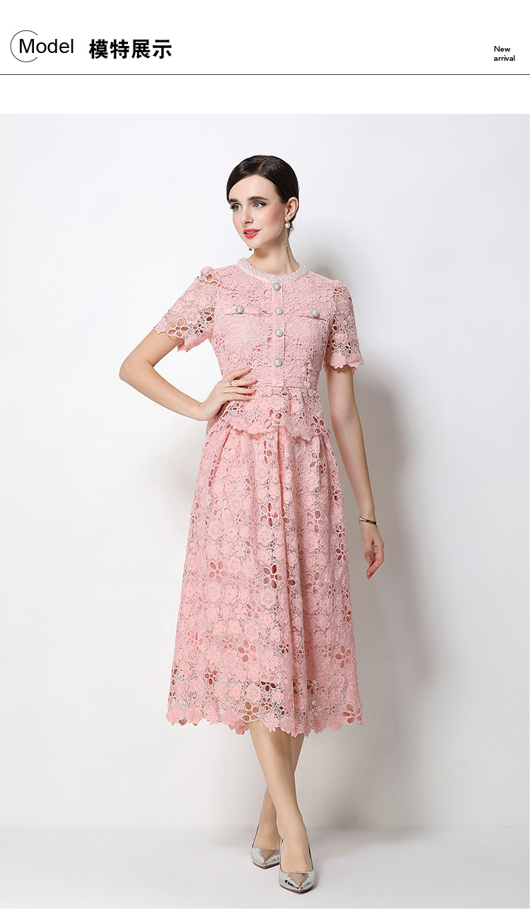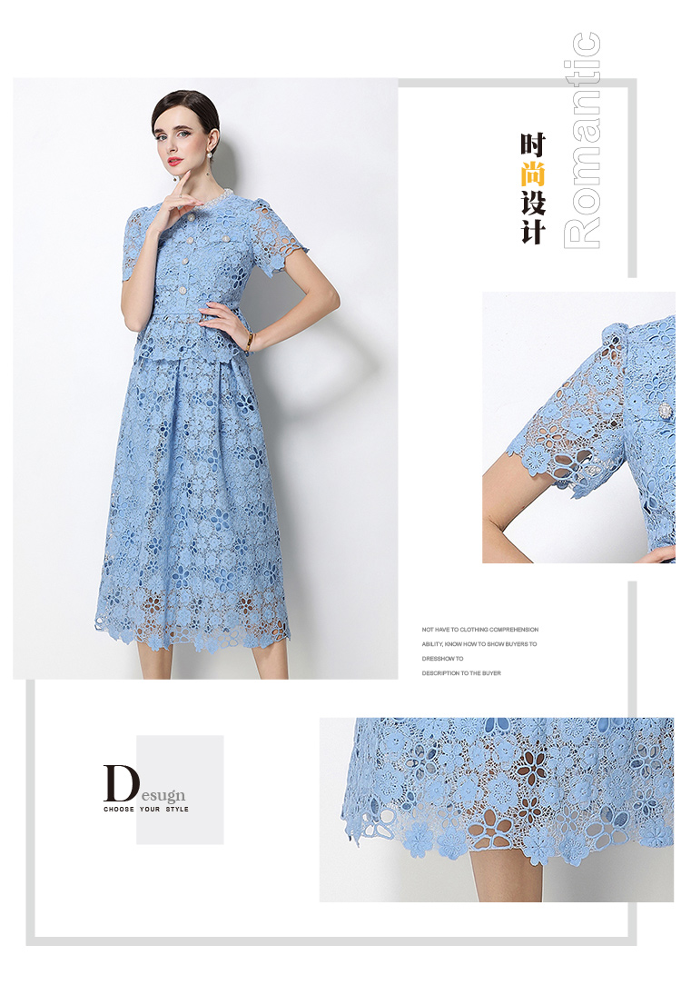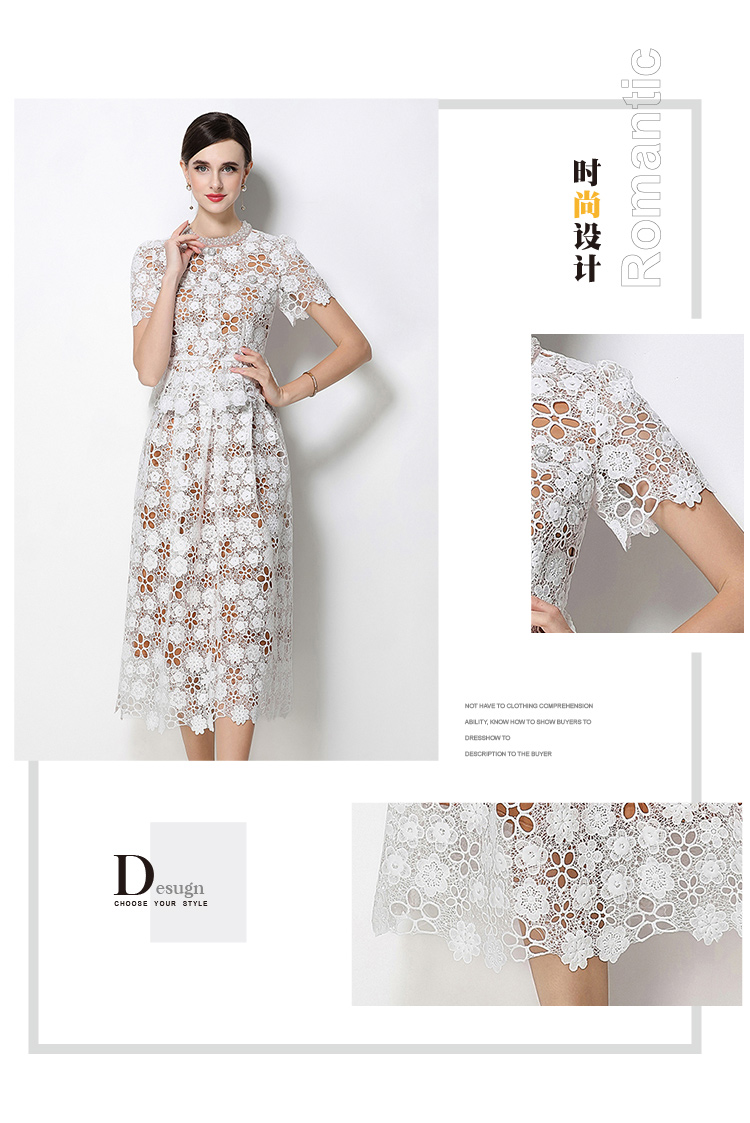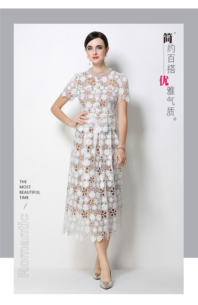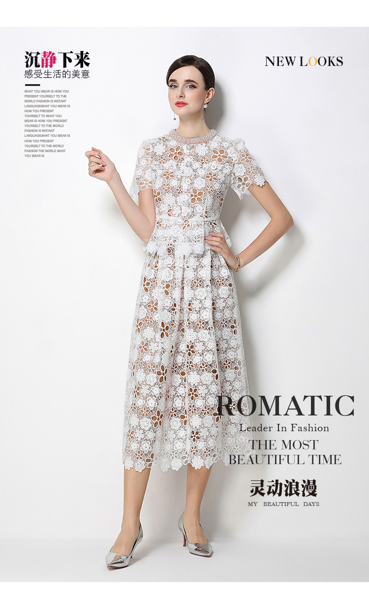 RY1775# 实拍原创短袖感时尚显瘦镂空水溶蕾丝定位中长款连衣裙