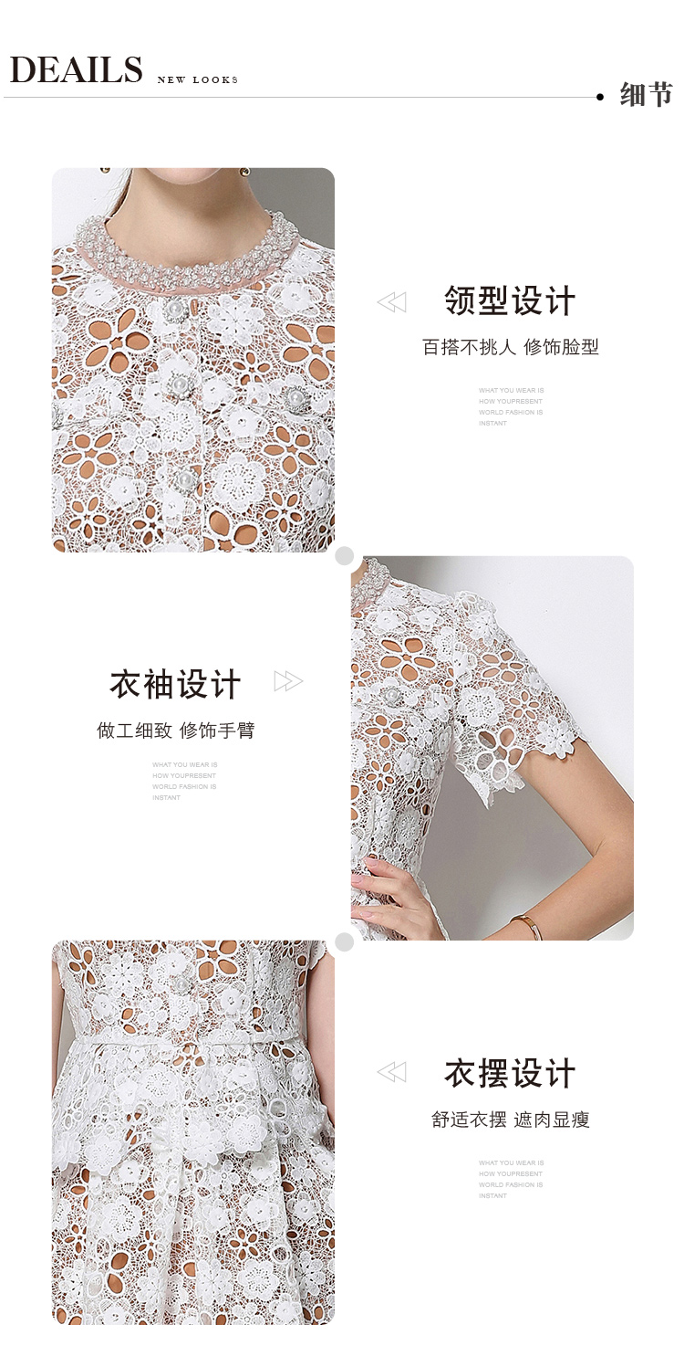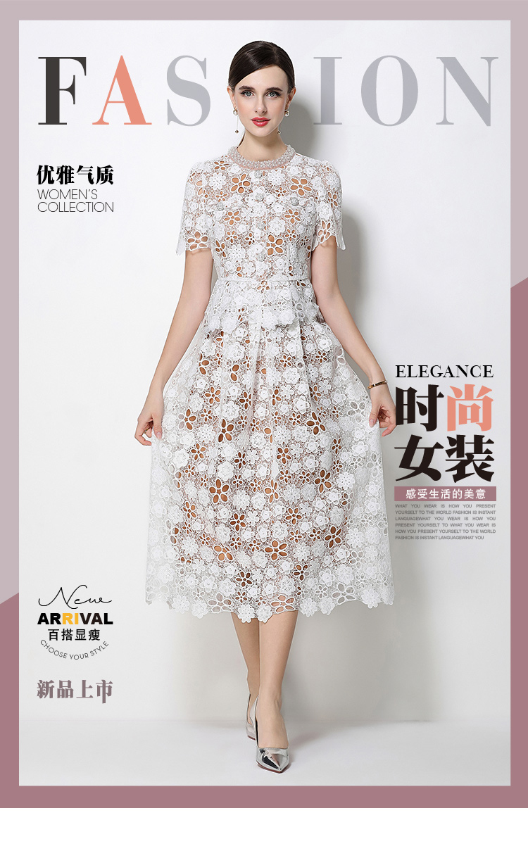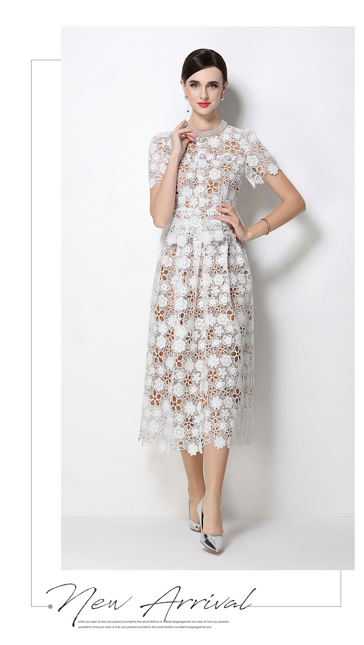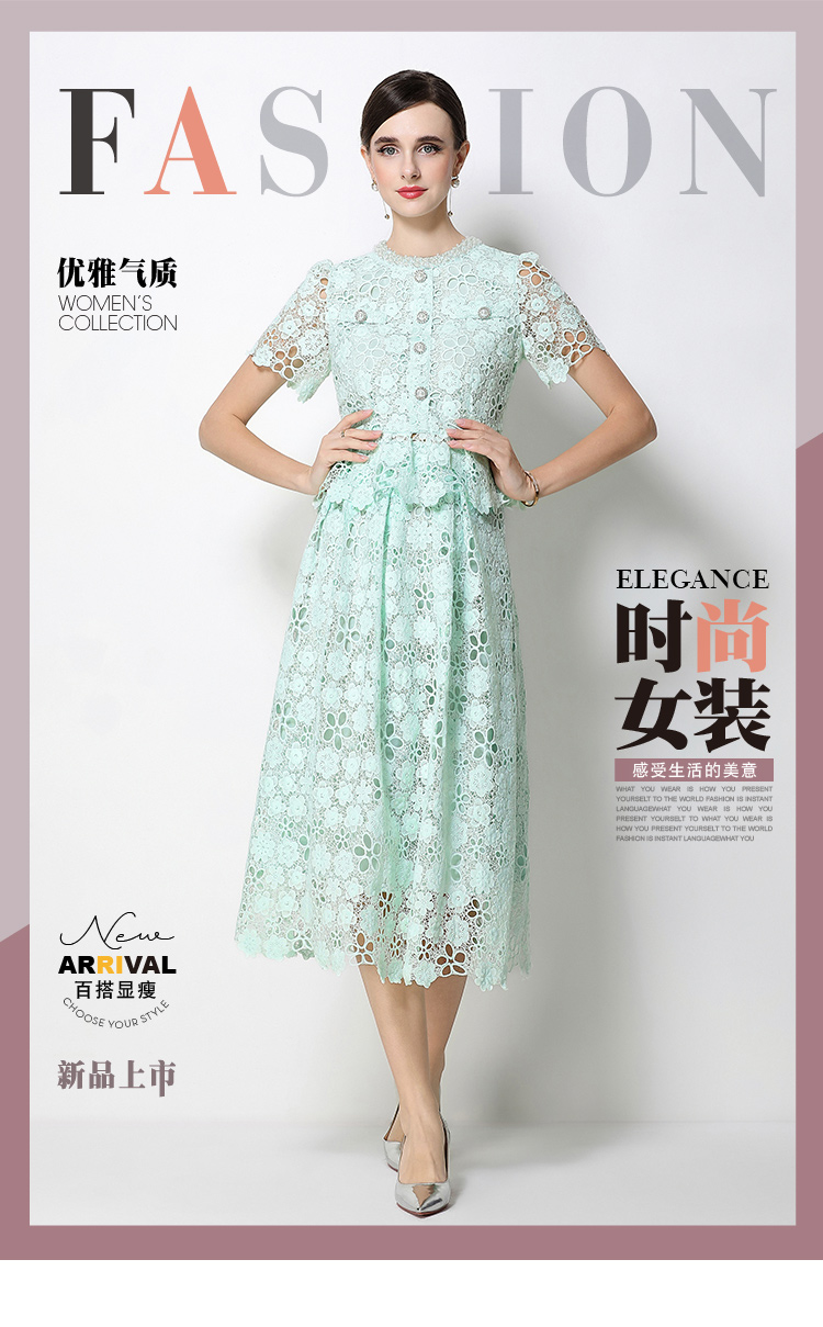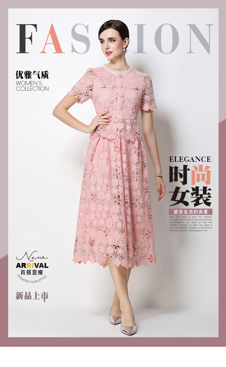 RY1775# 实拍原创短袖感时尚显瘦镂空水溶蕾丝定位中长款连衣裙