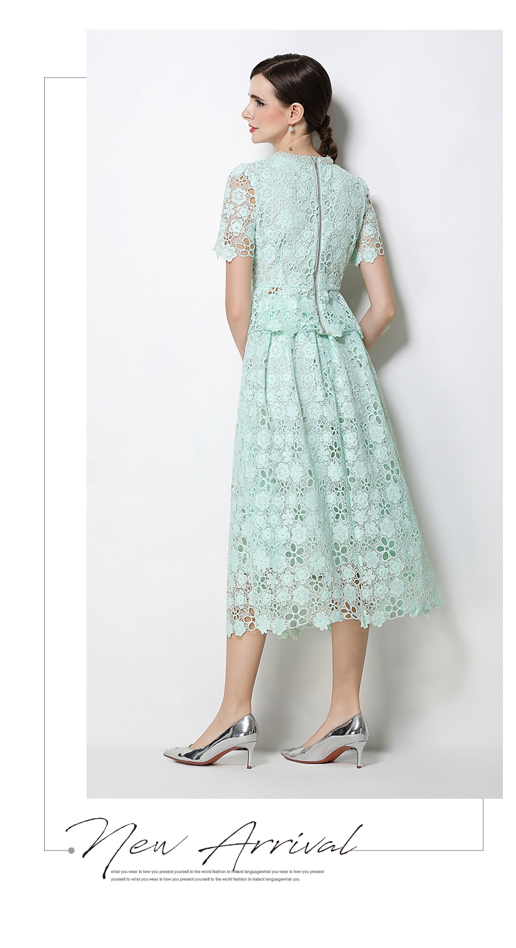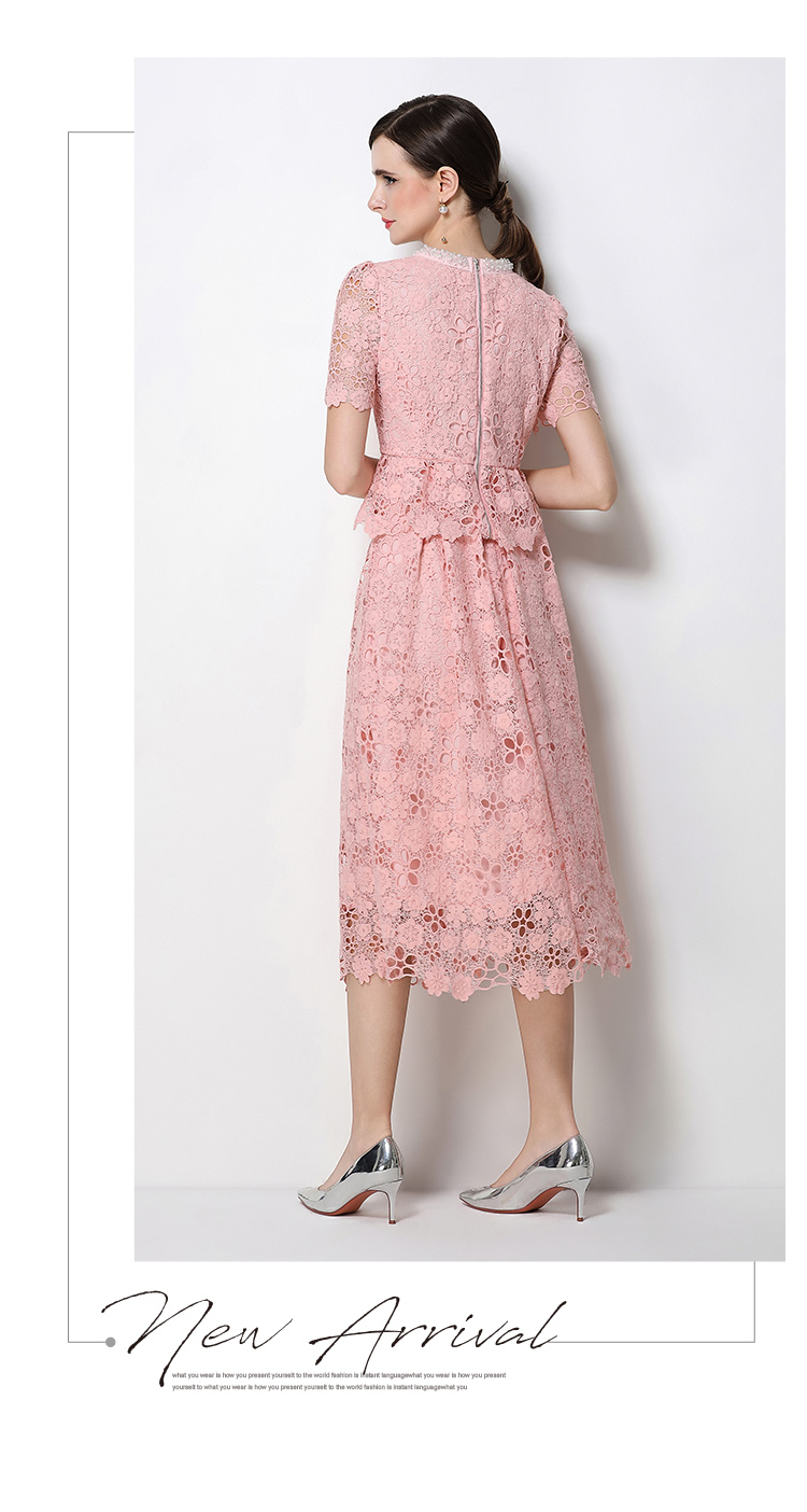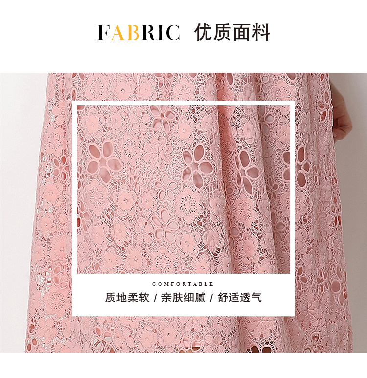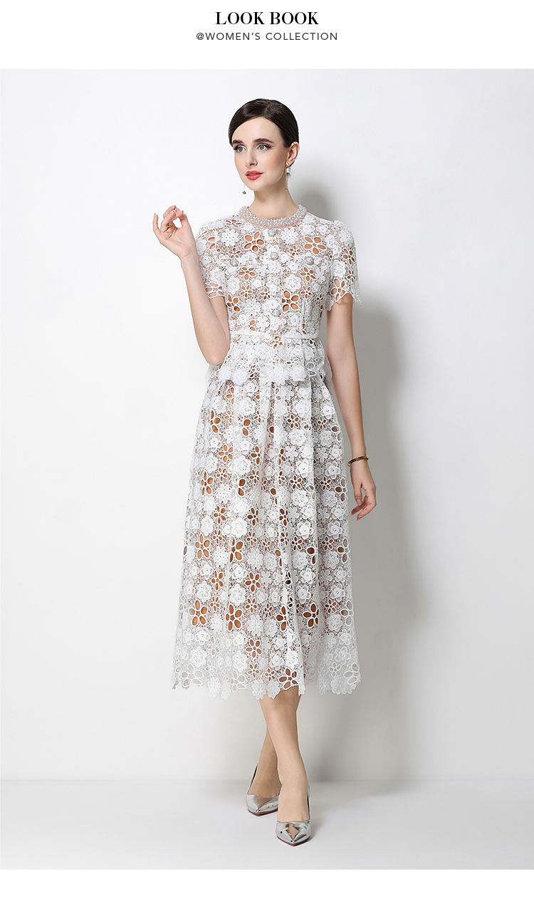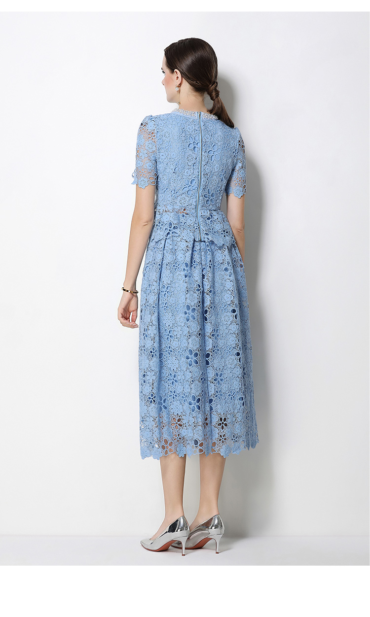 RY1775# 实拍原创短袖感时尚显瘦镂空水溶蕾丝定位中长款连衣裙
