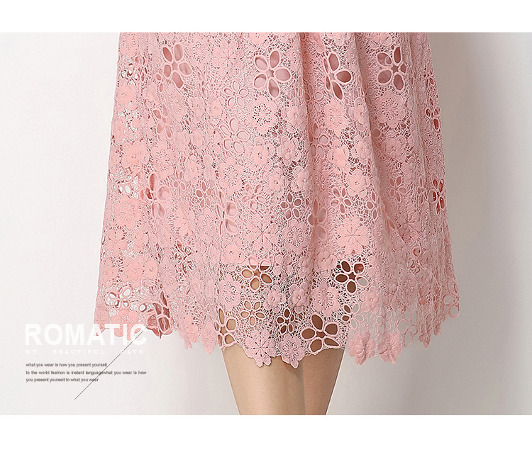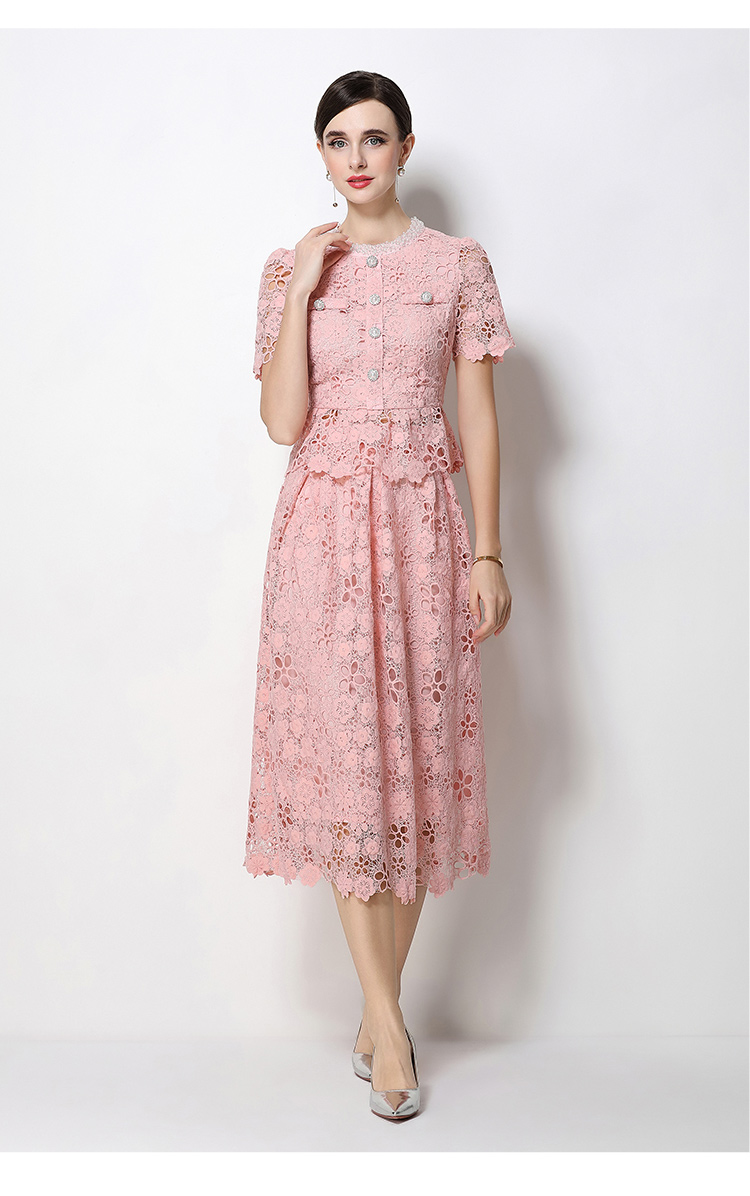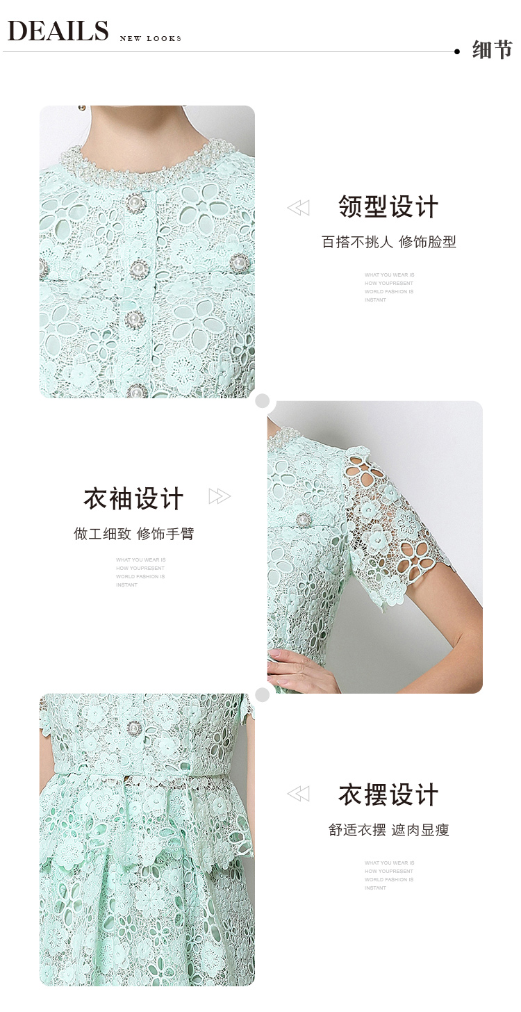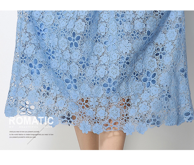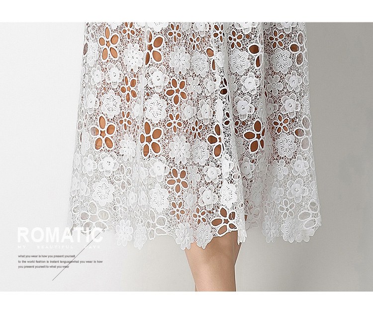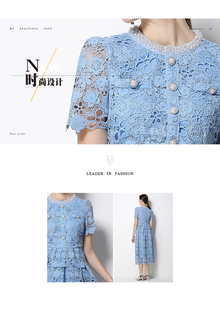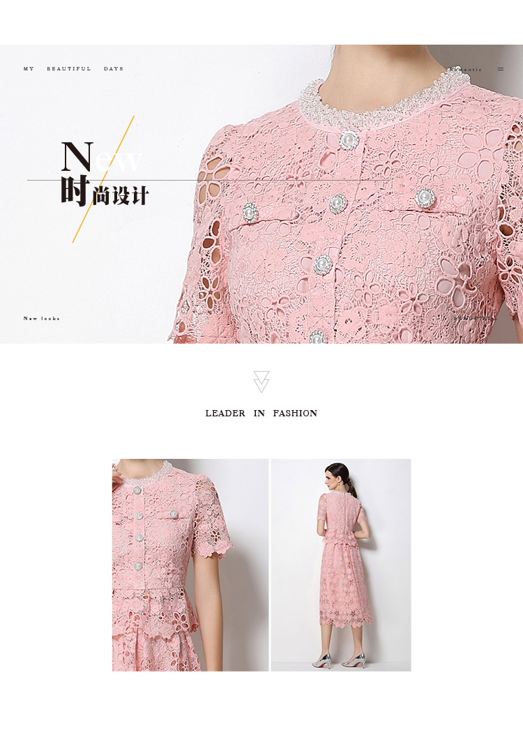 RY1775# 实拍原创短袖感时尚显瘦镂空水溶蕾丝定位中长款连衣裙