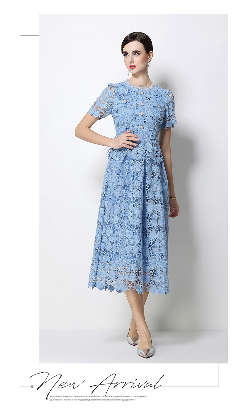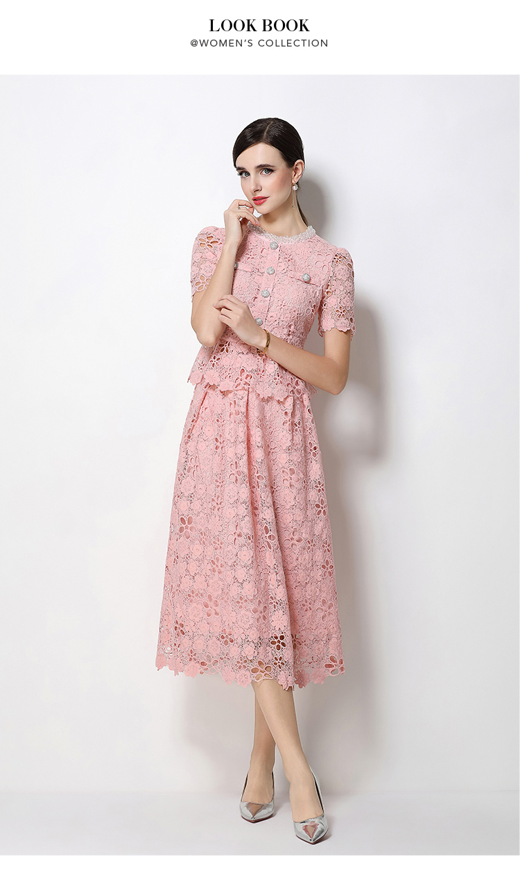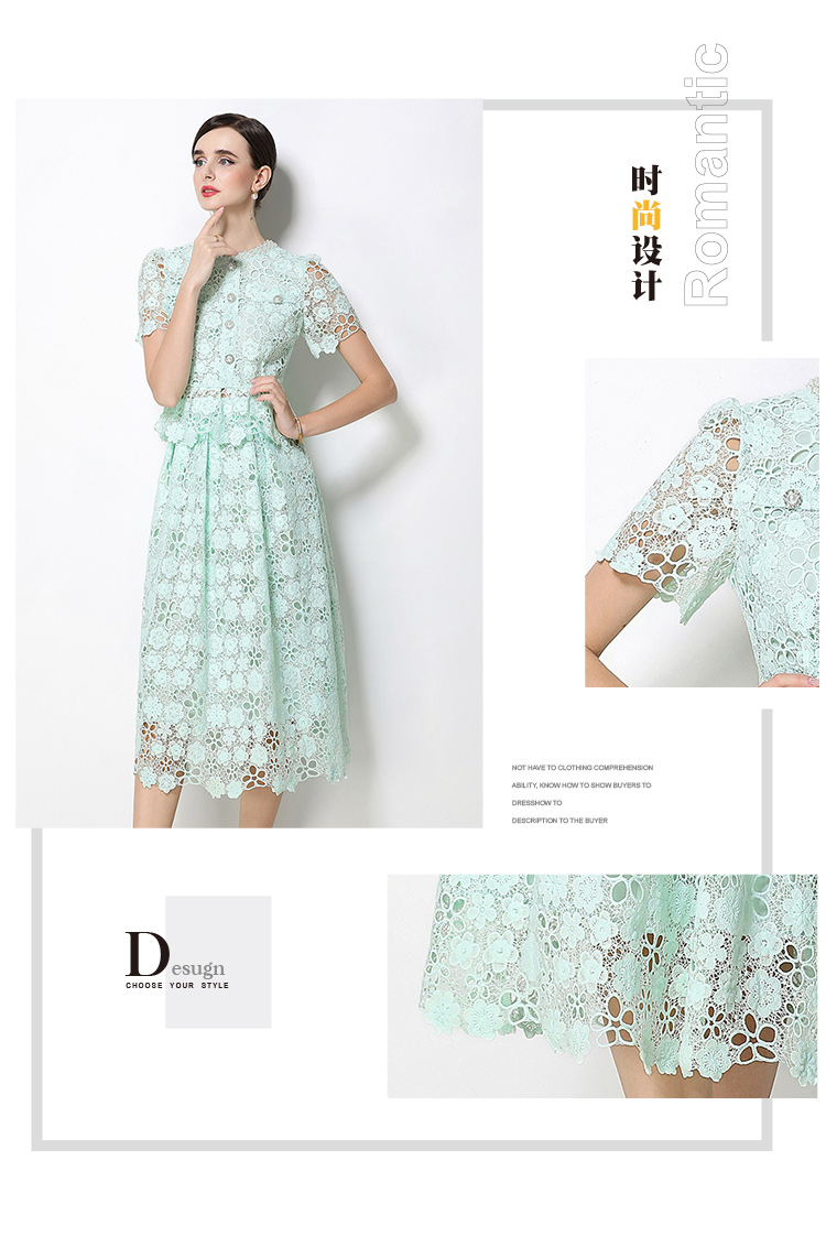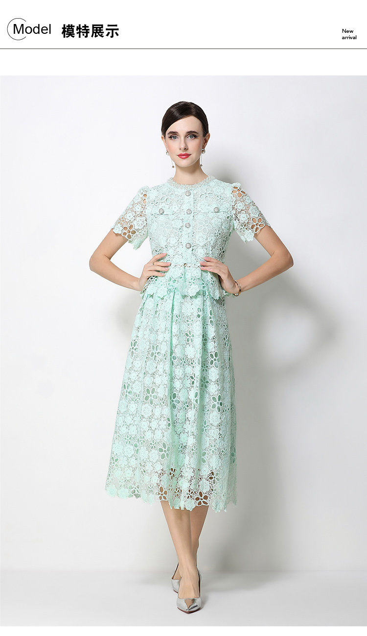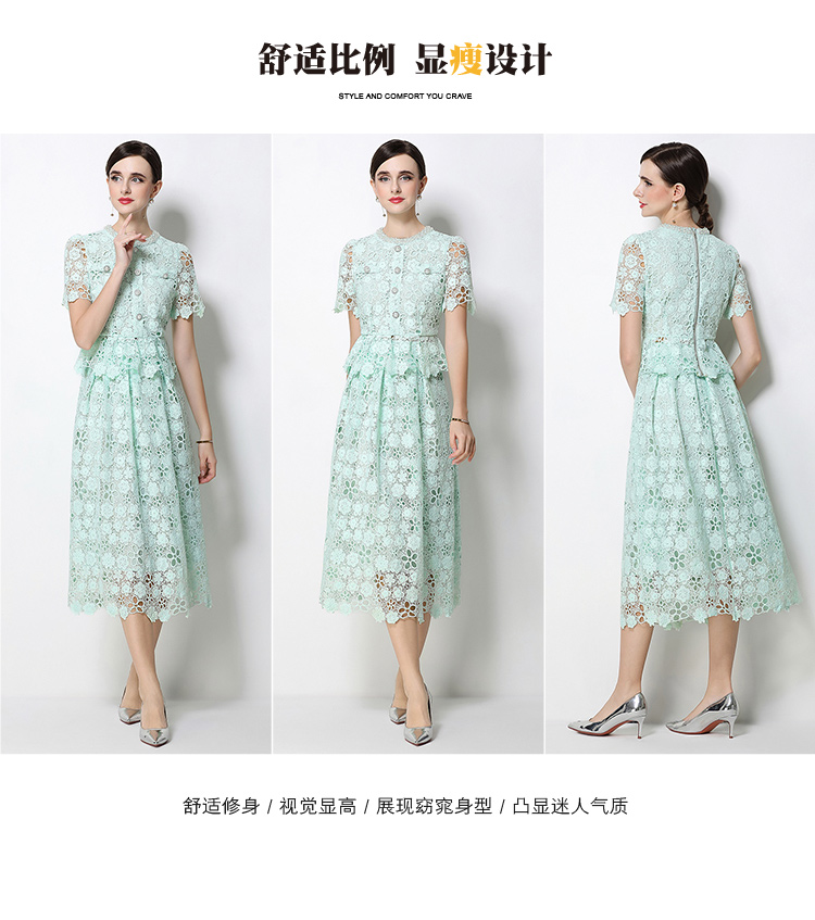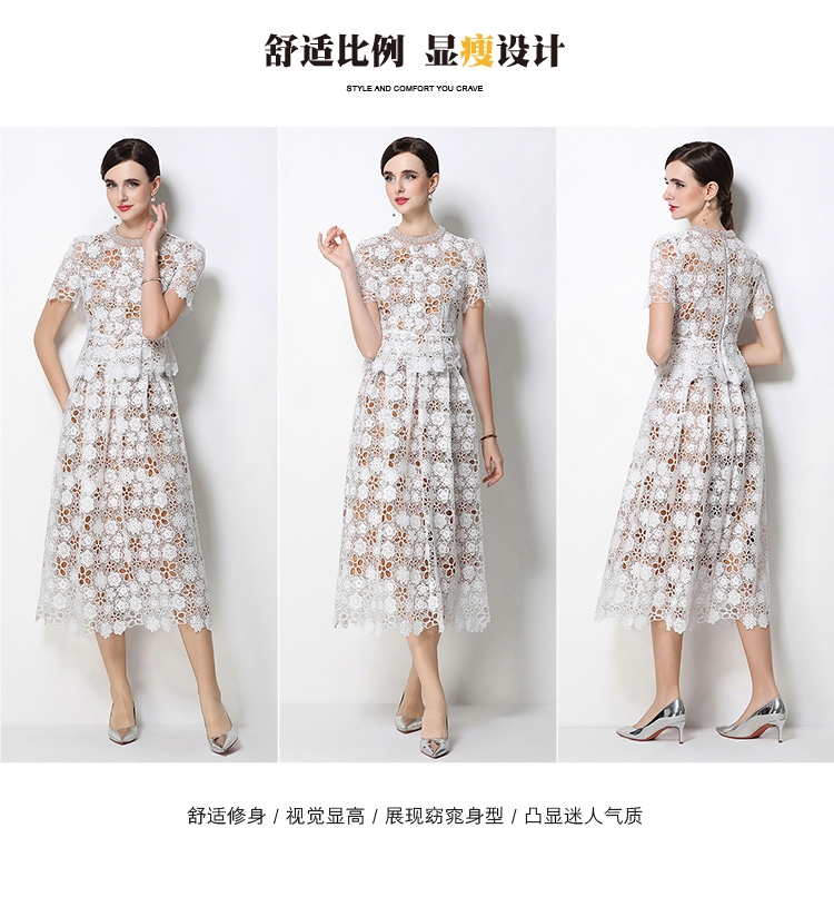 RY1770# 实拍原创轻奢高级感时尚显瘦镂空水溶蕾丝定位套装裙